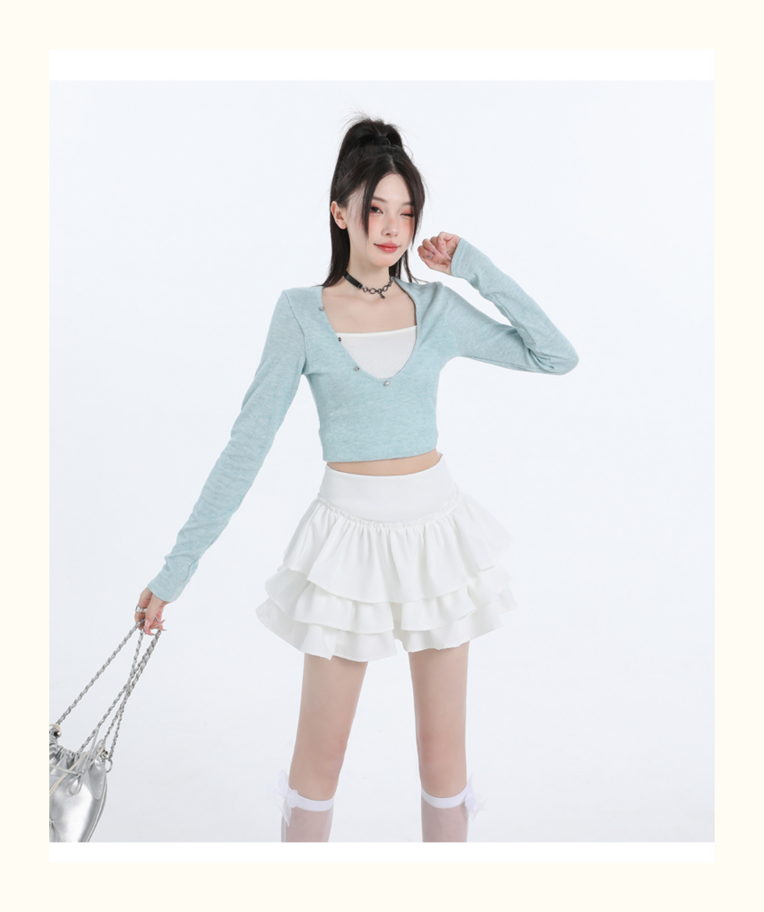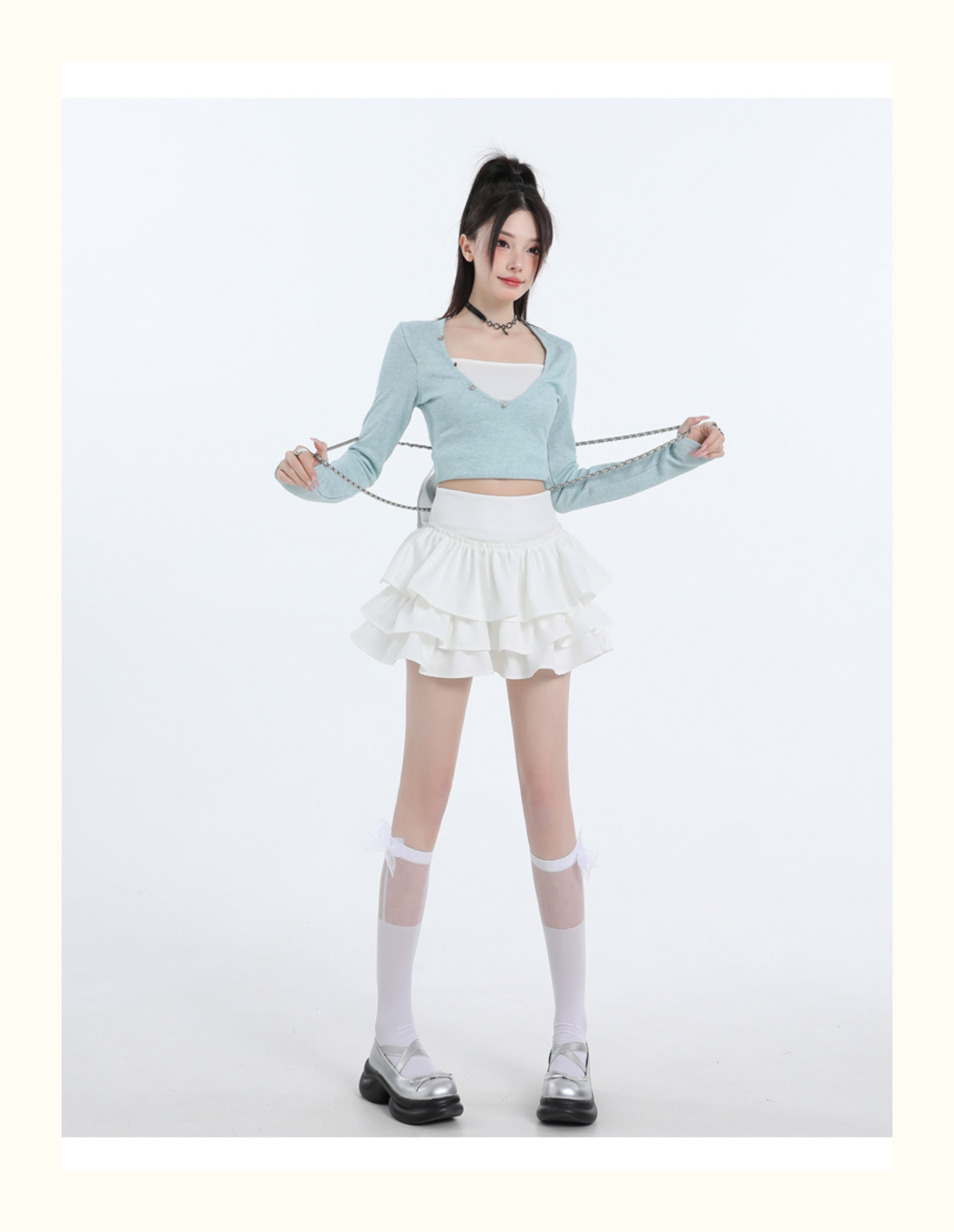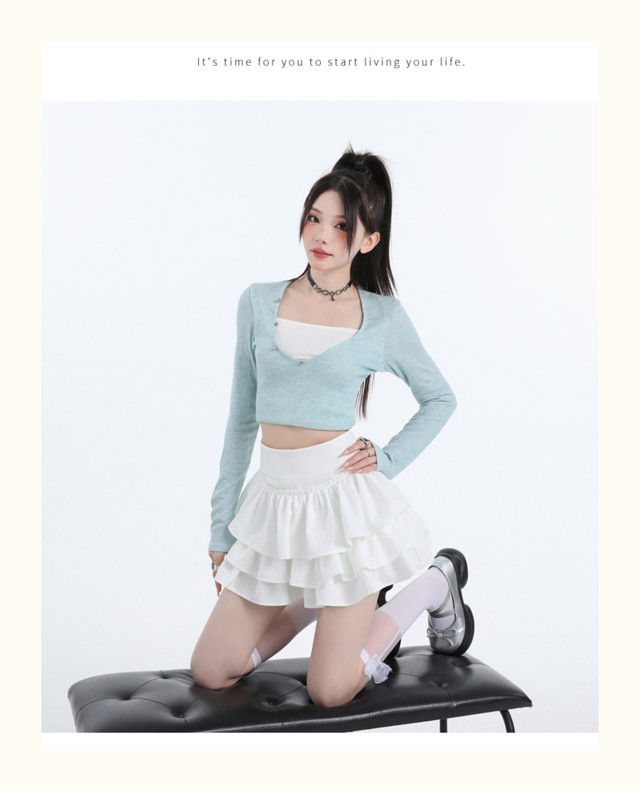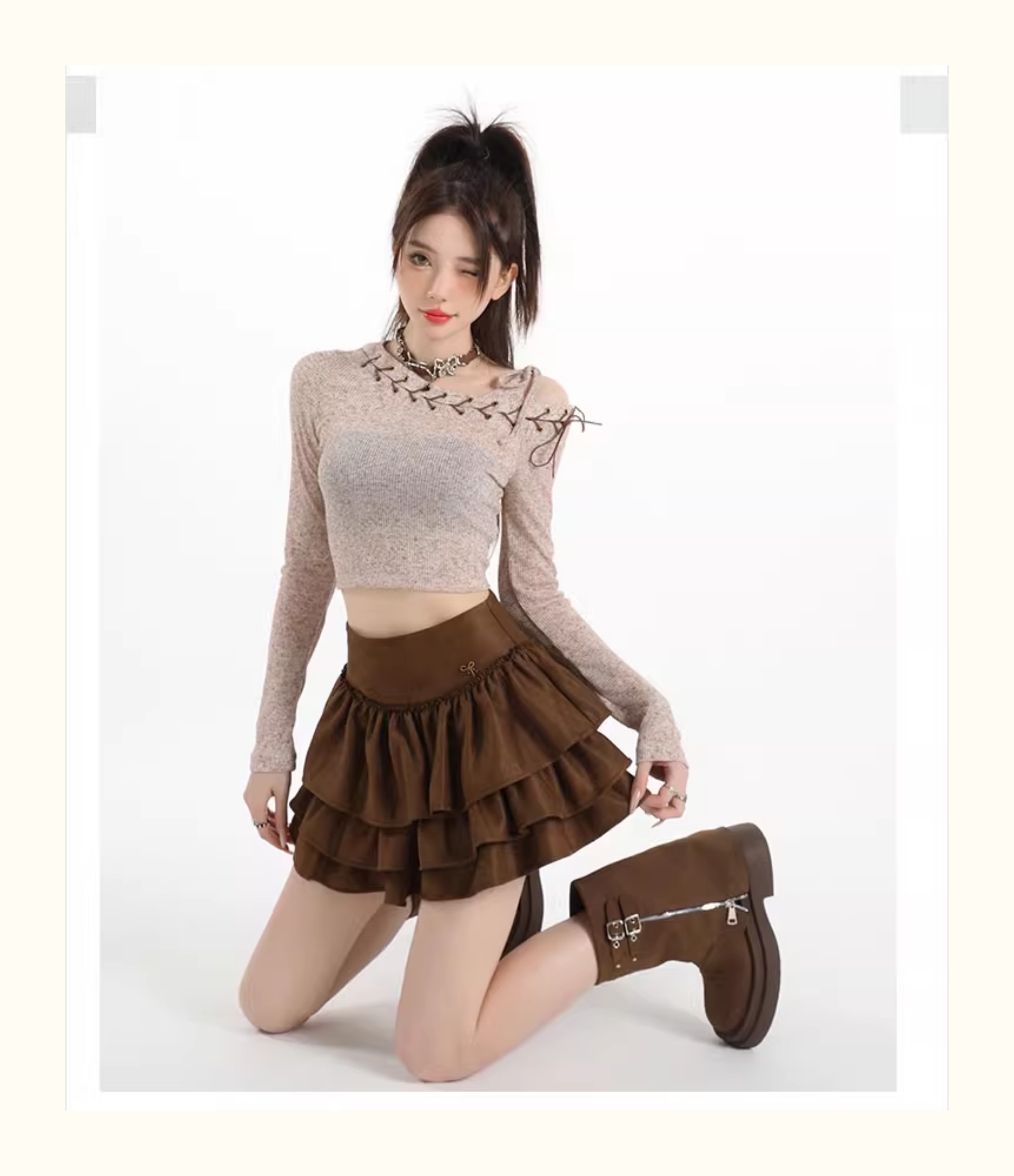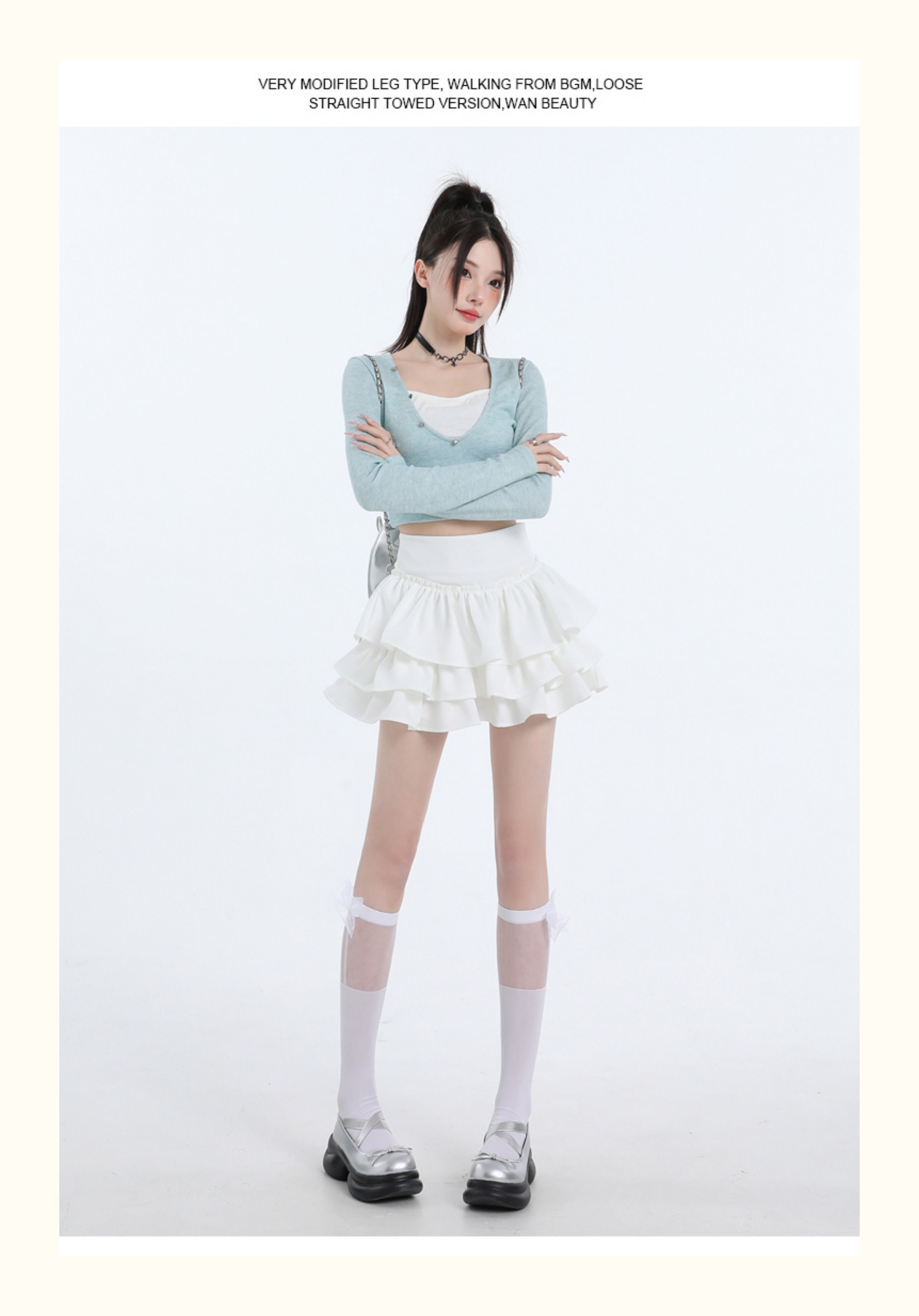 Ballet-Style Black Cake Skirt, Women's Spring and Summer Design, High-Waisted, Slimming, Ruffled A-Line Puffy Short Skirt