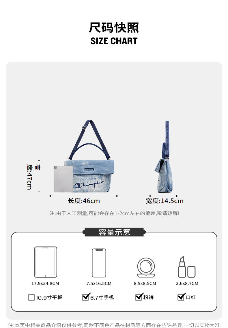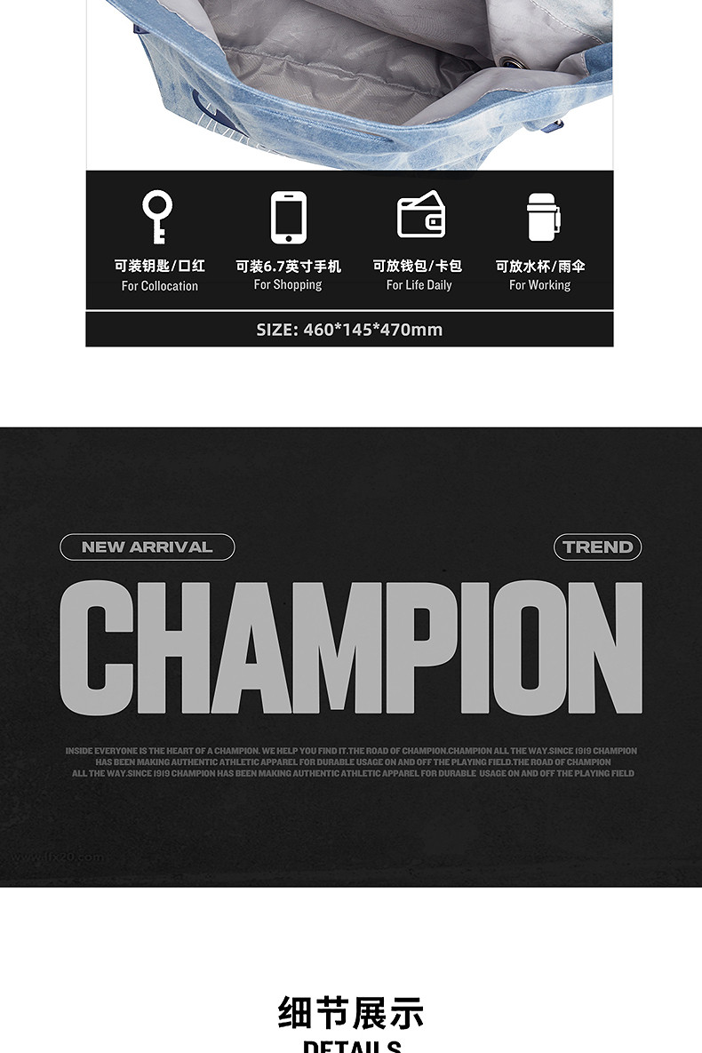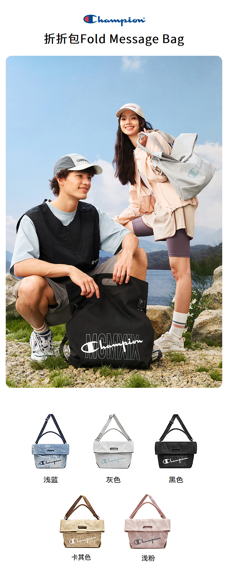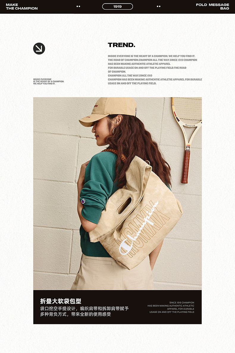 Champion Underarm Single Shoulder Bag 25 Autumn/Winter New Folding Bag Women's Large Capacity Crossbody Bag Men's Backpack