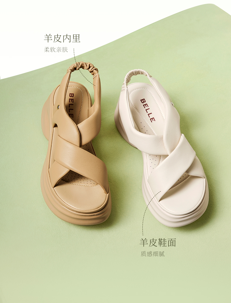 Belle Women's Shoes Casual Thick-Soled Sandals 2025 Summer New Dad-Style Sports Beach Sandals B2480Bl5