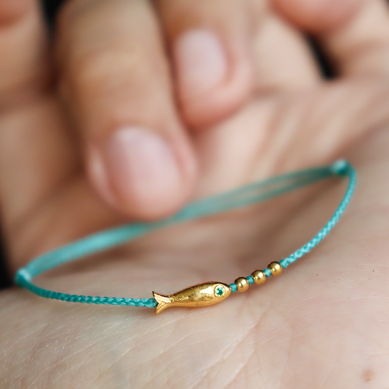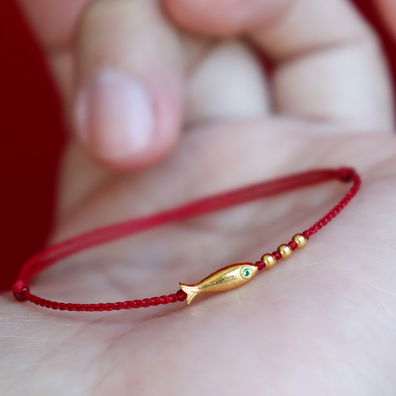 999 Pure Gold Small Goldfish Bubble Bracelet for the Year of Birth, Adjustable Gold Sardine Bracelet, Lucky Red String with Koi Fish