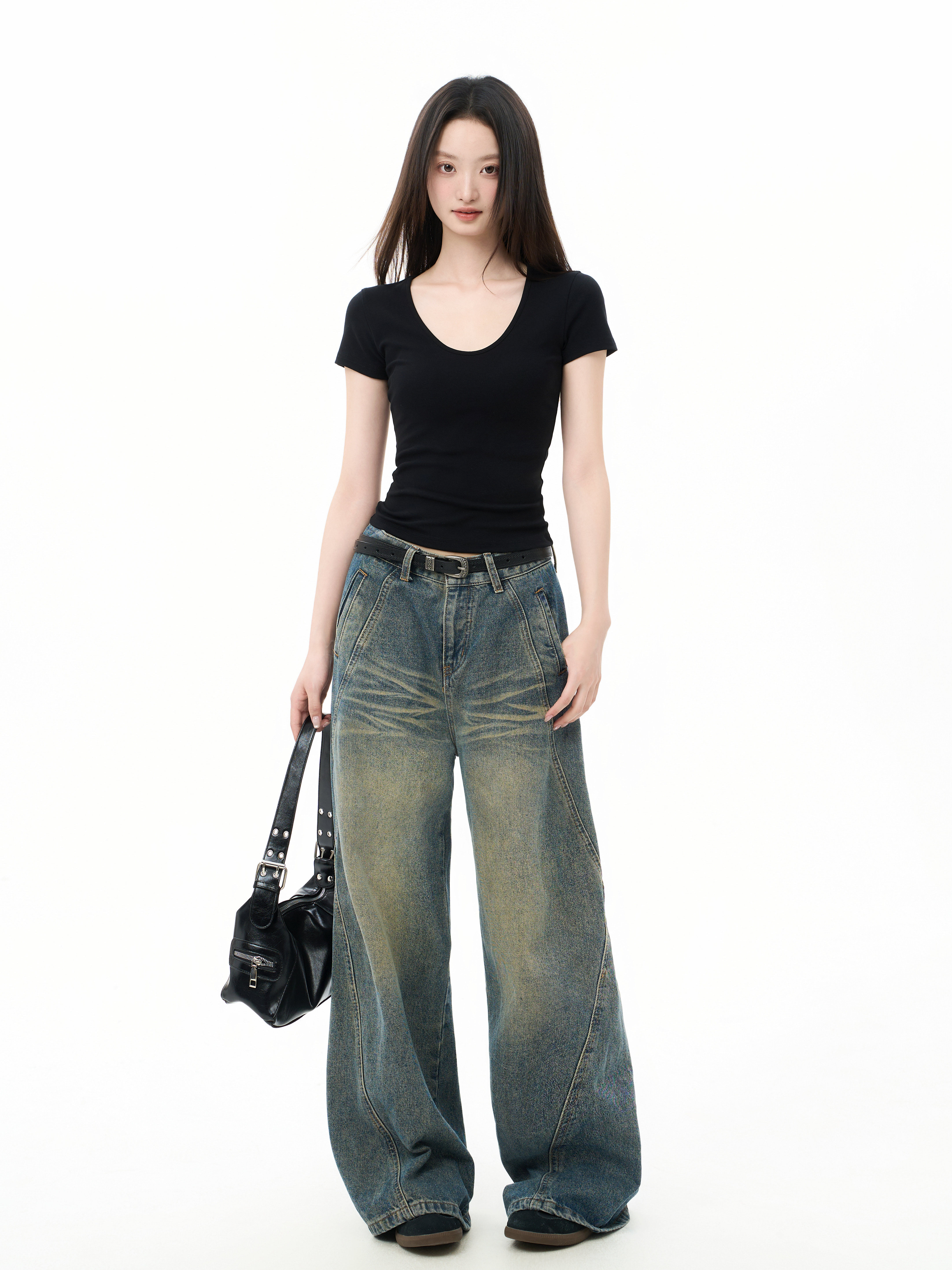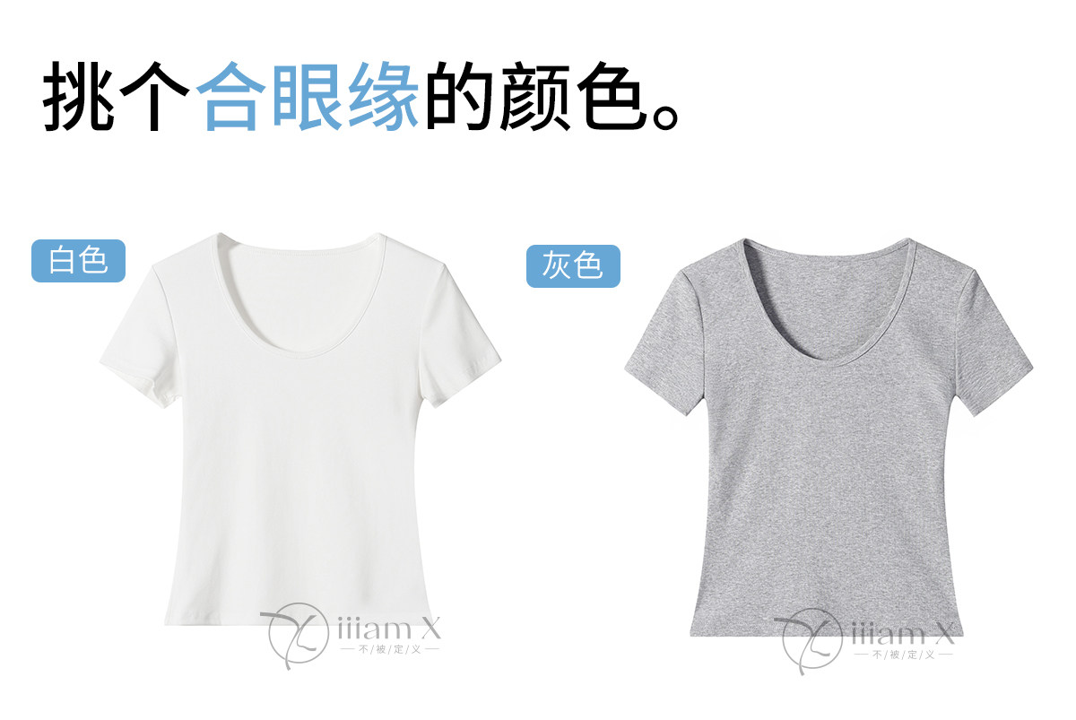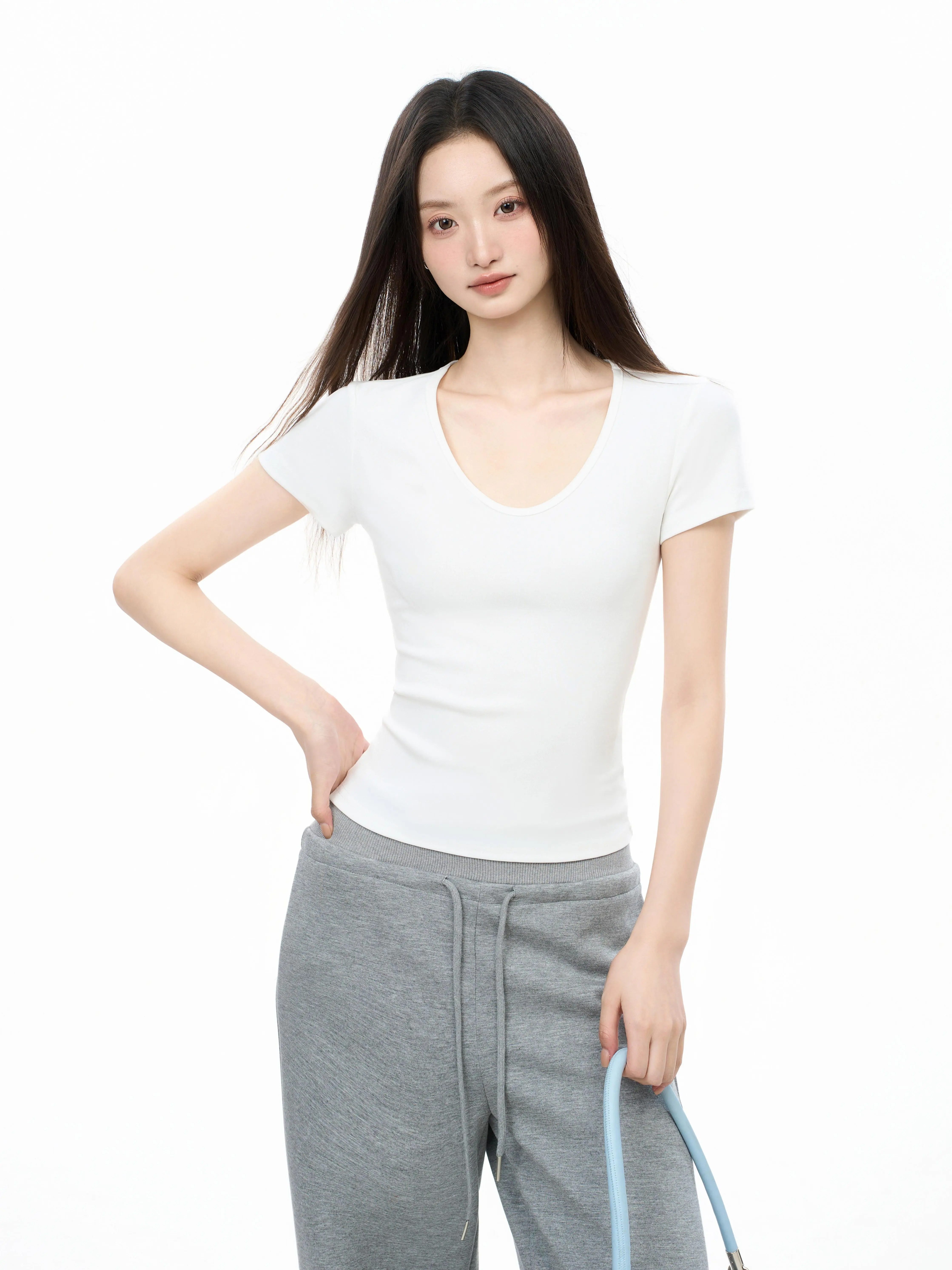 Iiiamx Black U-Neck Large Neckline Short-Sleeve T-Shirt for Women, Summer Slim Fit, Regular Shoulder, Slimming Base Top, 2025 New Model