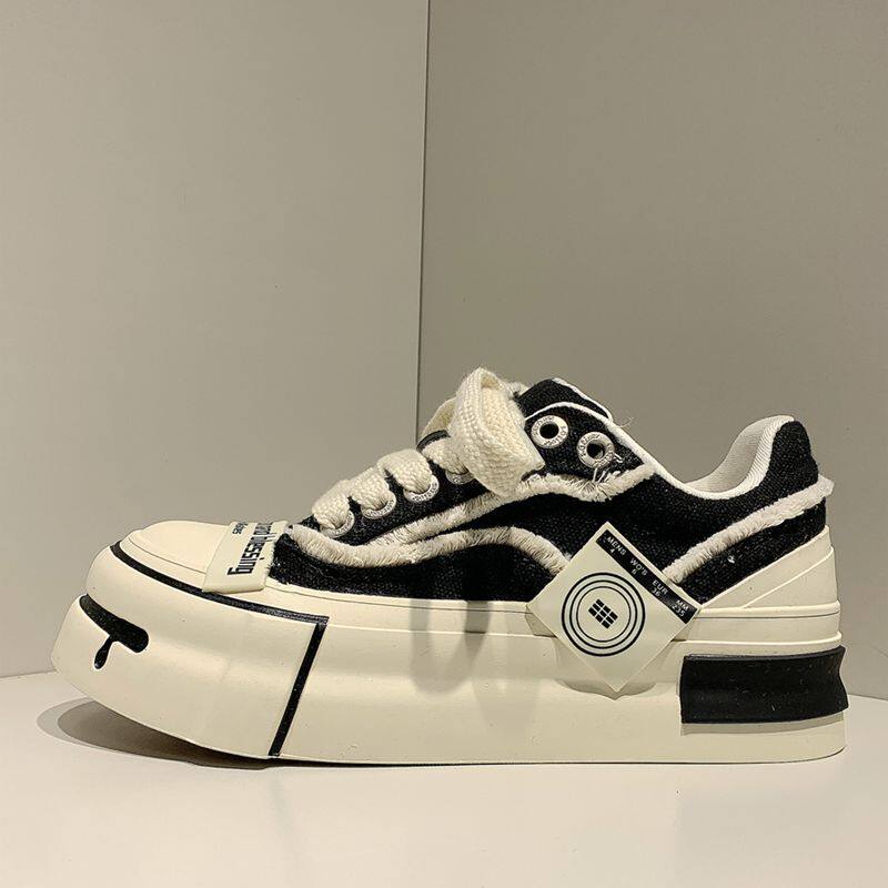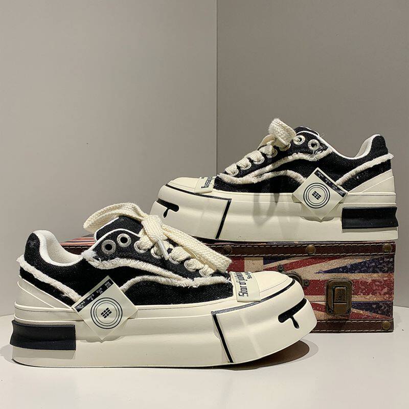 Celebrity-Inspired Star-Patterned Trendy Loafers, Thick-Soled Height-Increasing Distressed Shoes, Unisex Canvas Sneakers