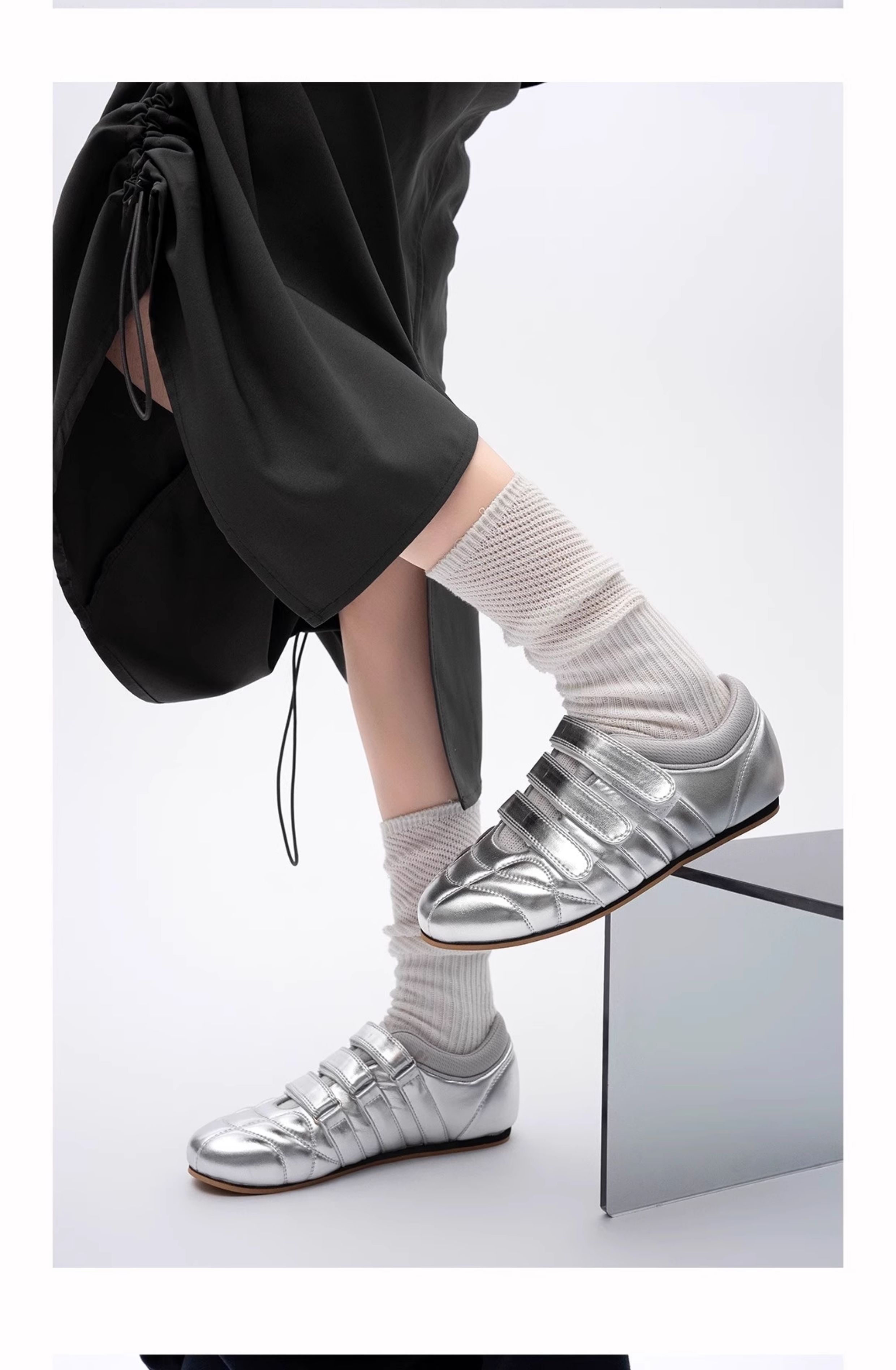 Hong Kong Flat Round-Toe Velcro Mary Jane Shoes for Women 2025 Spring and Summer New Casual Sweet Versatile Bowling Shoes