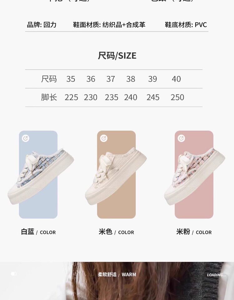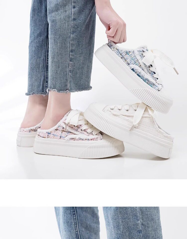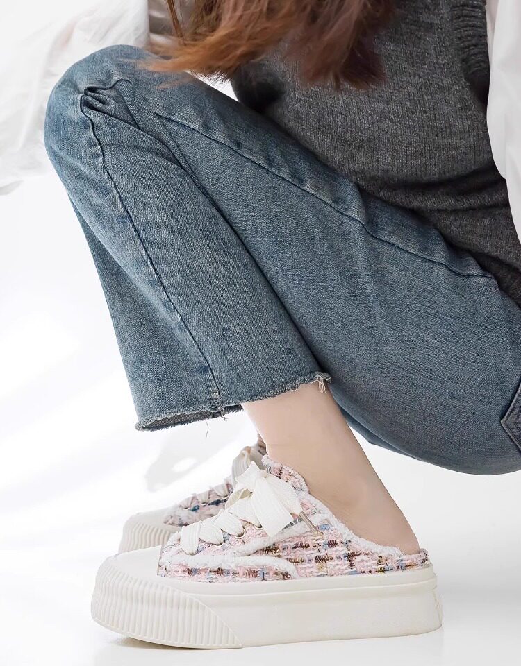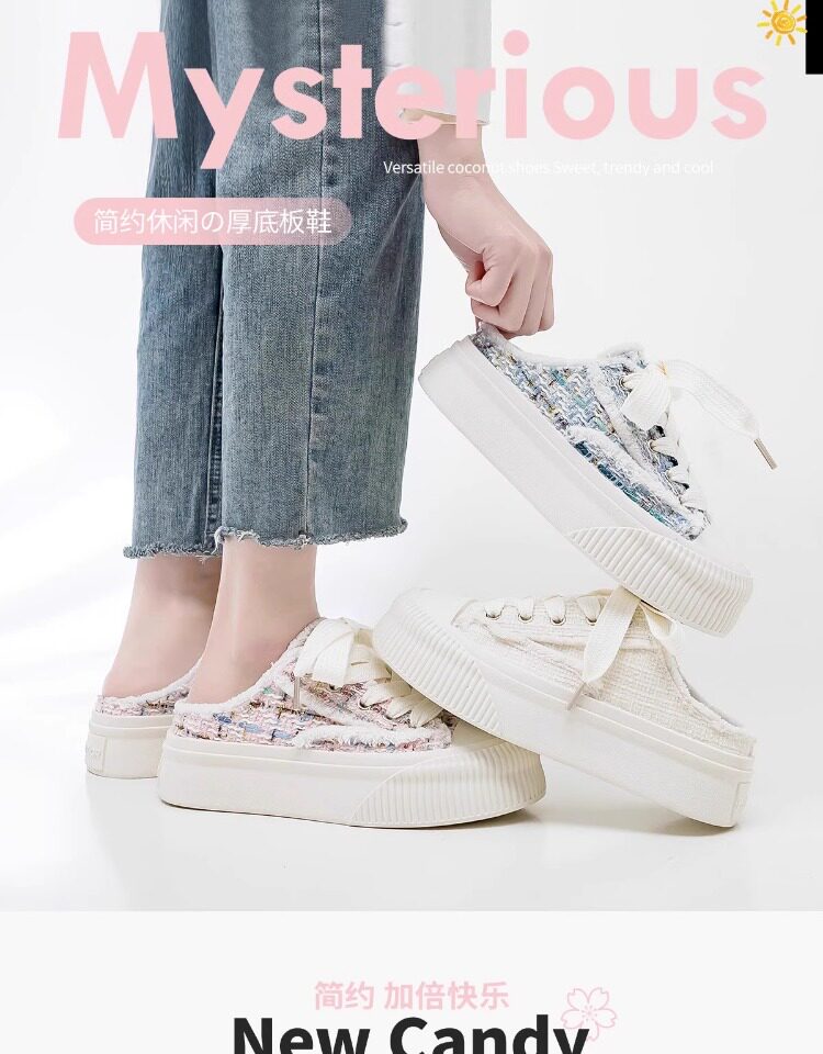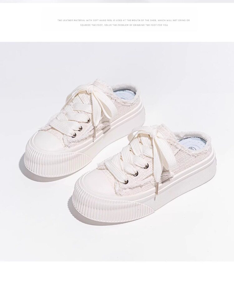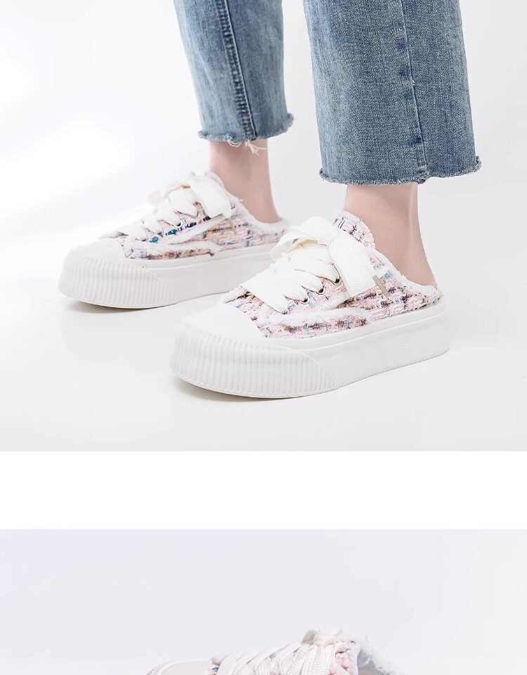 Hui Li Official official store Canvas Shoes for Women 2026 New Style Slip-On Women's Shoes for Outdoor Wear Half Slippers for Women