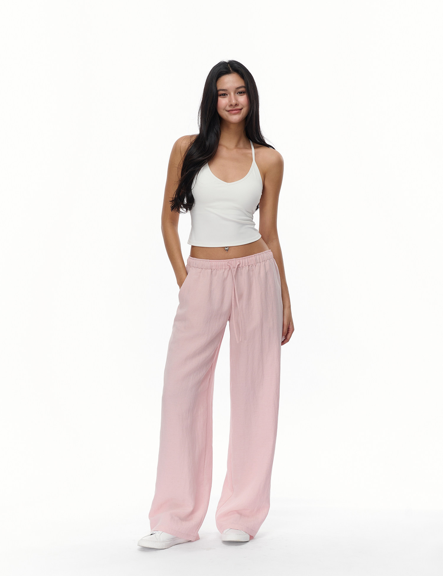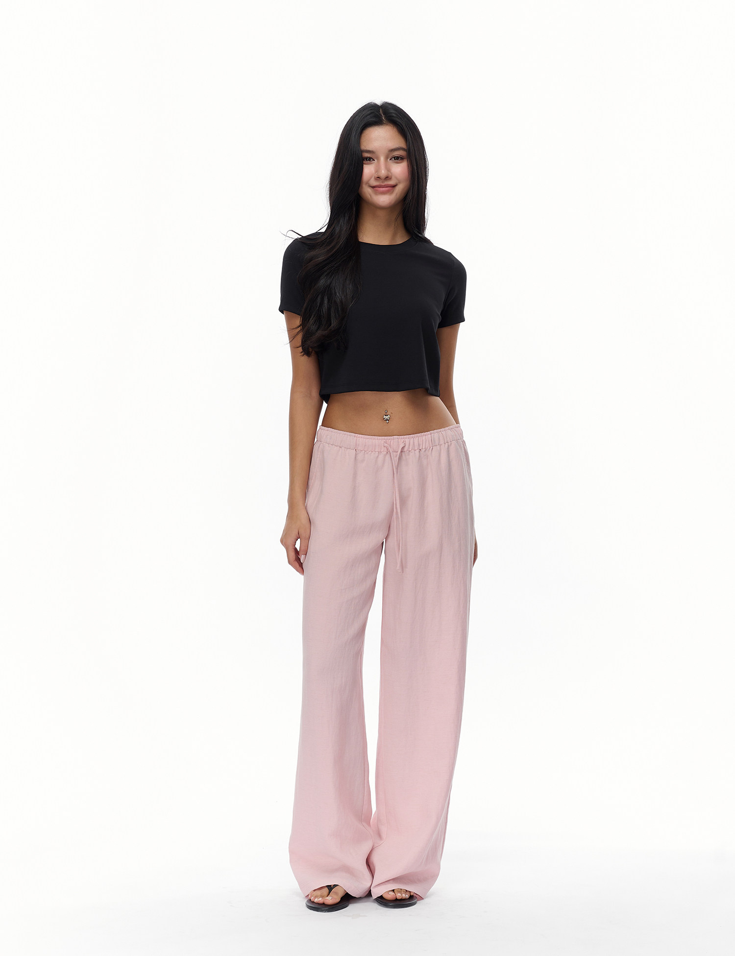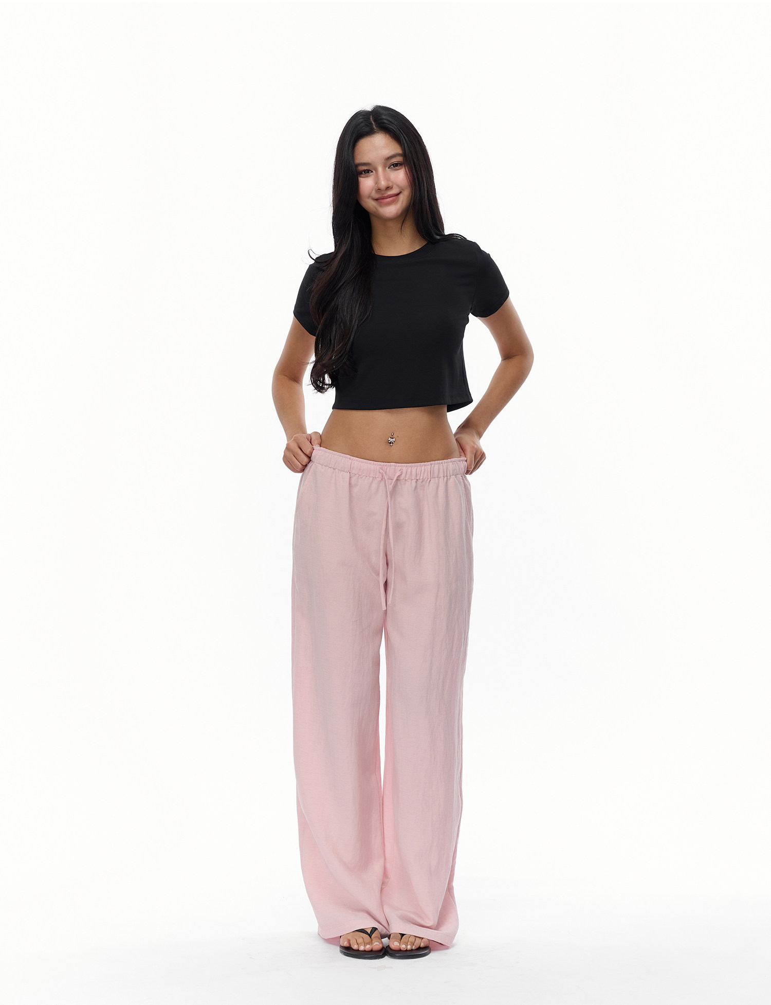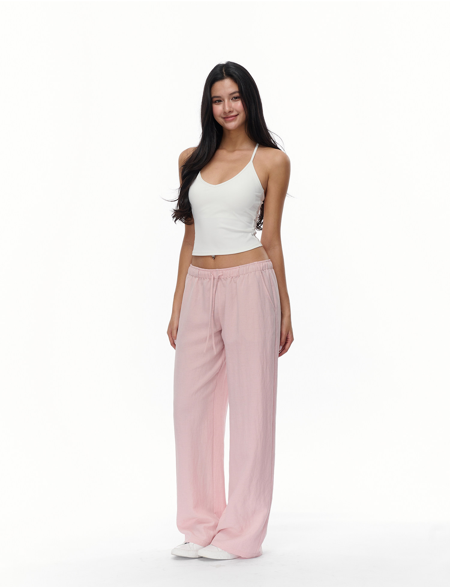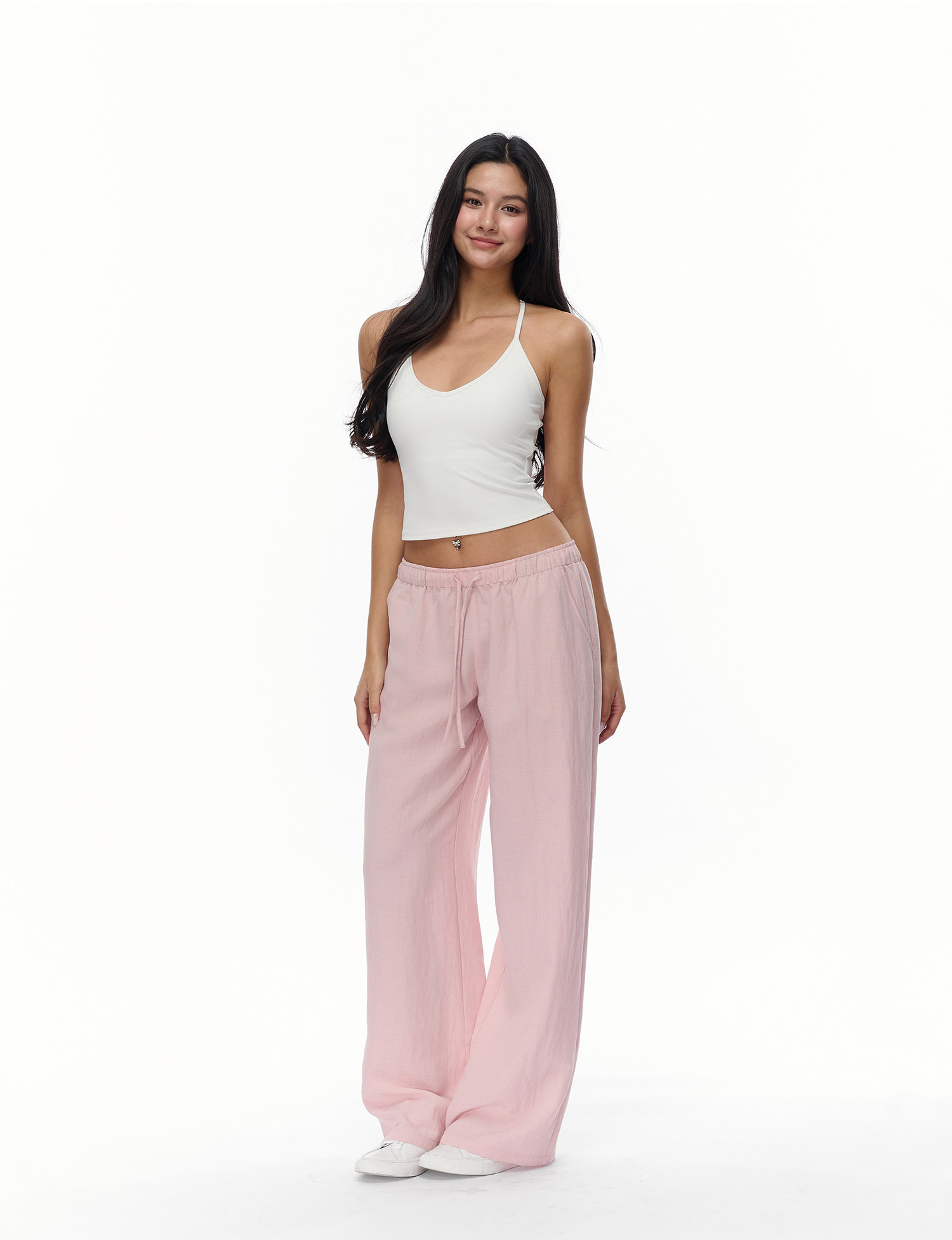 Jim Kennet Low-Waisted Retro Tencel Linen Elastic Waist Straight Pants