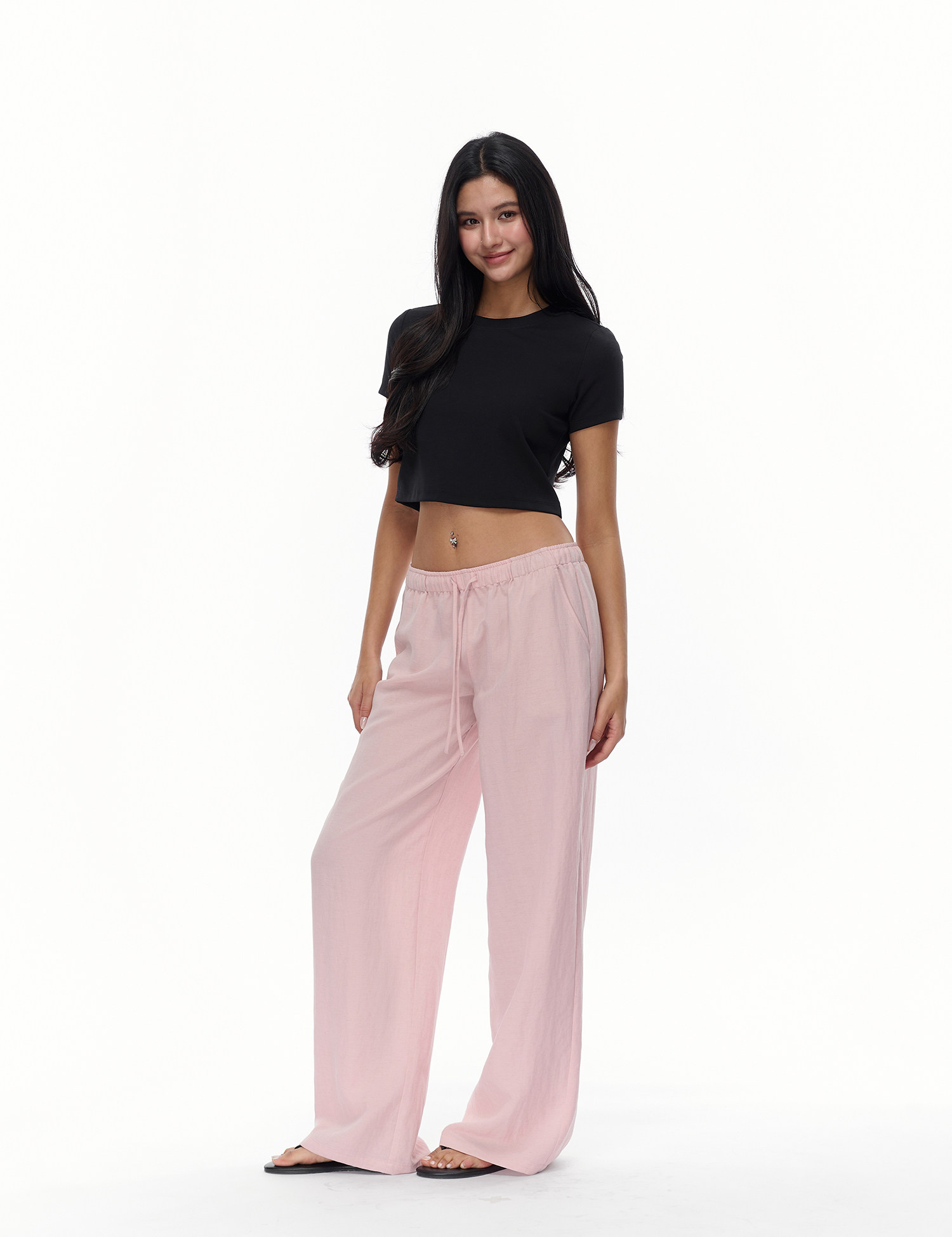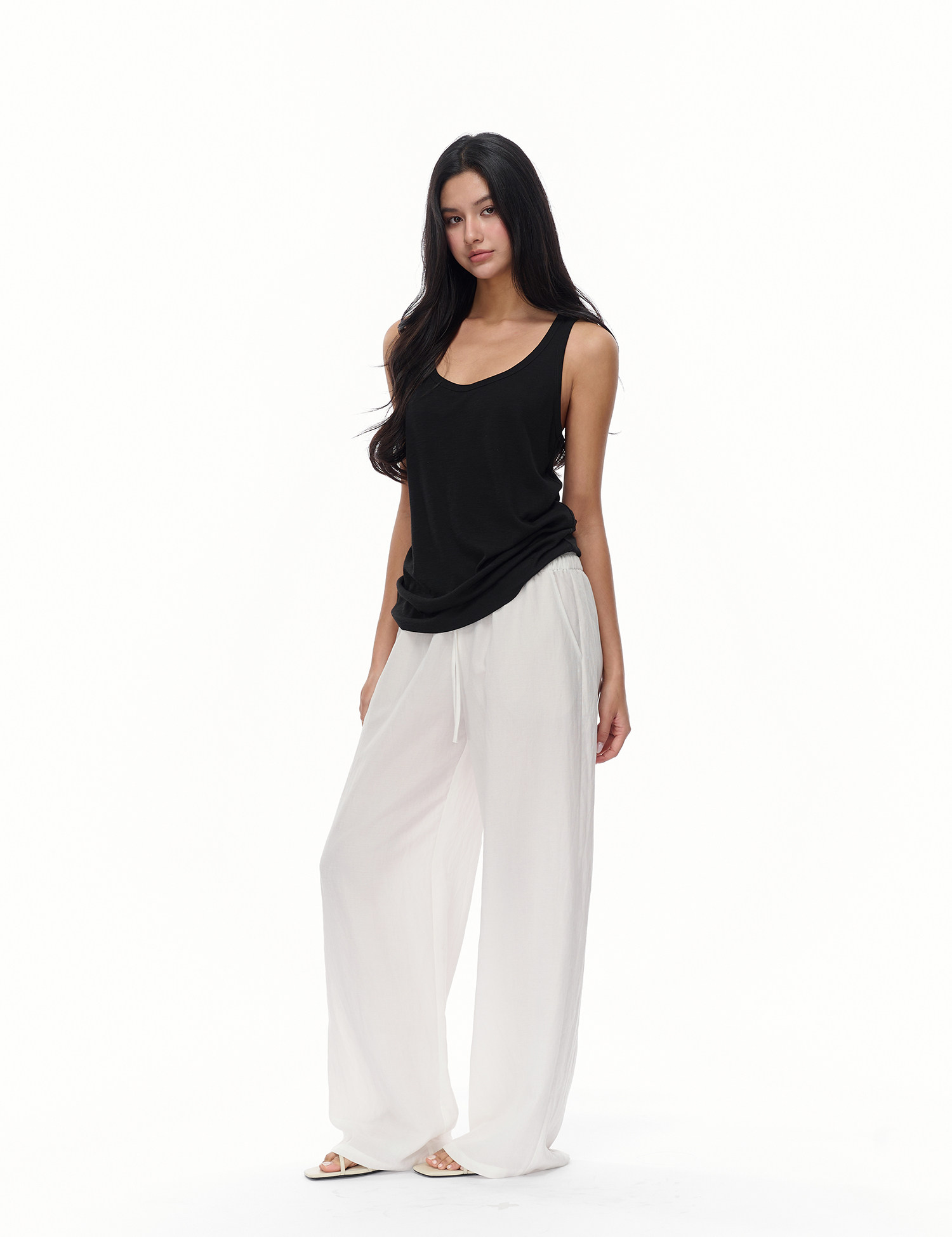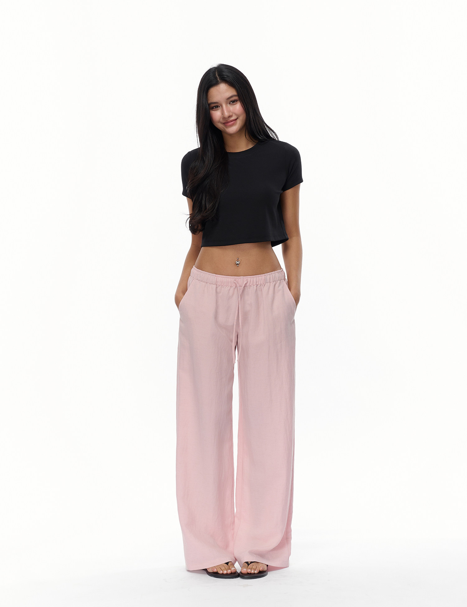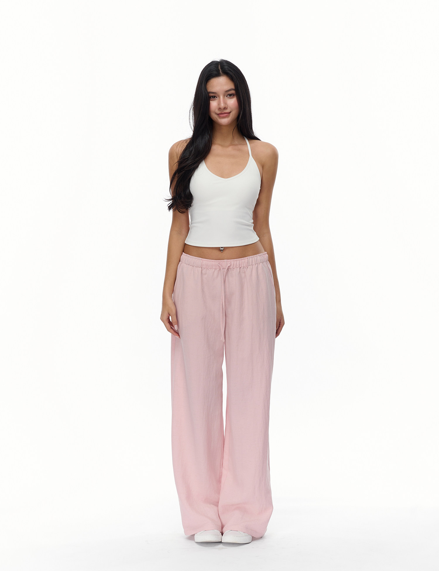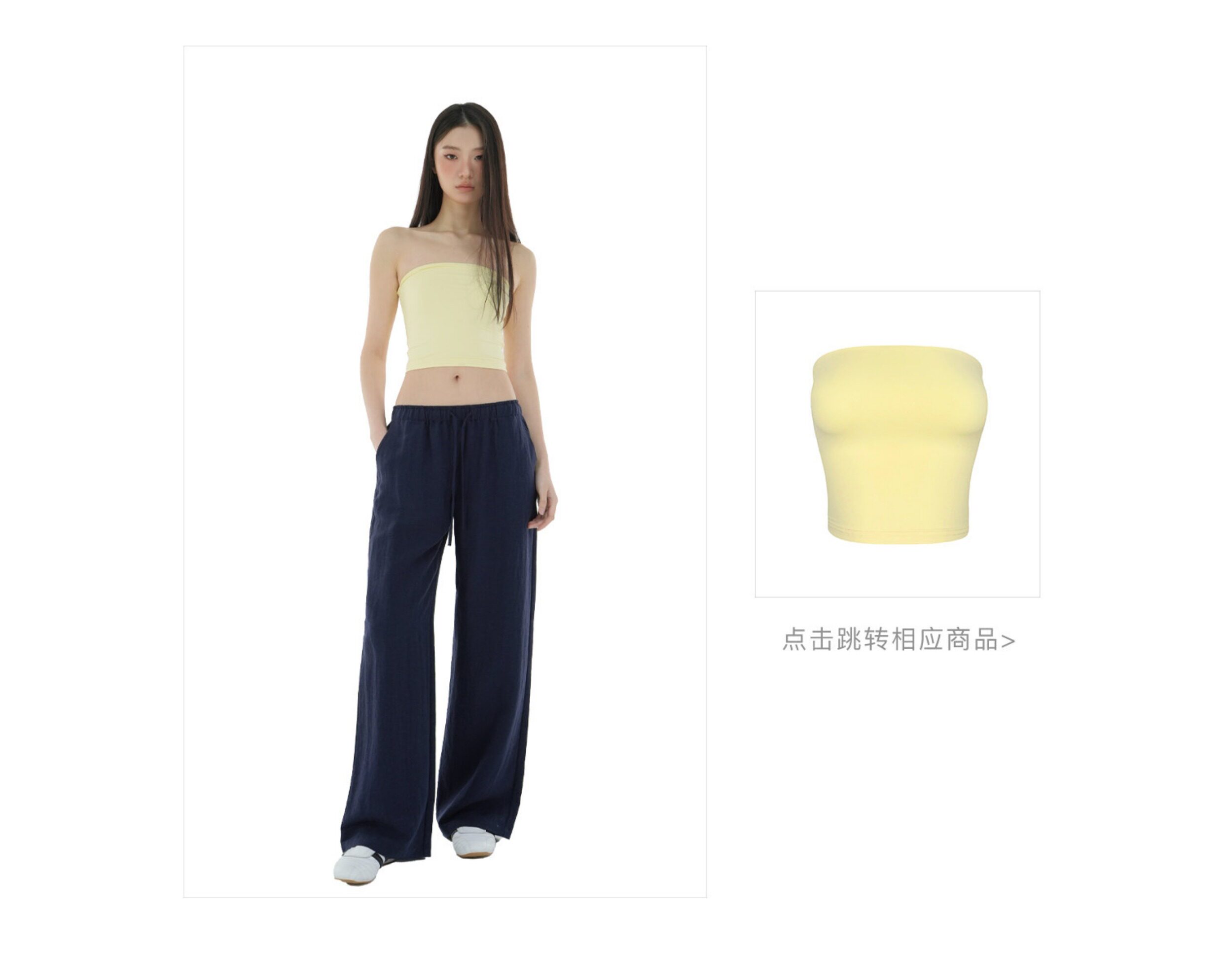 Jim Kennet Low-Waisted Retro Tencel Linen Elastic Waist Straight Pants