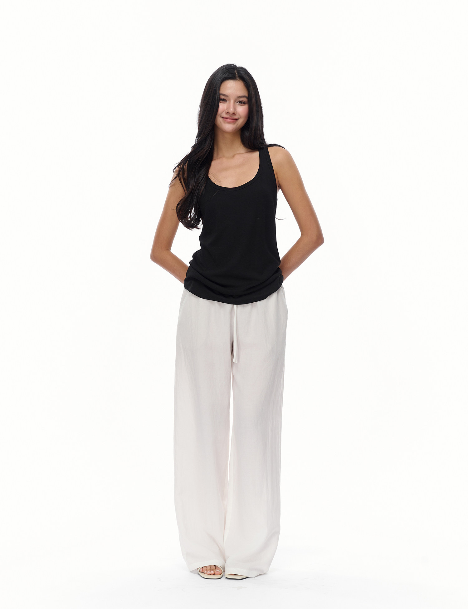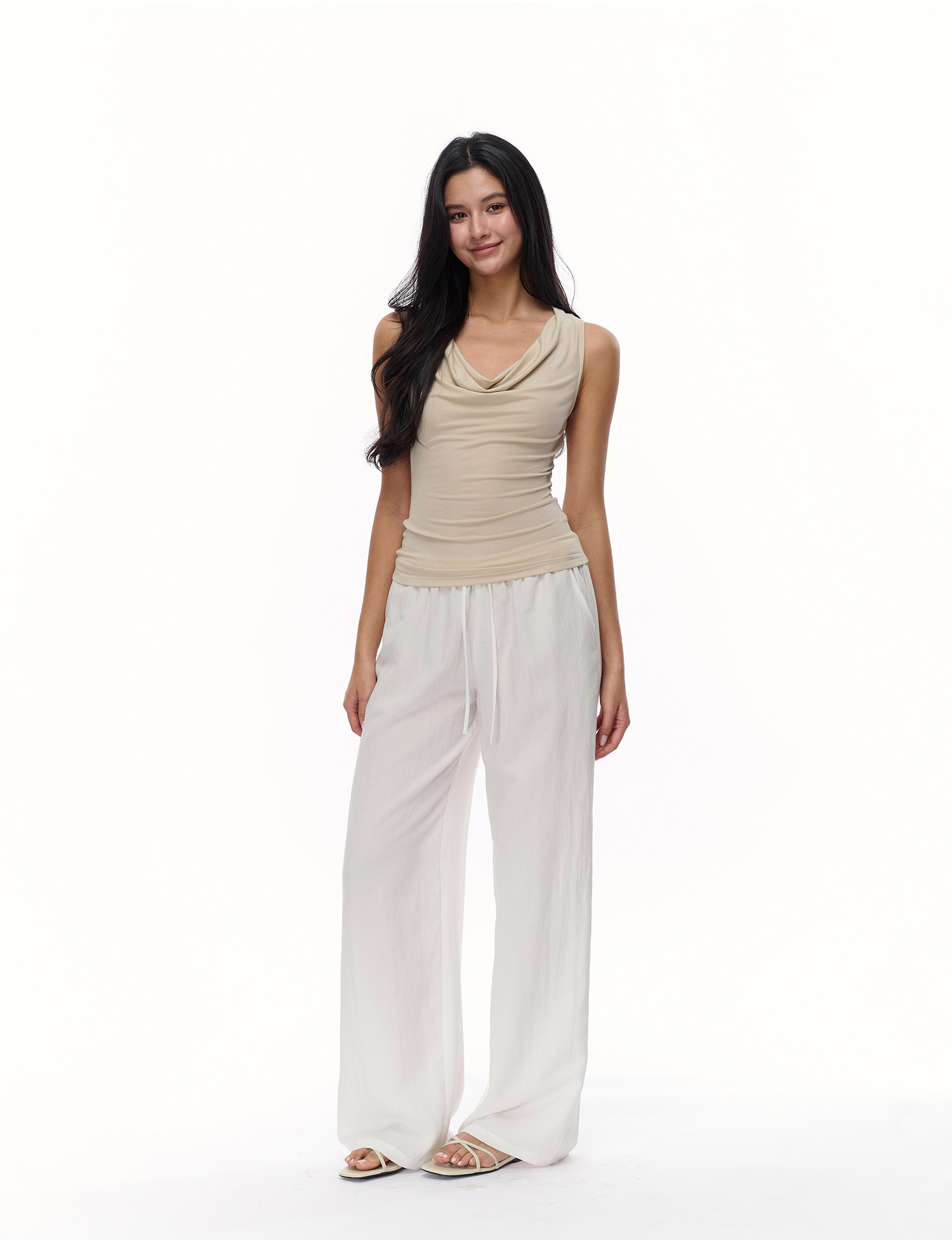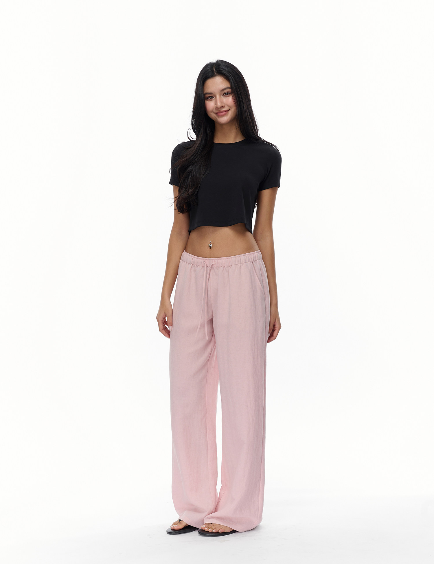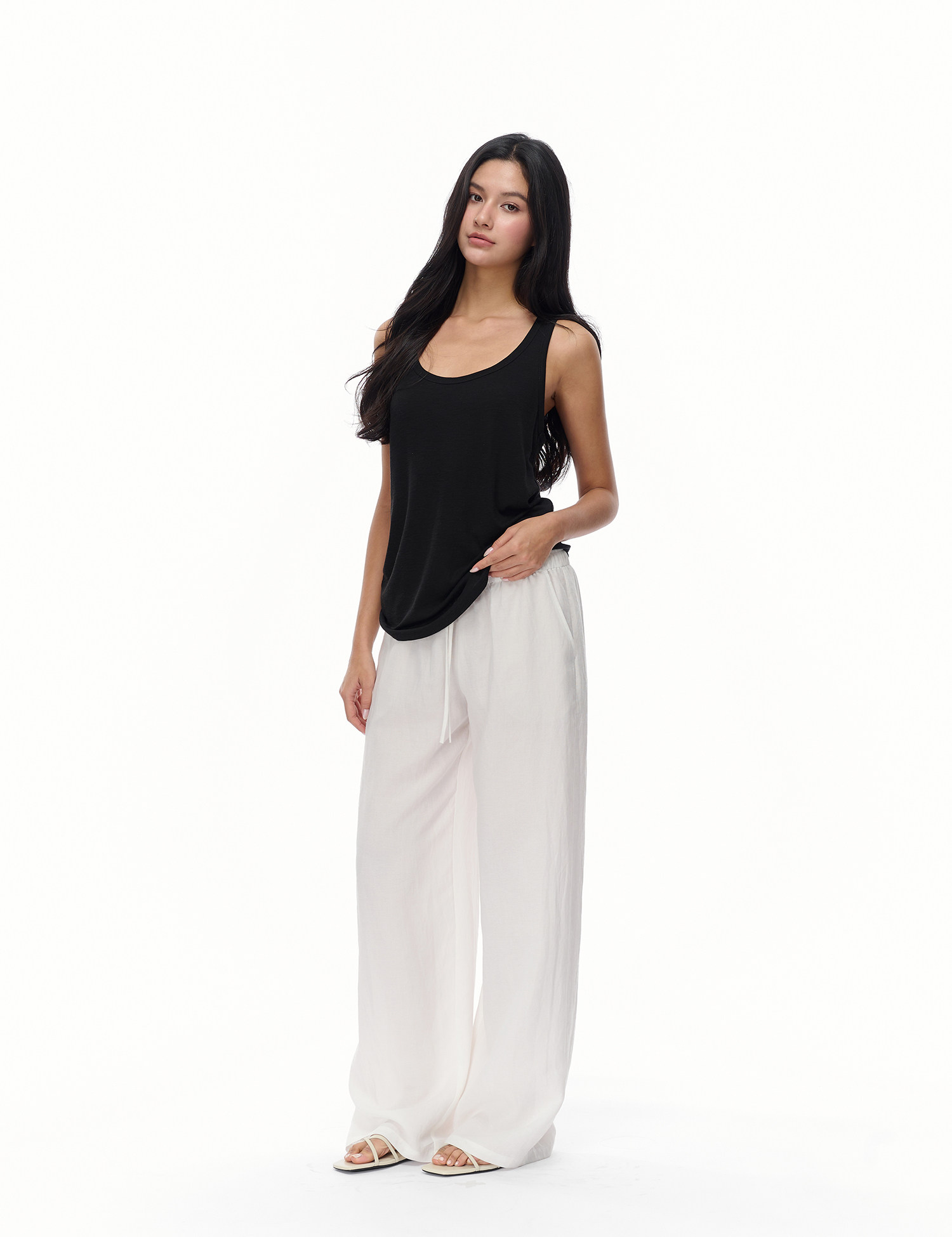 Jim Kennet Low-Waisted Retro Tencel Linen Elastic Waist Straight Pants