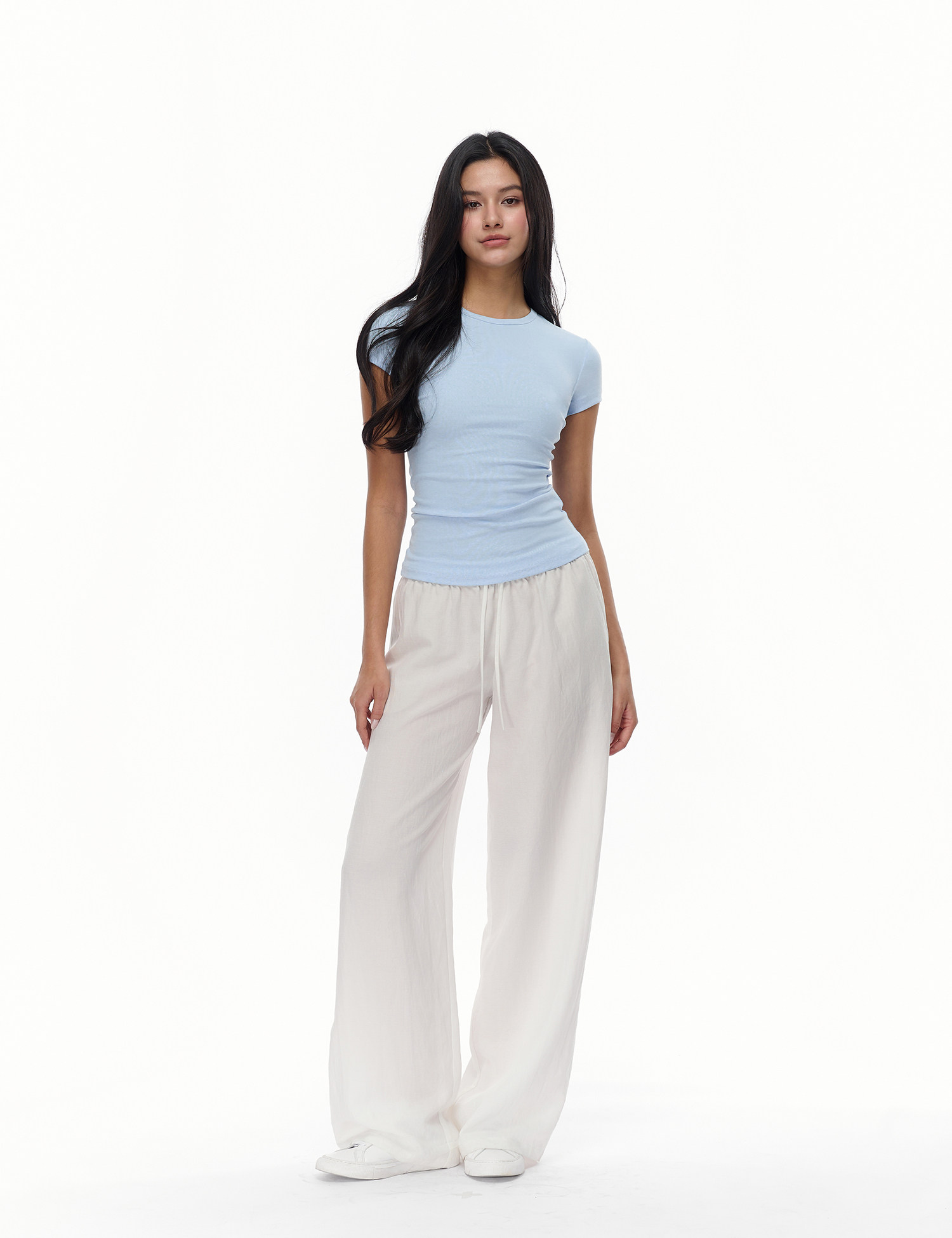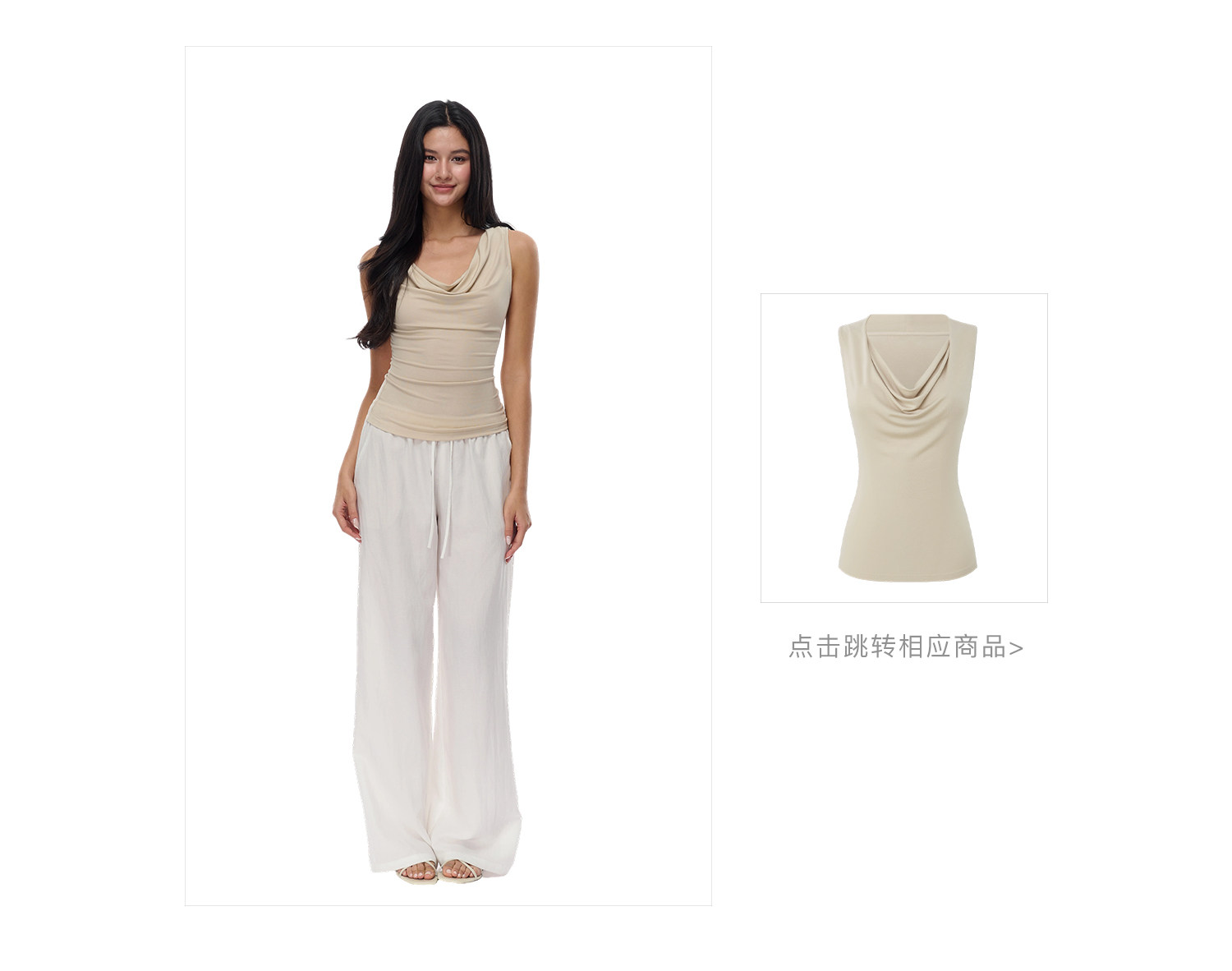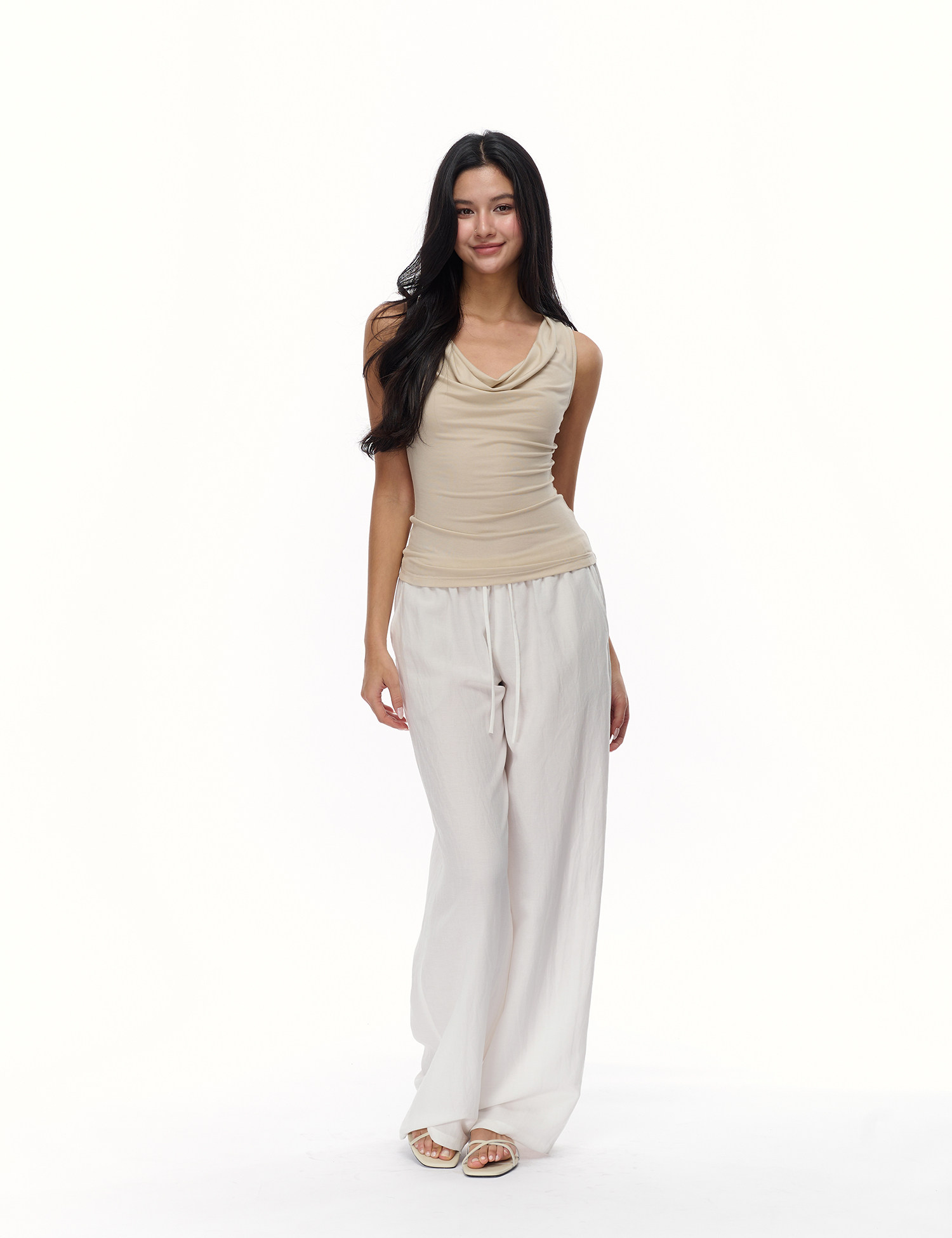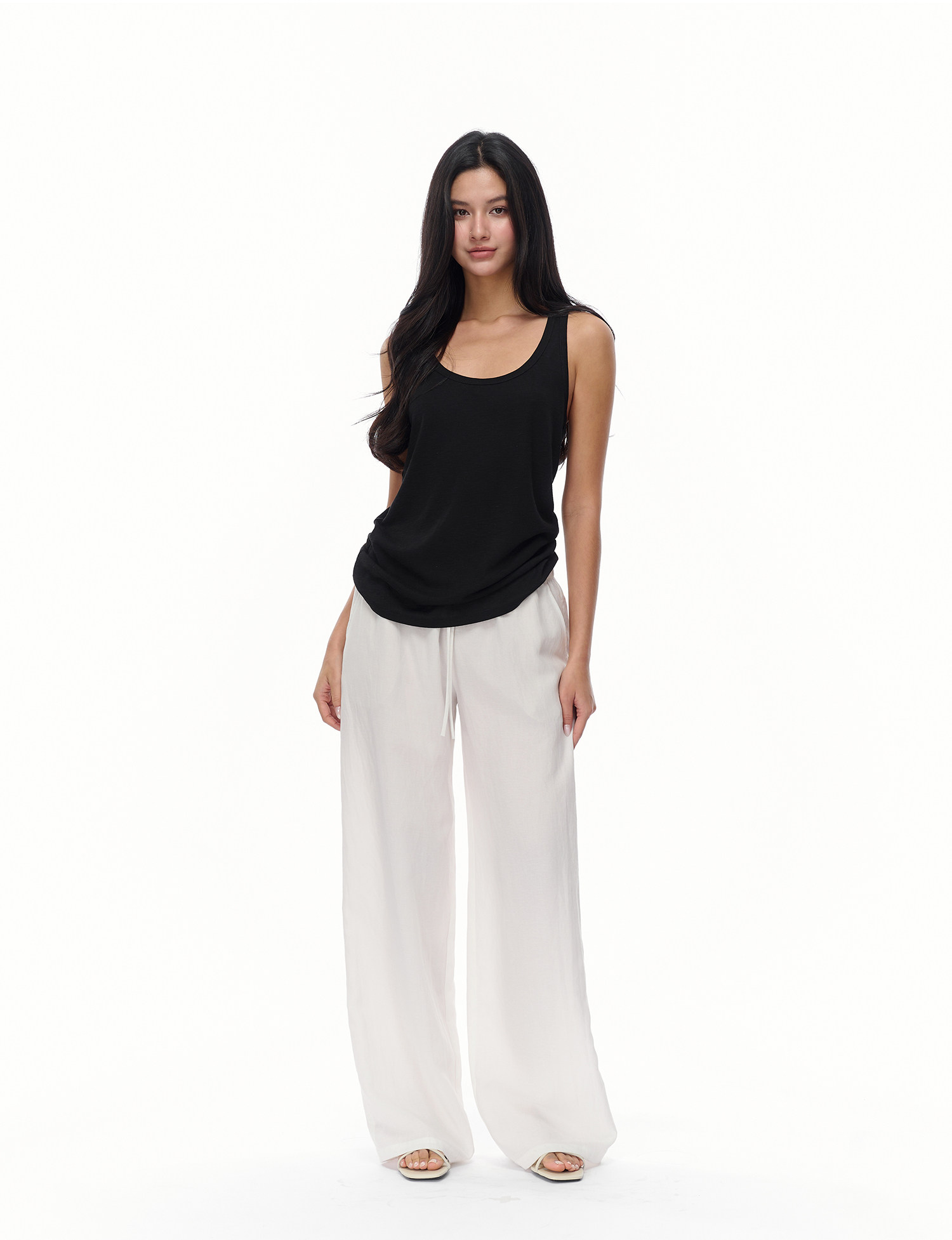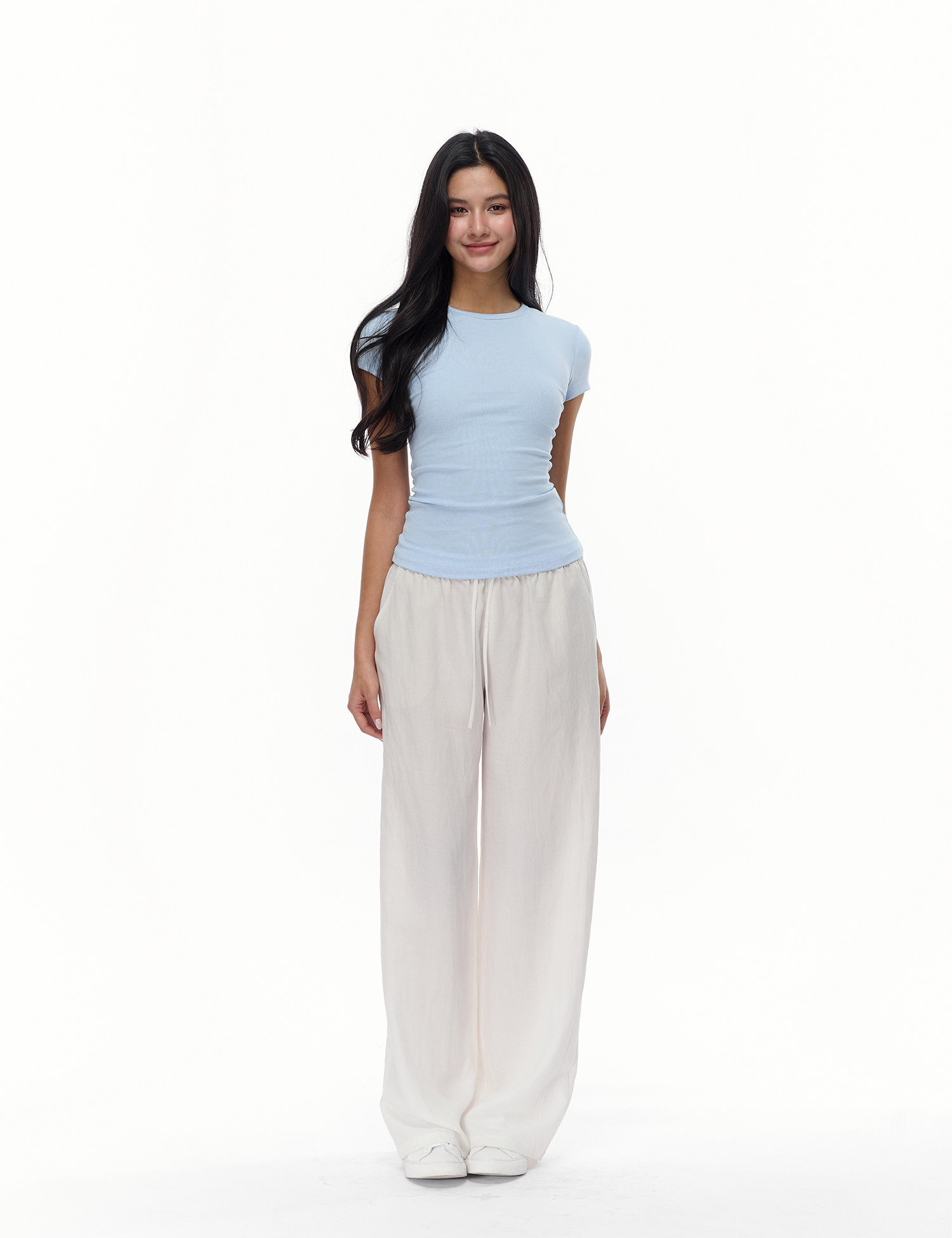 Jim Kennet Low-Waisted Retro Tencel Linen Elastic Waist Straight Pants