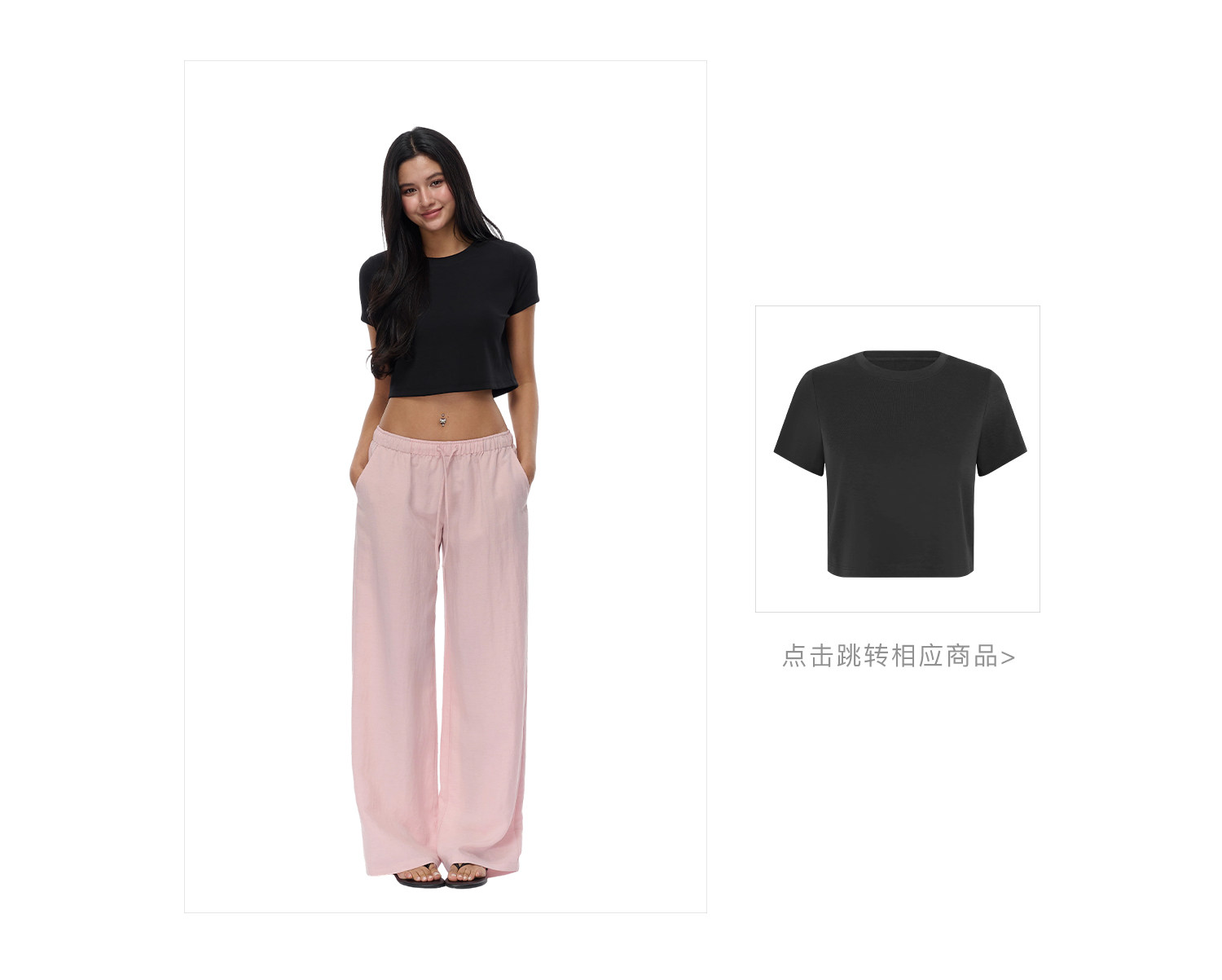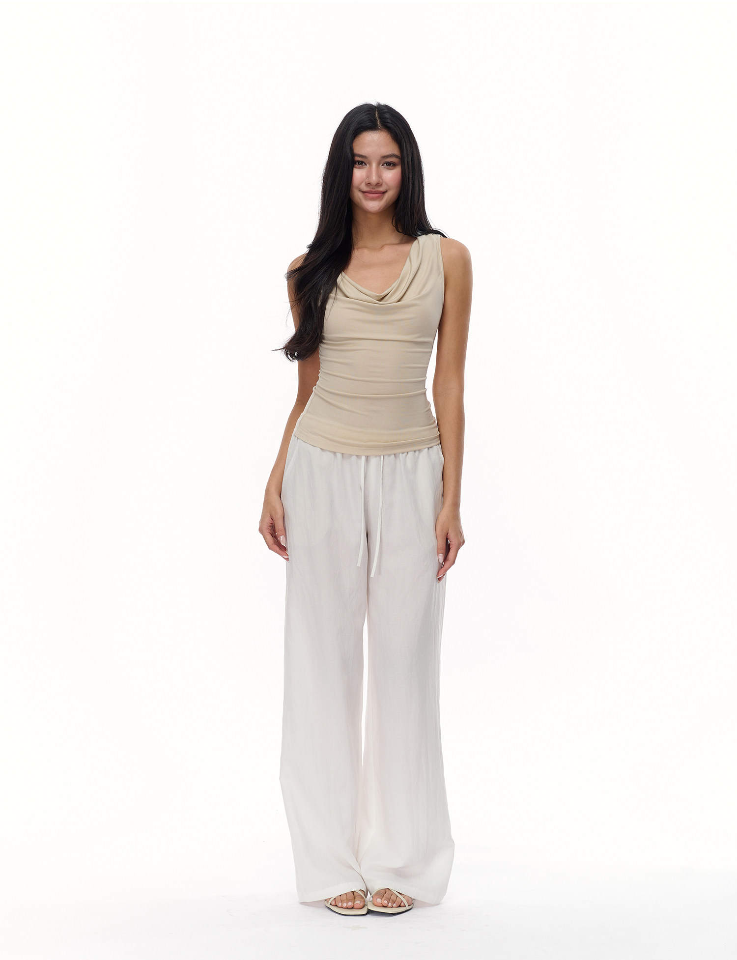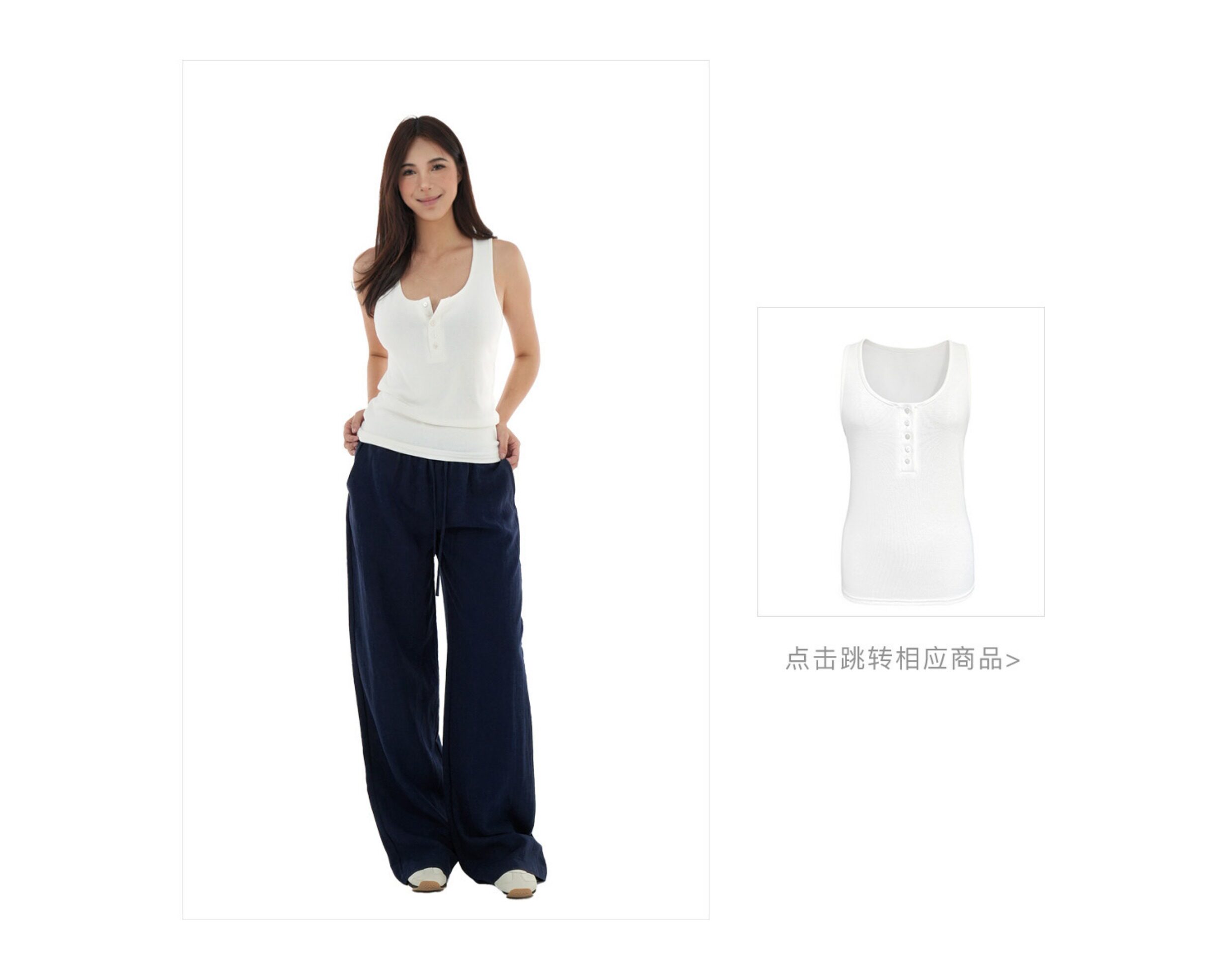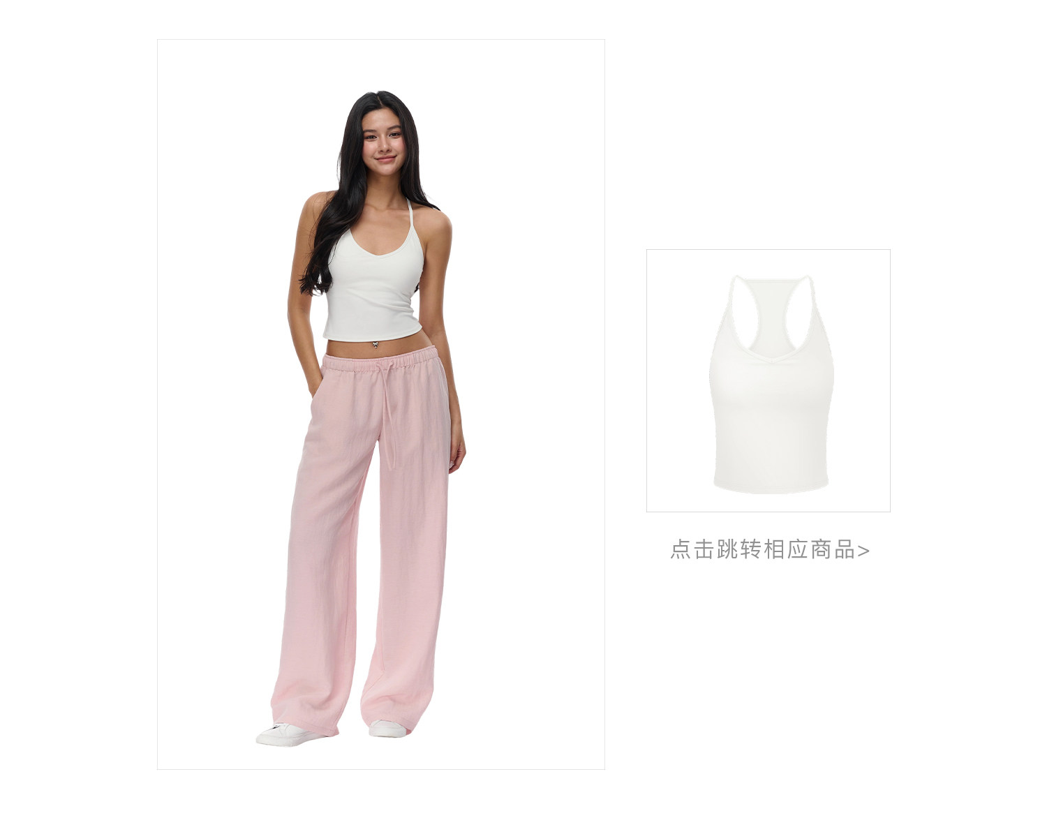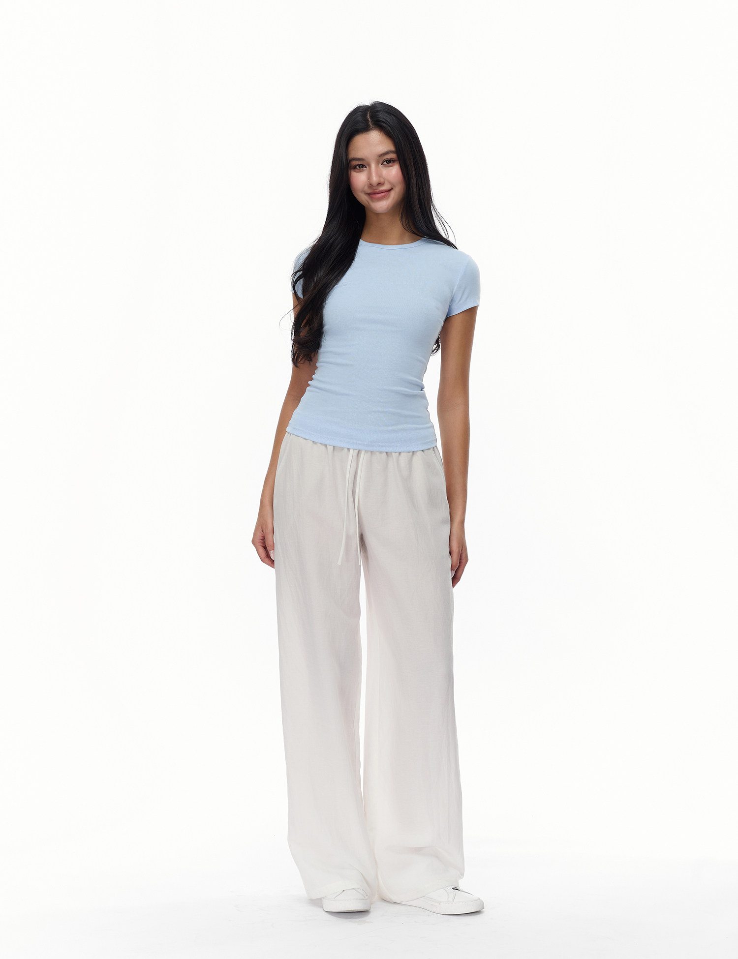Jim Kennet Low-Waisted Retro Tencel Linen Elastic Waist Straight Pants