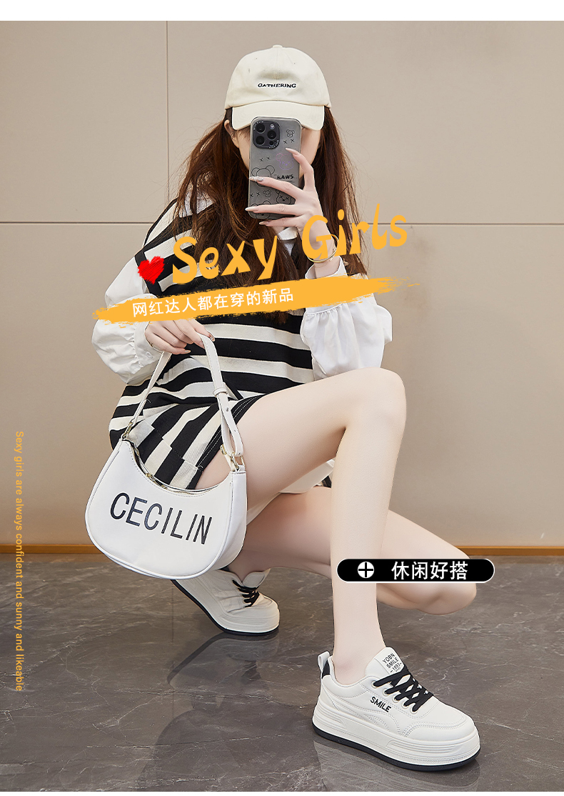 Thick-Soled White Sneakers for Women, 2025 New Spring and Autumn Women's Shoes, Popular Soft-Soled Lightweight Casual Sports Sneakers