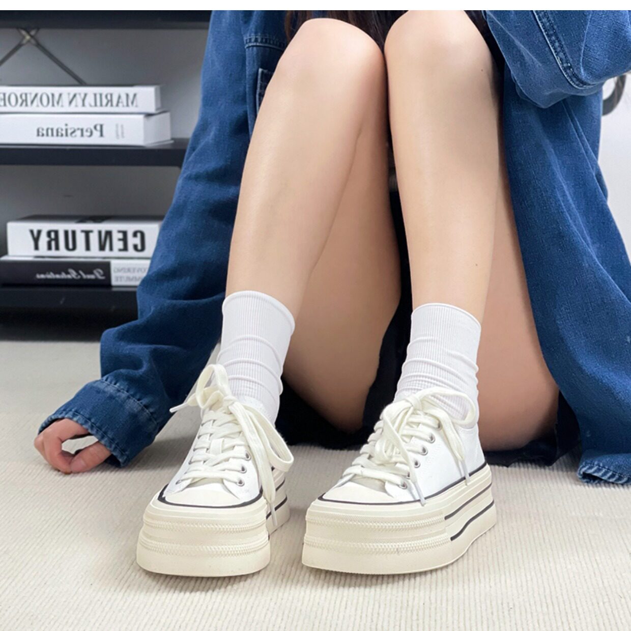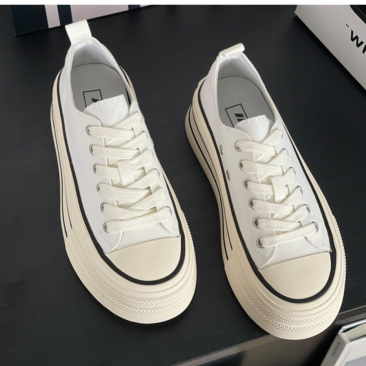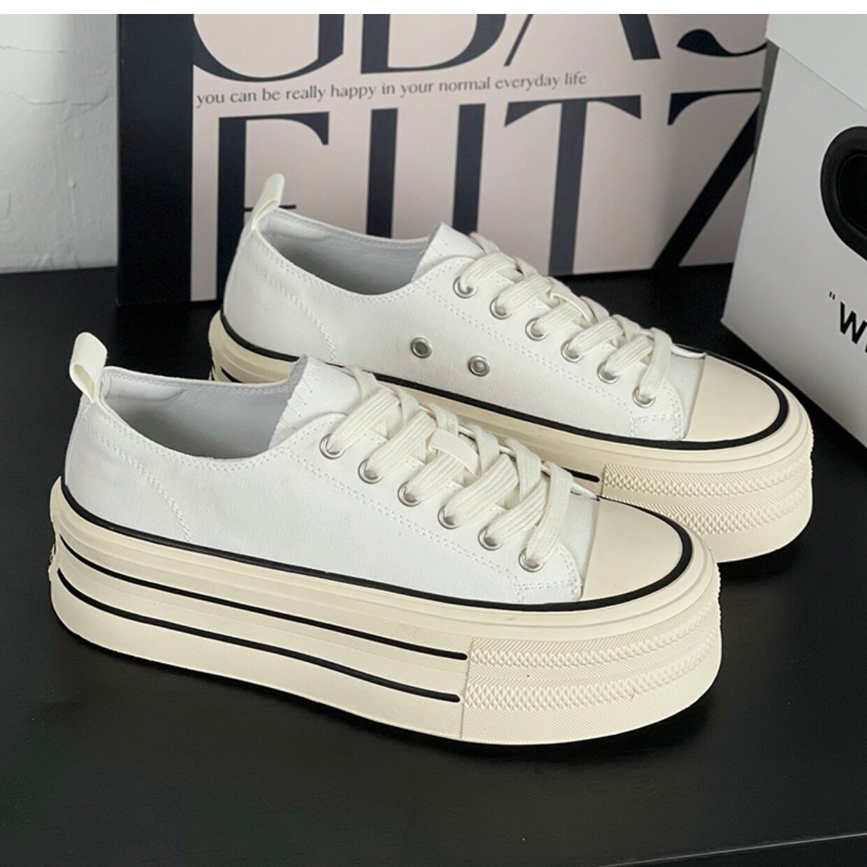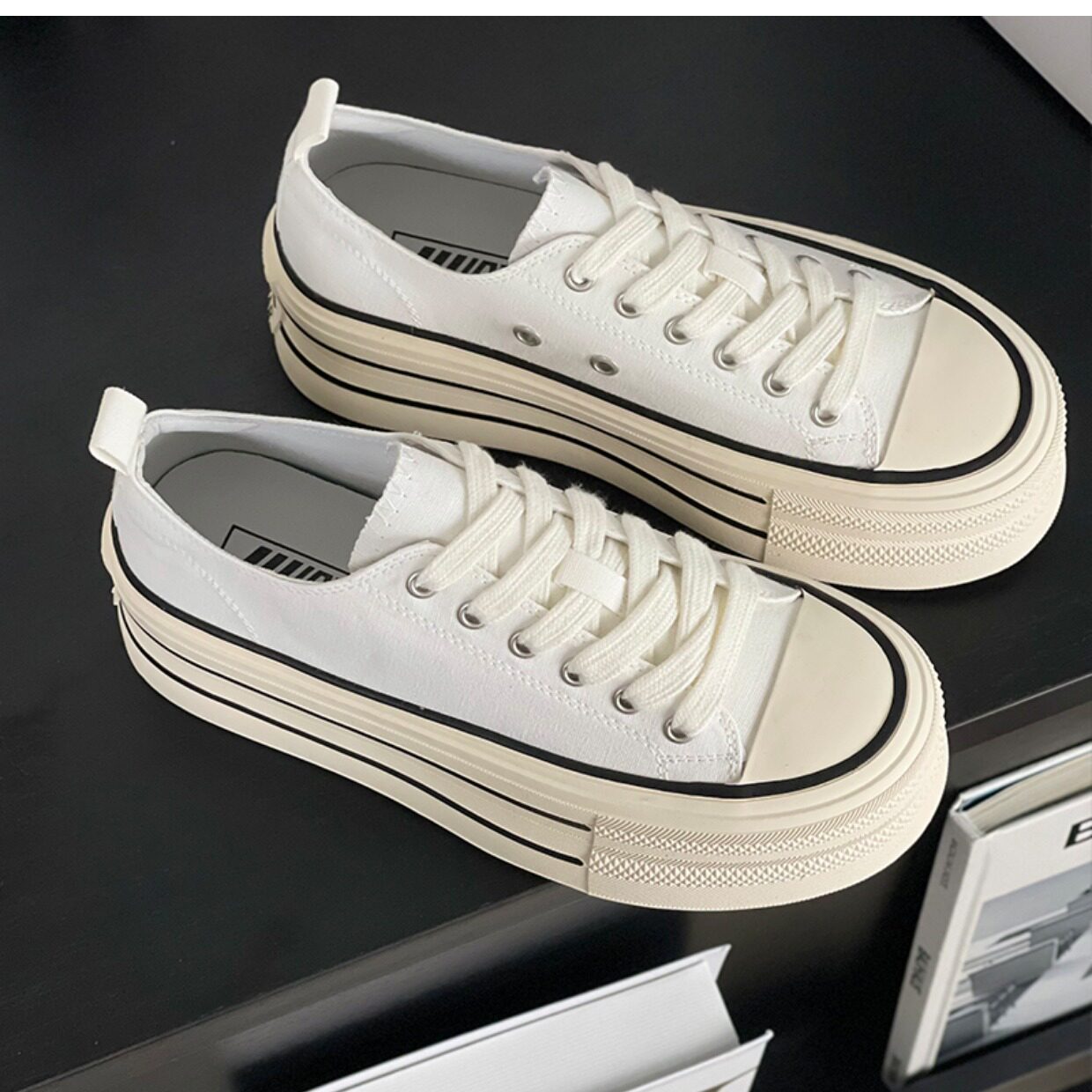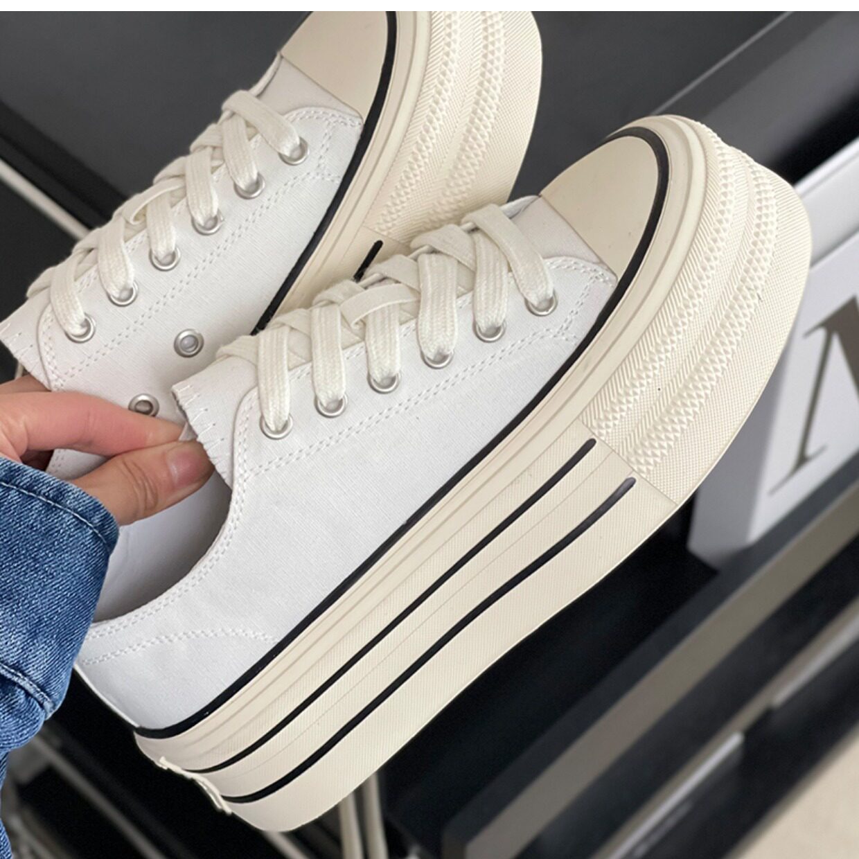 Hong Kong Low-Top Thick-Soled Height-Increasing Canvas Shoes for Women 2026 Spring New Lace-Up Platform Casual Versatile White Shoes