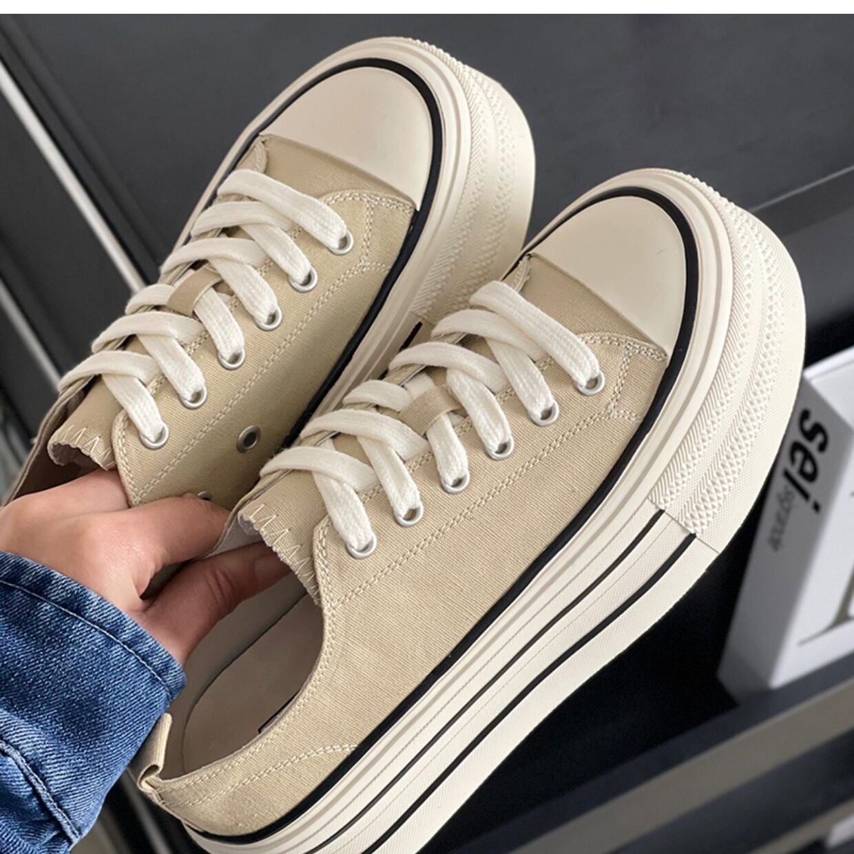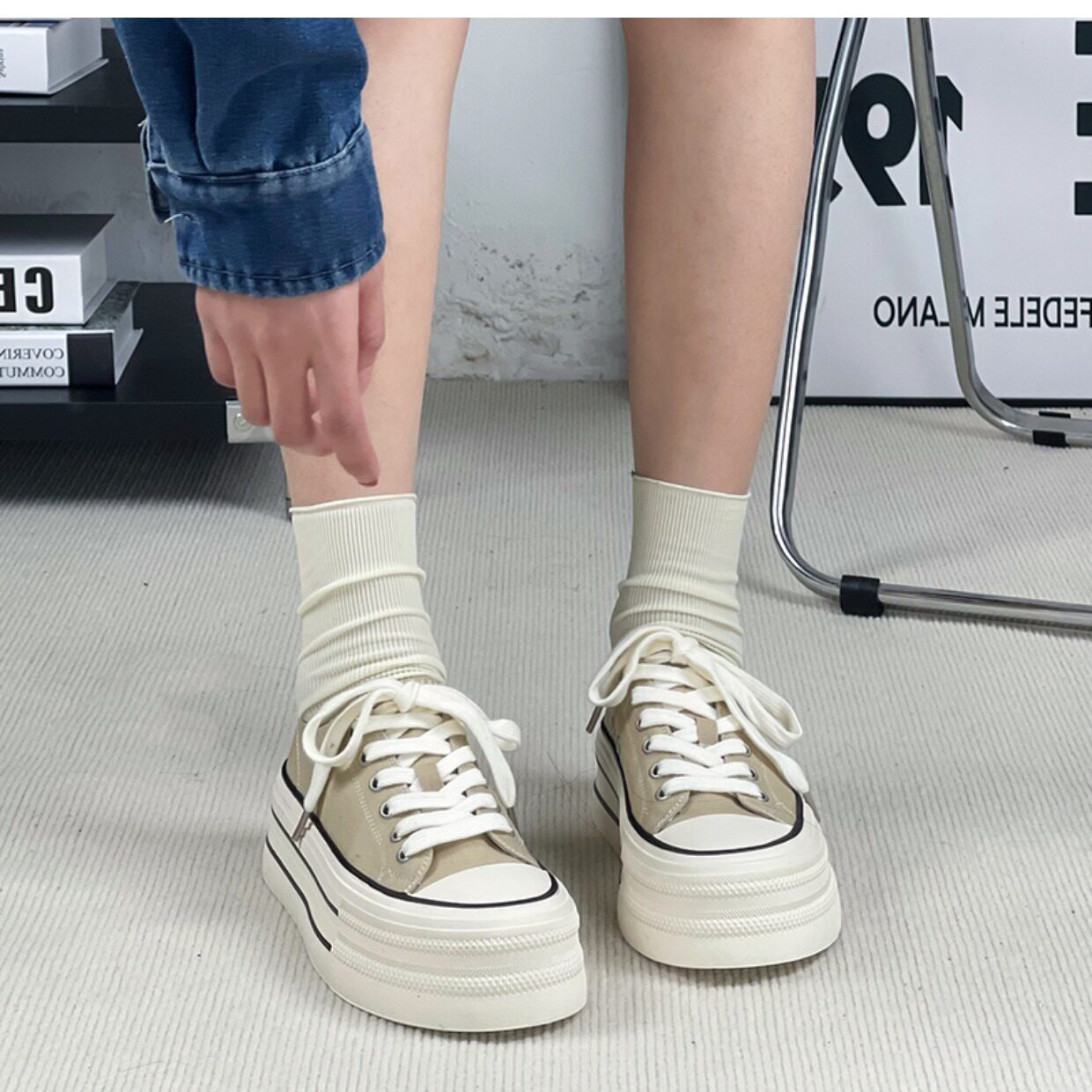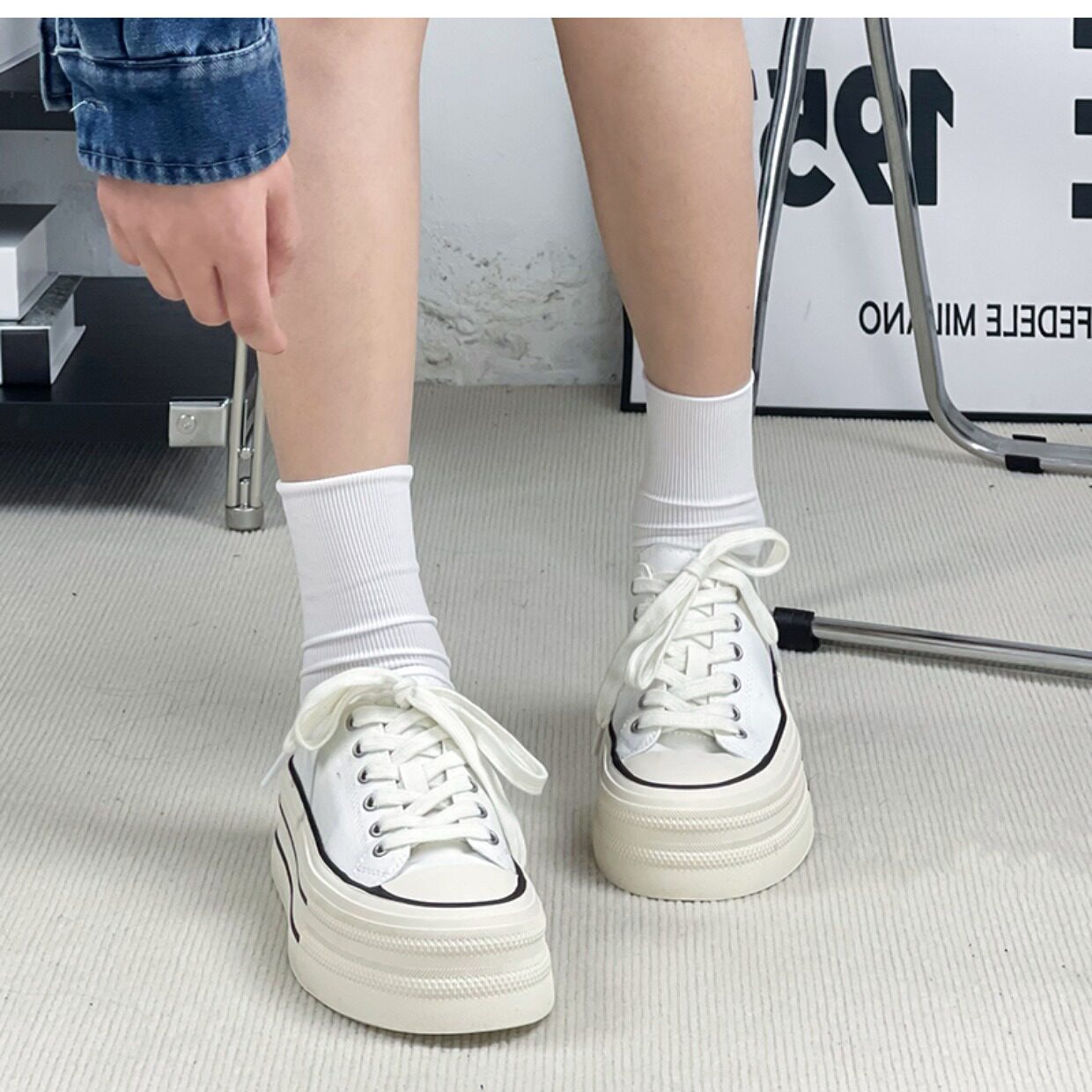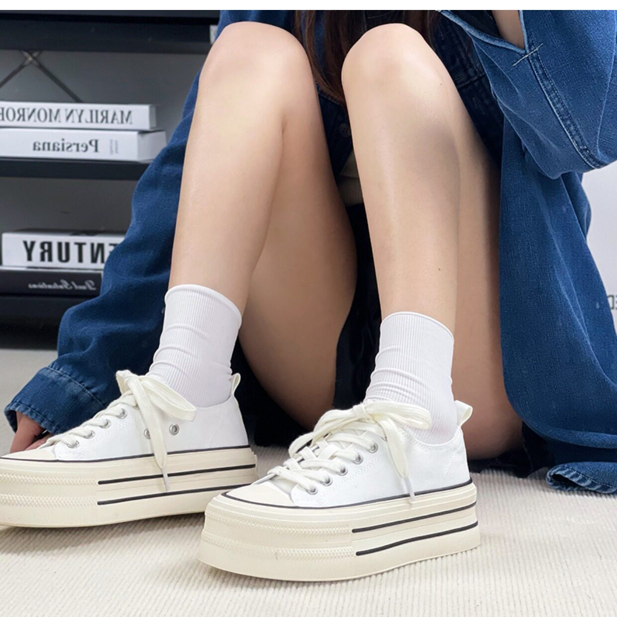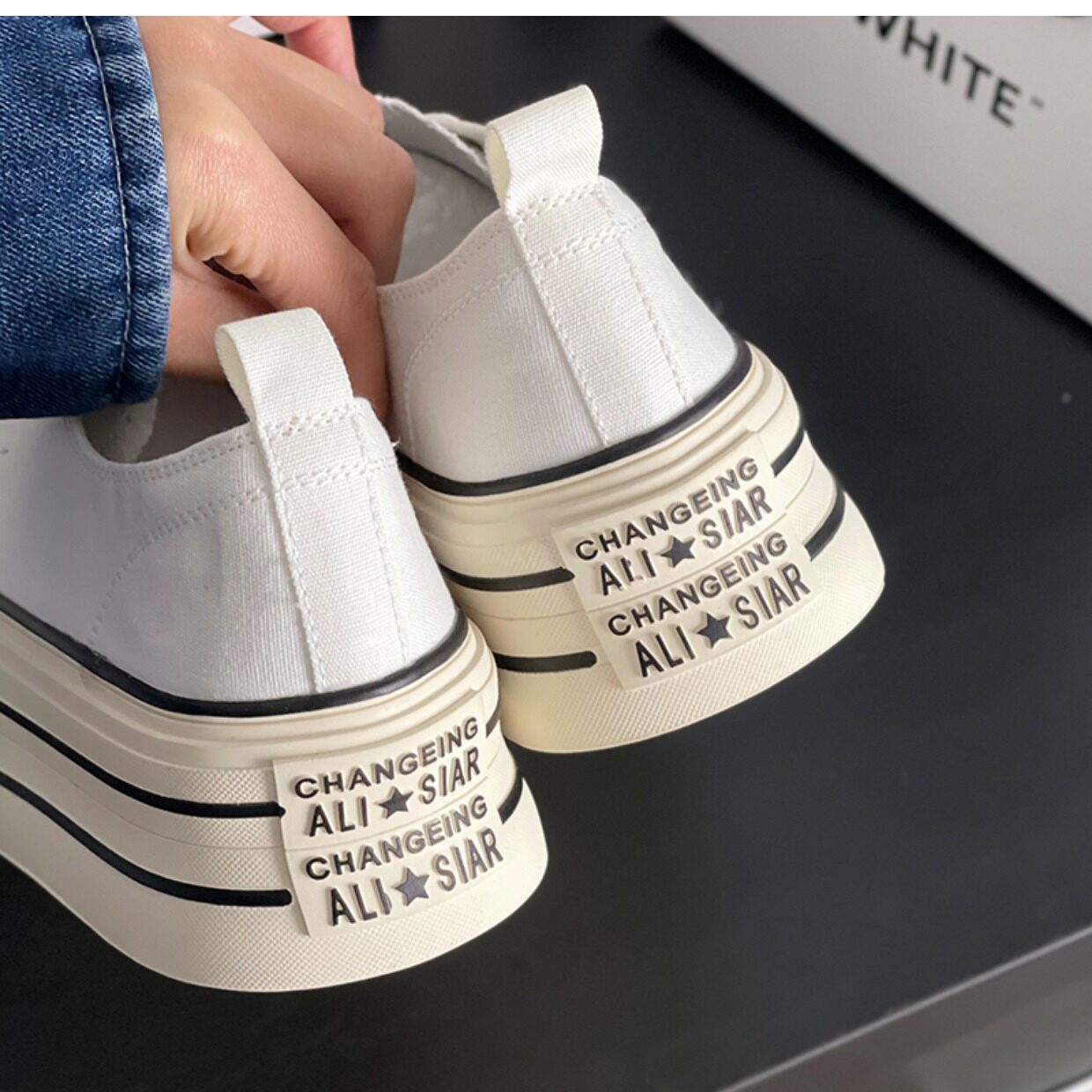 Hong Kong Low-Top Thick-Soled Height-Increasing Canvas Shoes for Women 2026 Spring New Lace-Up Platform Casual Versatile White Shoes