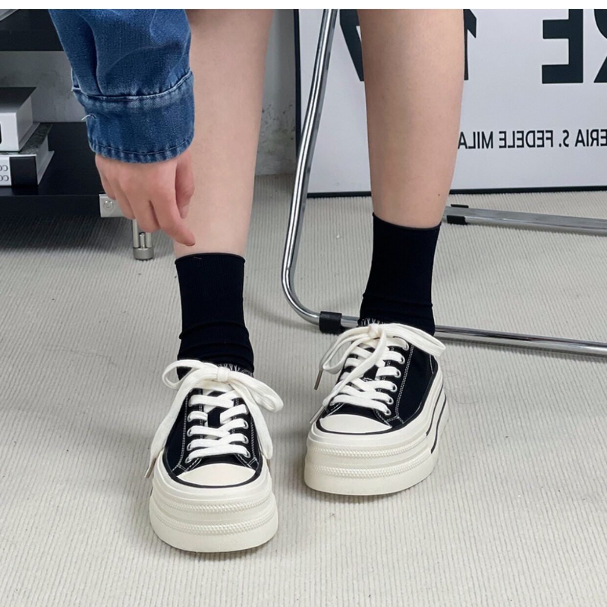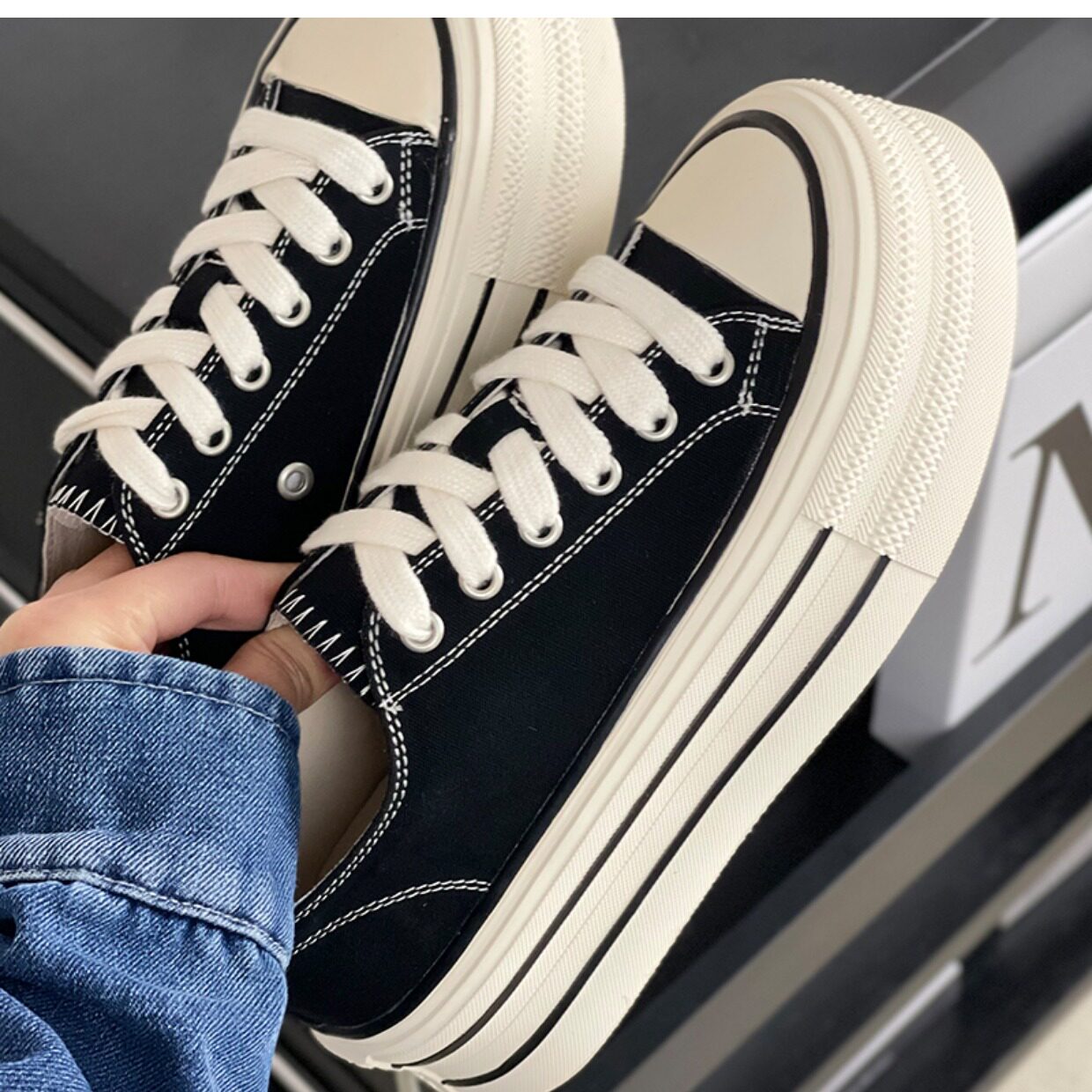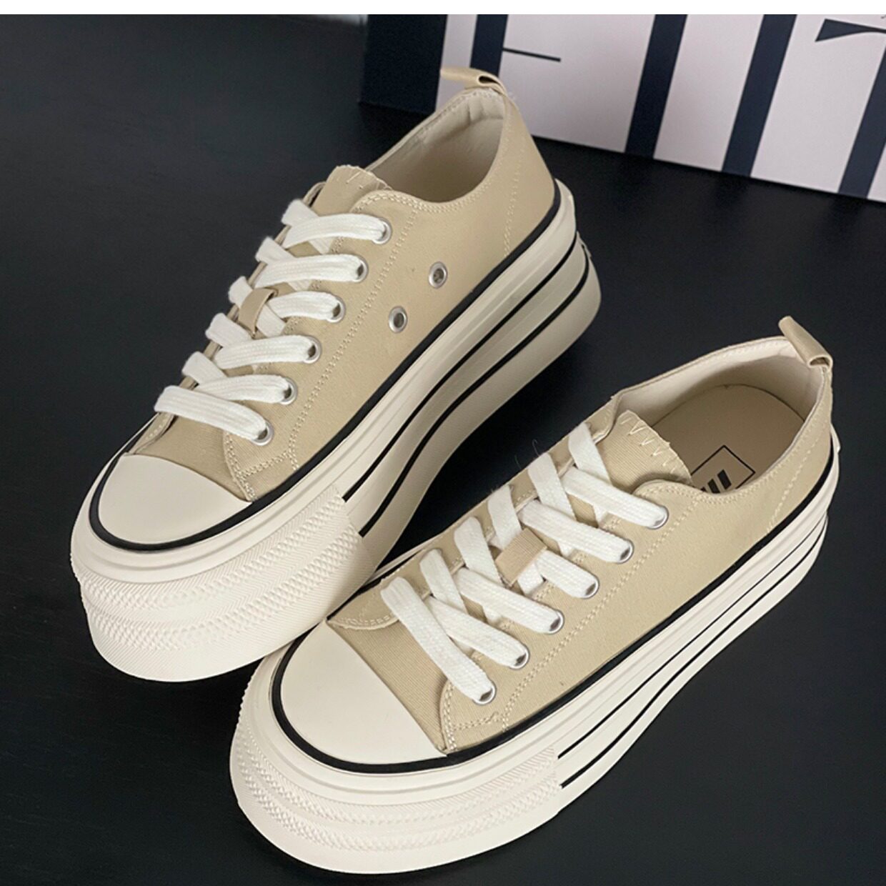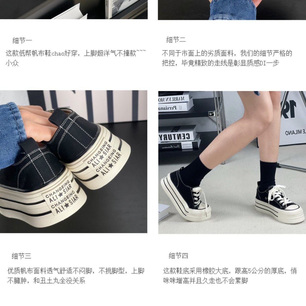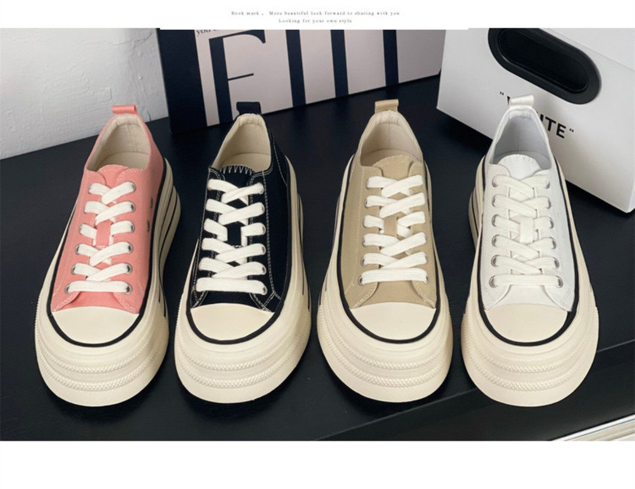 Hong Kong Low-Top Thick-Soled Height-Increasing Canvas Shoes for Women 2026 Spring New Lace-Up Platform Casual Versatile White Shoes