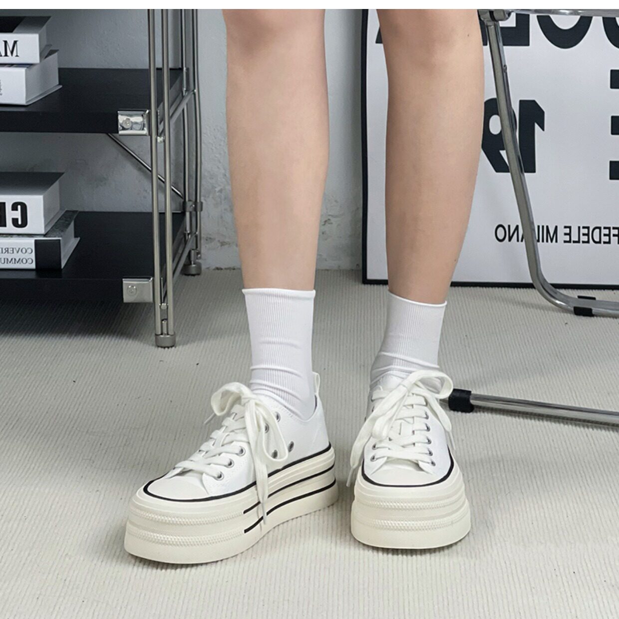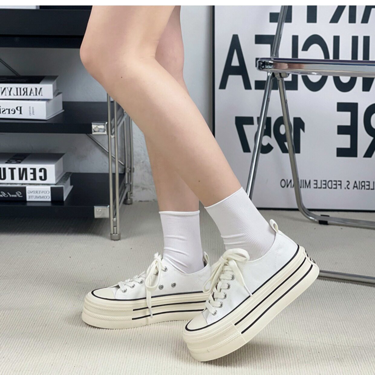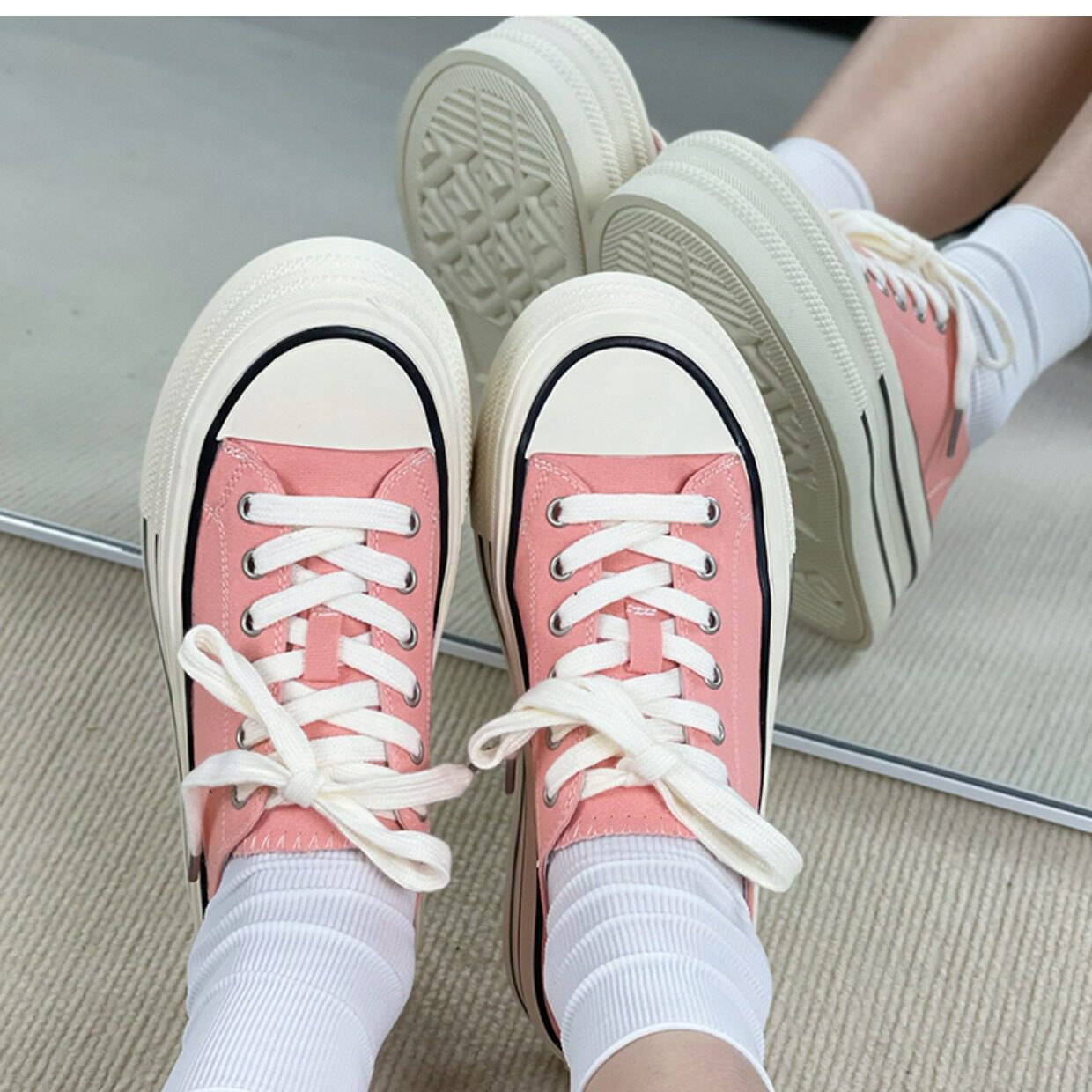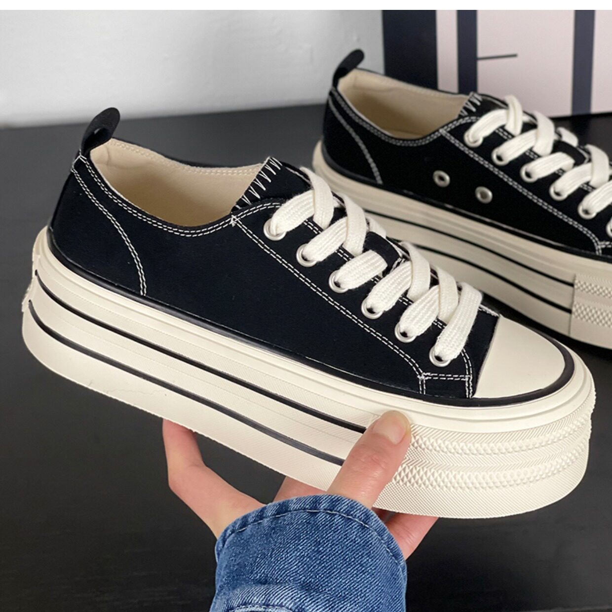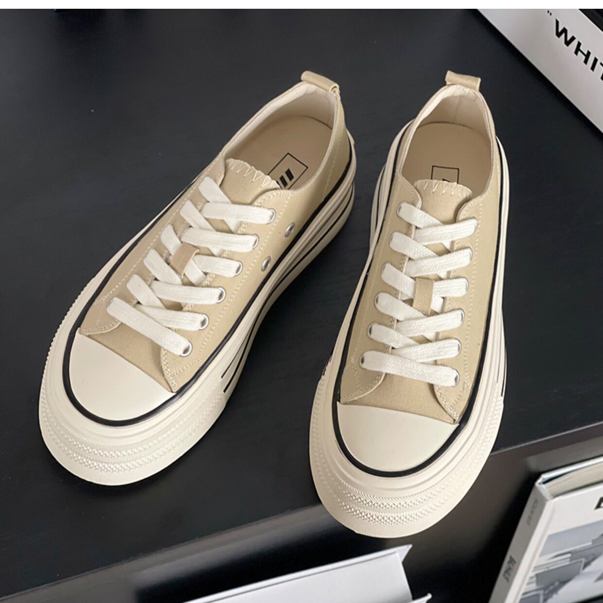 Hong Kong Low-Top Thick-Soled Height-Increasing Canvas Shoes for Women 2026 Spring New Lace-Up Platform Casual Versatile White Shoes