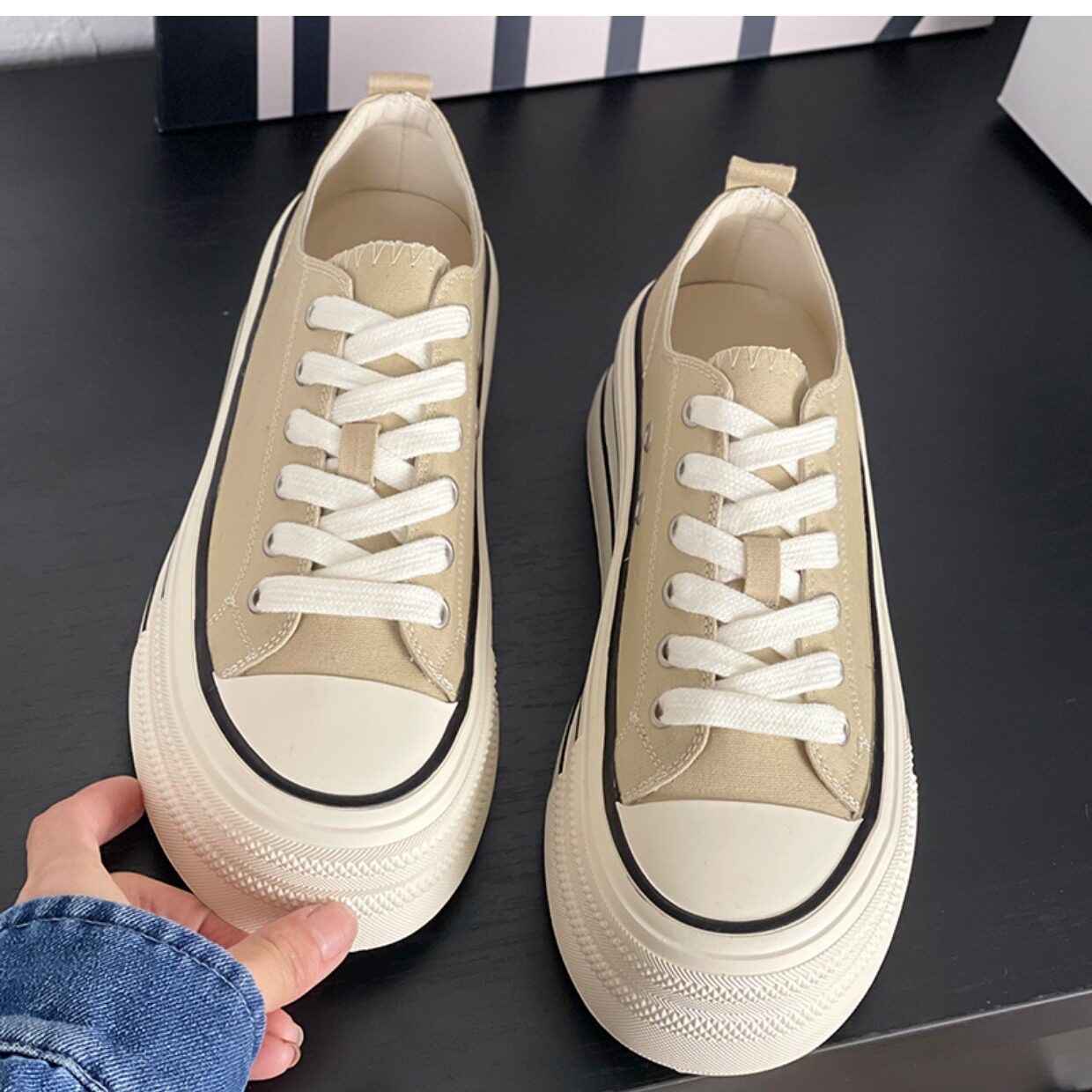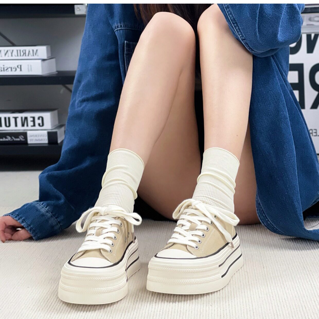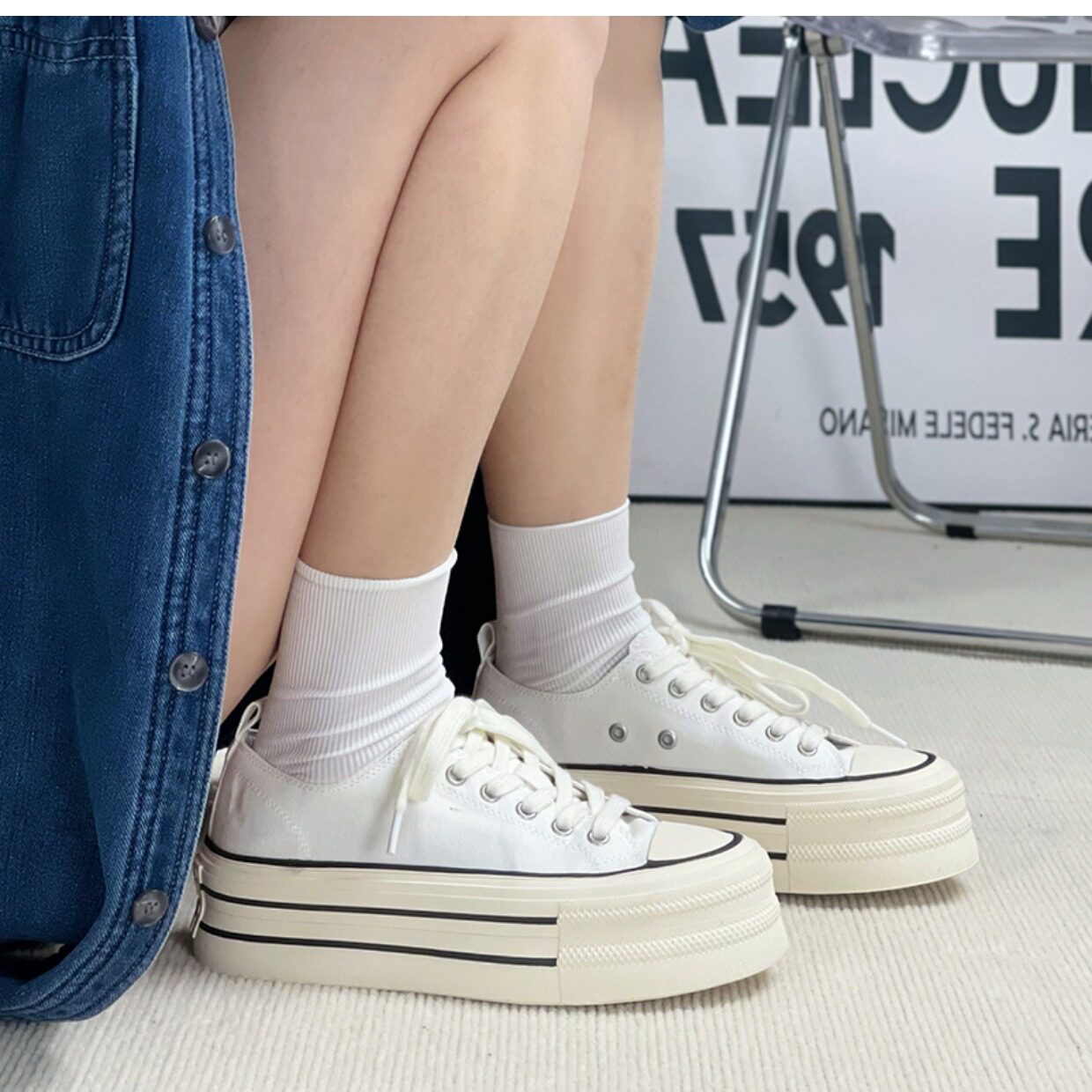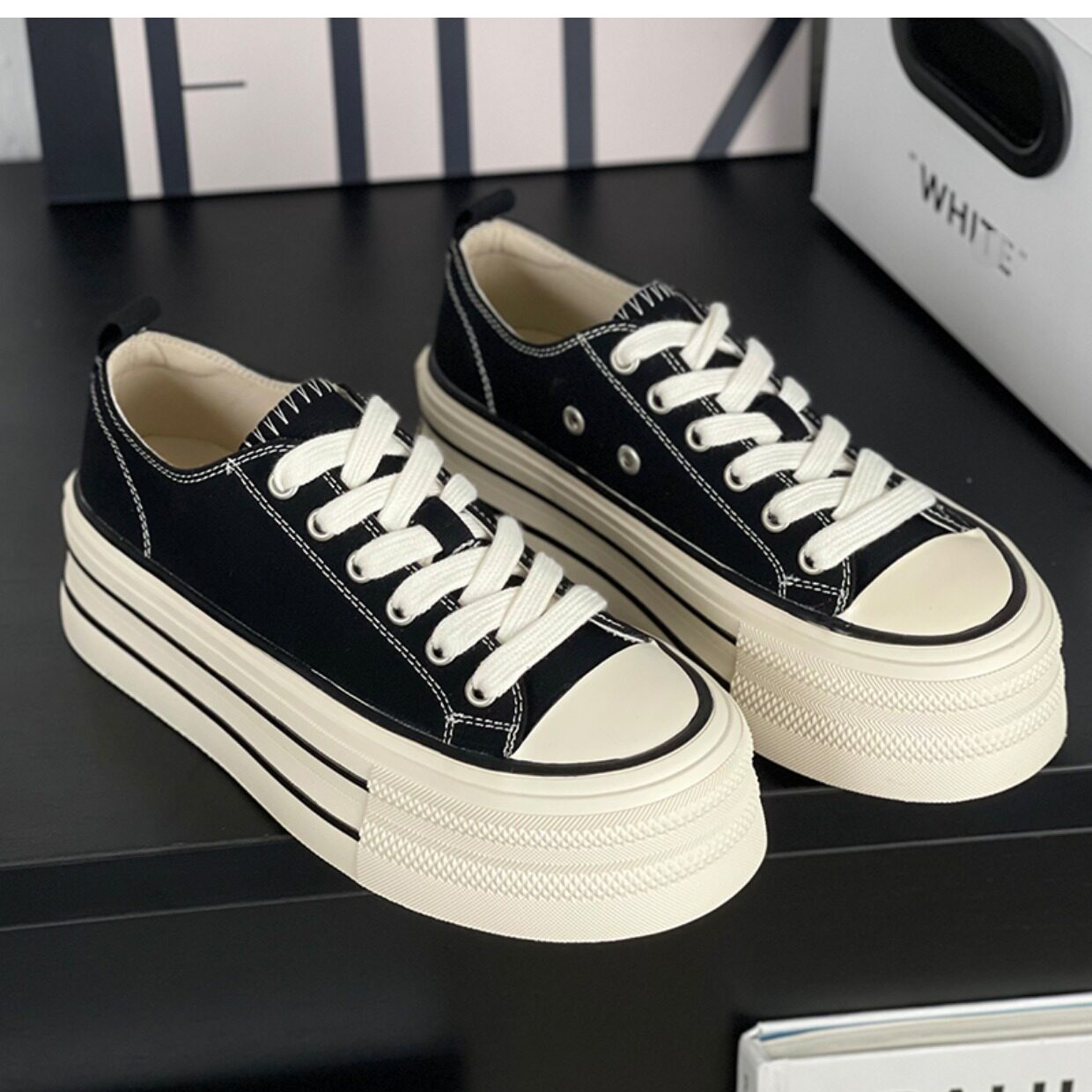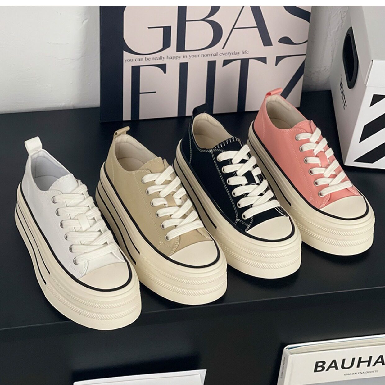 Hong Kong Low-Top Thick-Soled Height-Increasing Canvas Shoes for Women 2026 Spring New Lace-Up Platform Casual Versatile White Shoes
