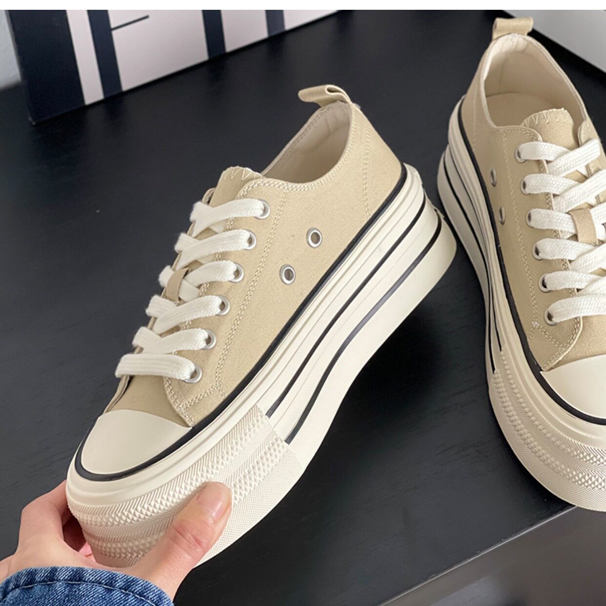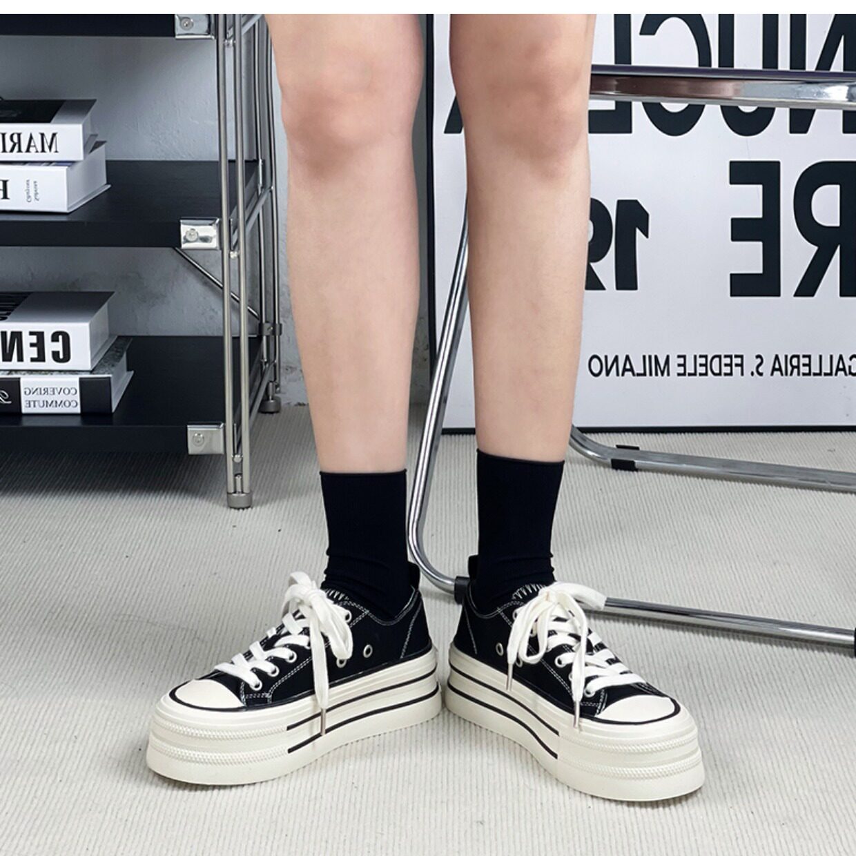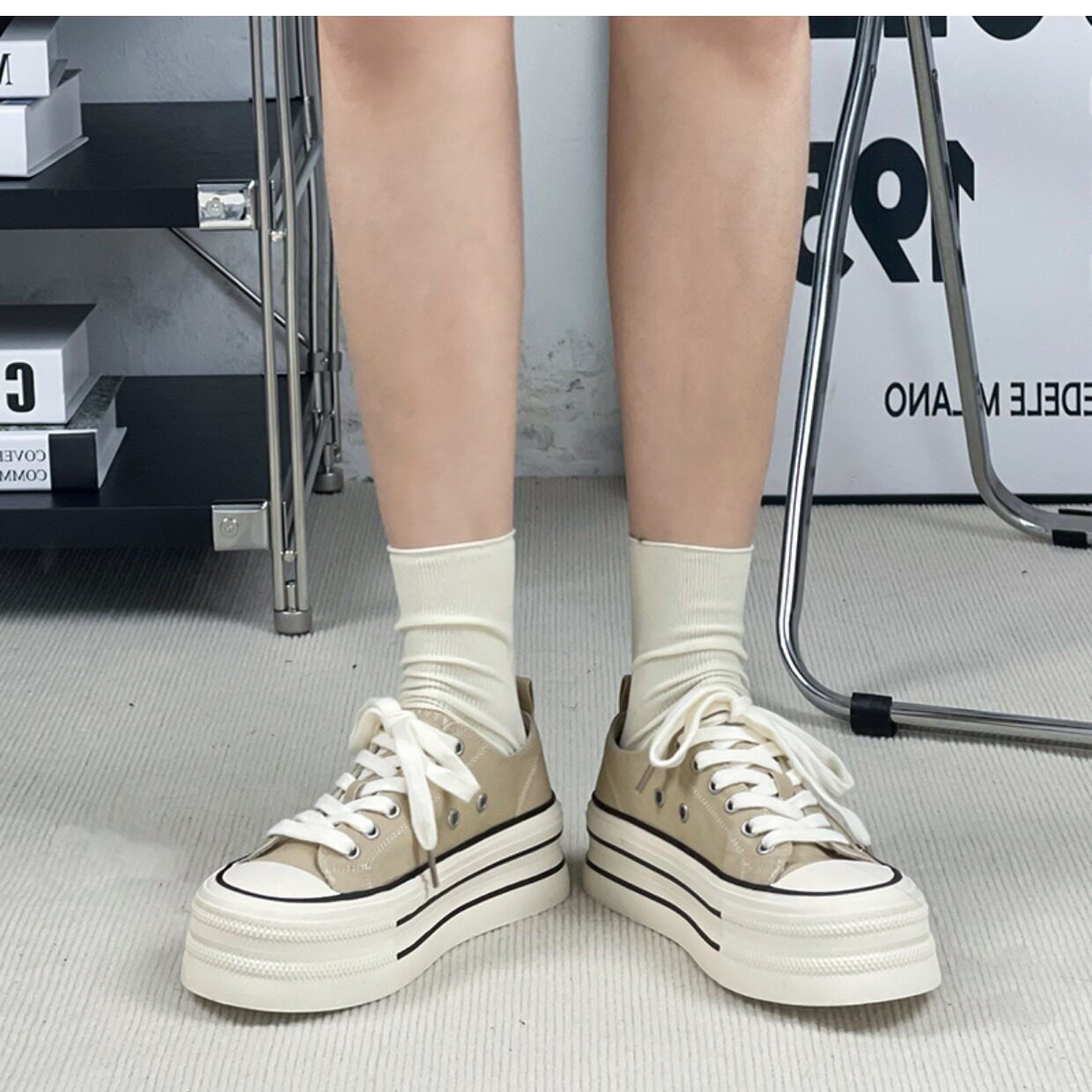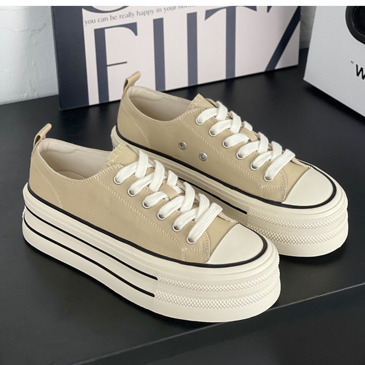 Hong Kong Low-Top Thick-Soled Height-Increasing Canvas Shoes for Women 2026 Spring New Lace-Up Platform Casual Versatile White Shoes