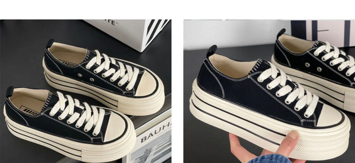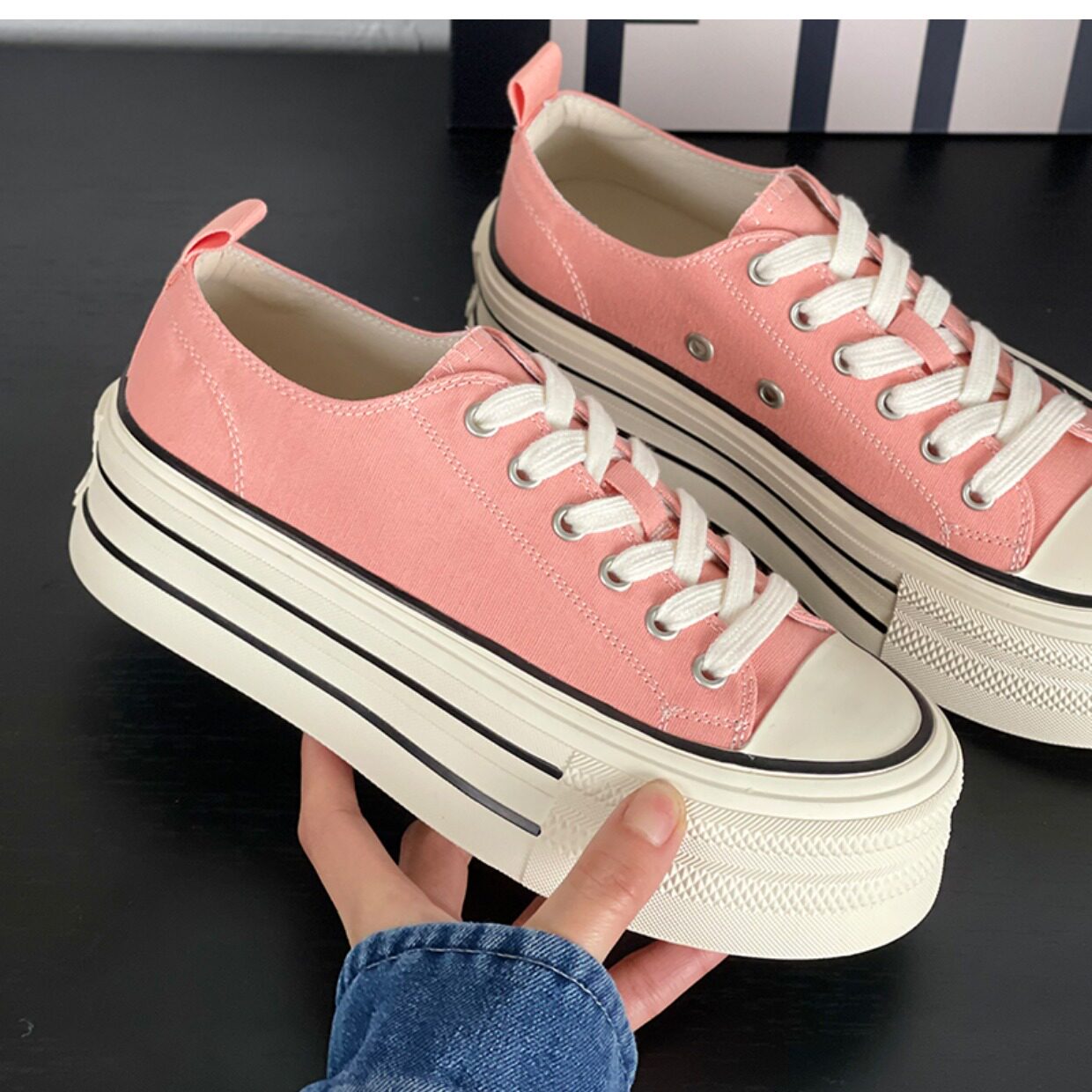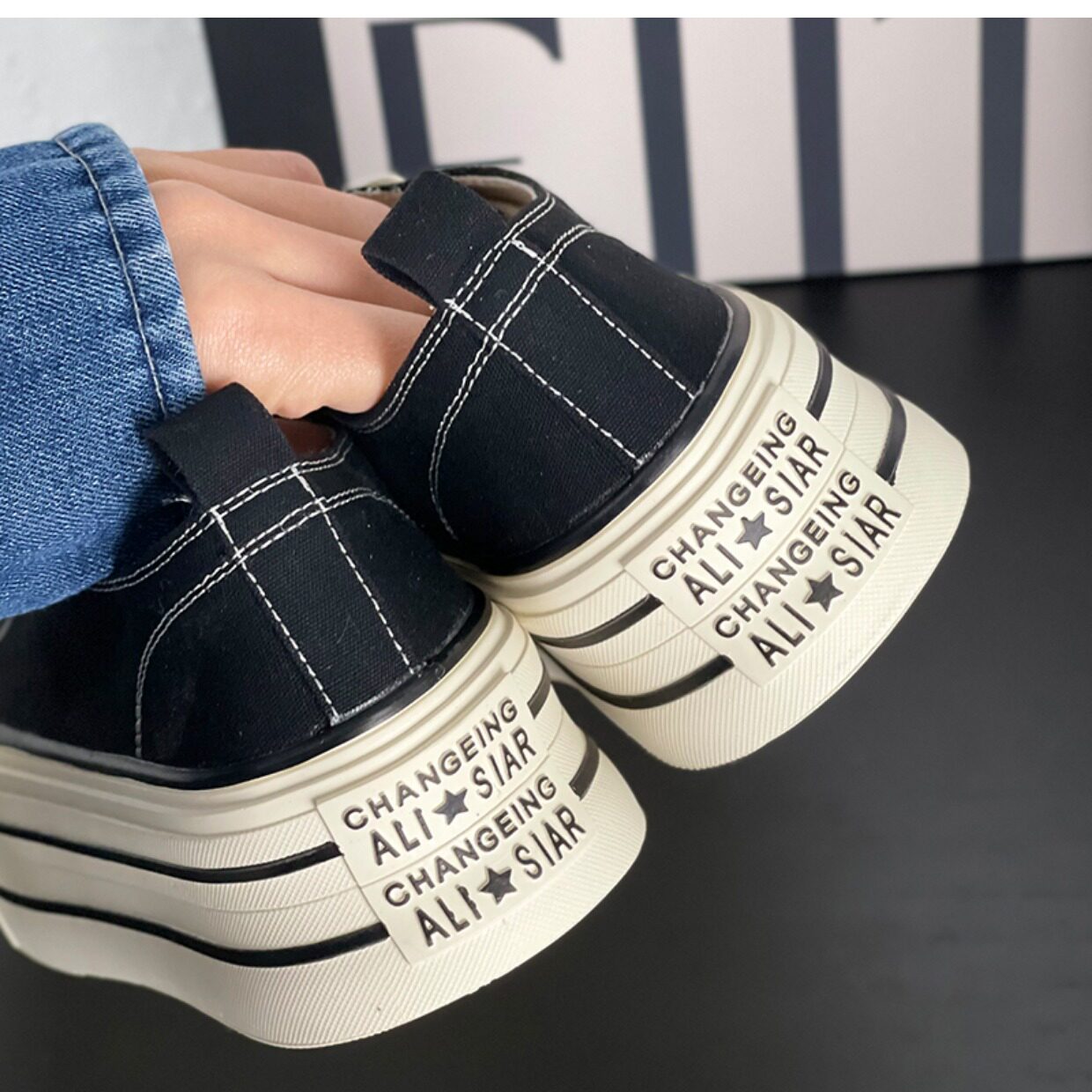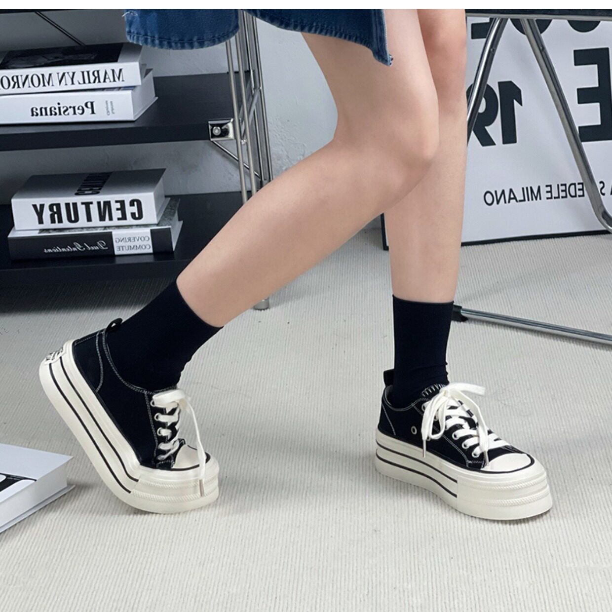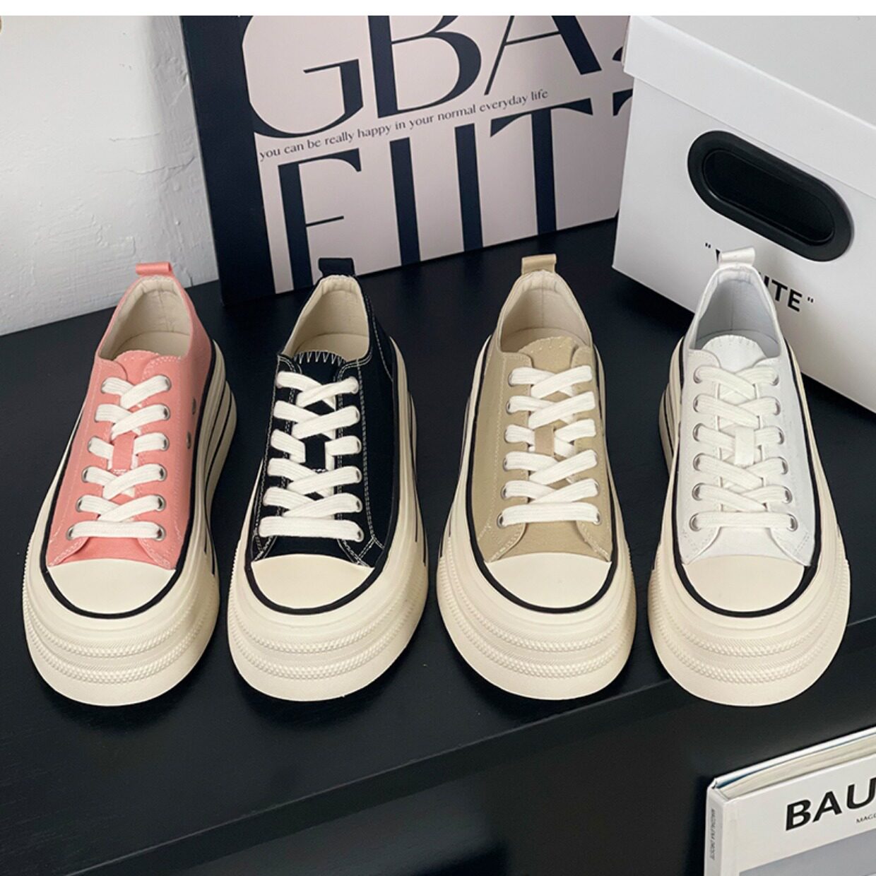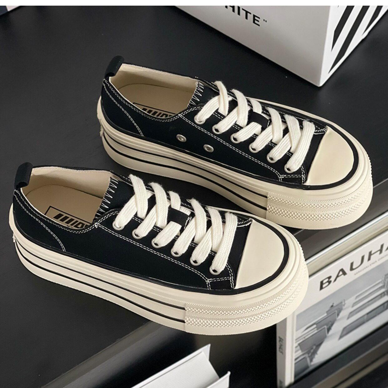 Hong Kong Low-Top Thick-Soled Height-Increasing Canvas Shoes for Women 2026 Spring New Lace-Up Platform Casual Versatile White Shoes