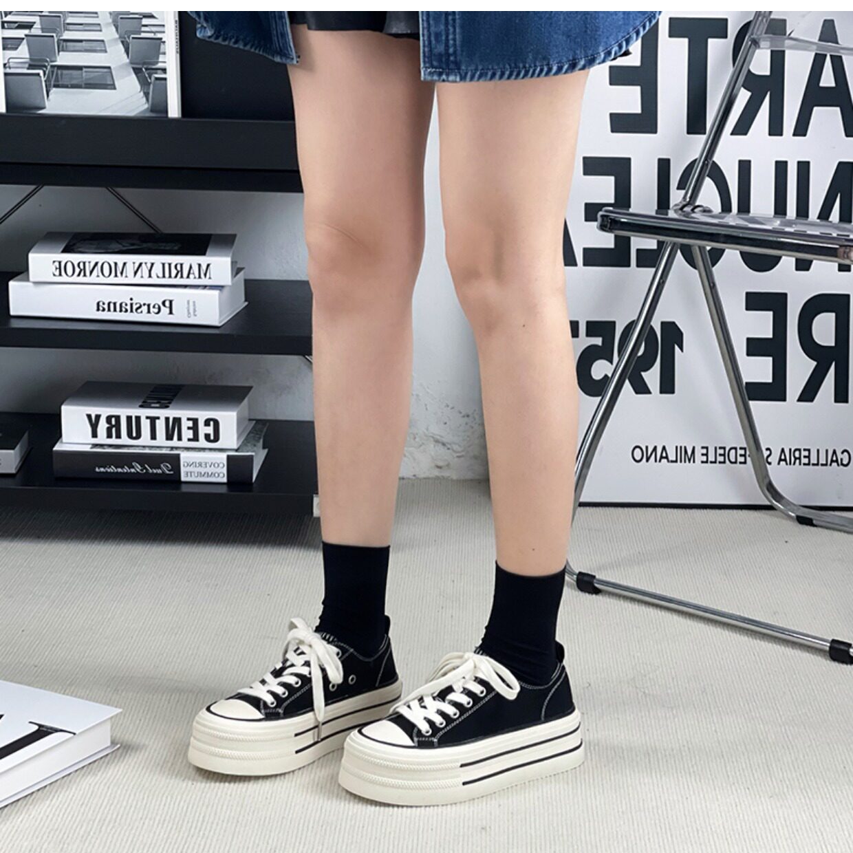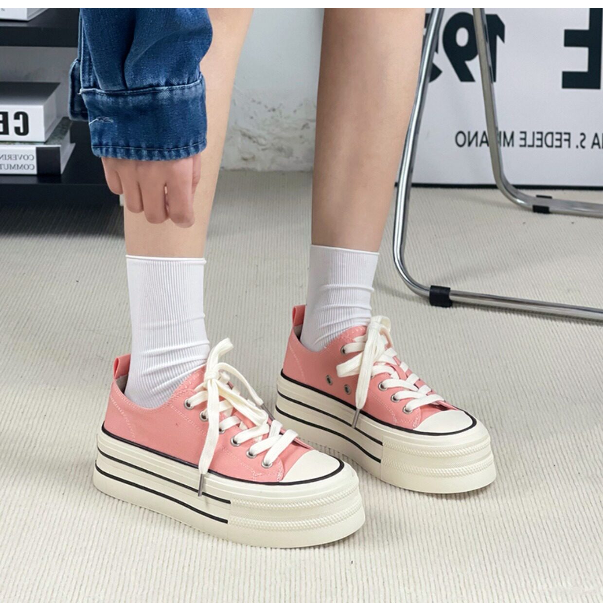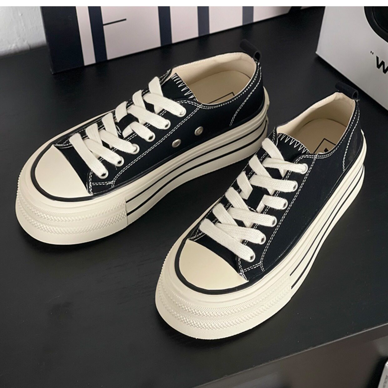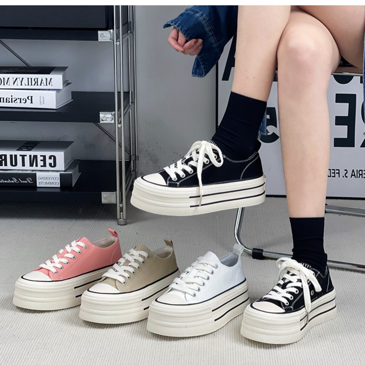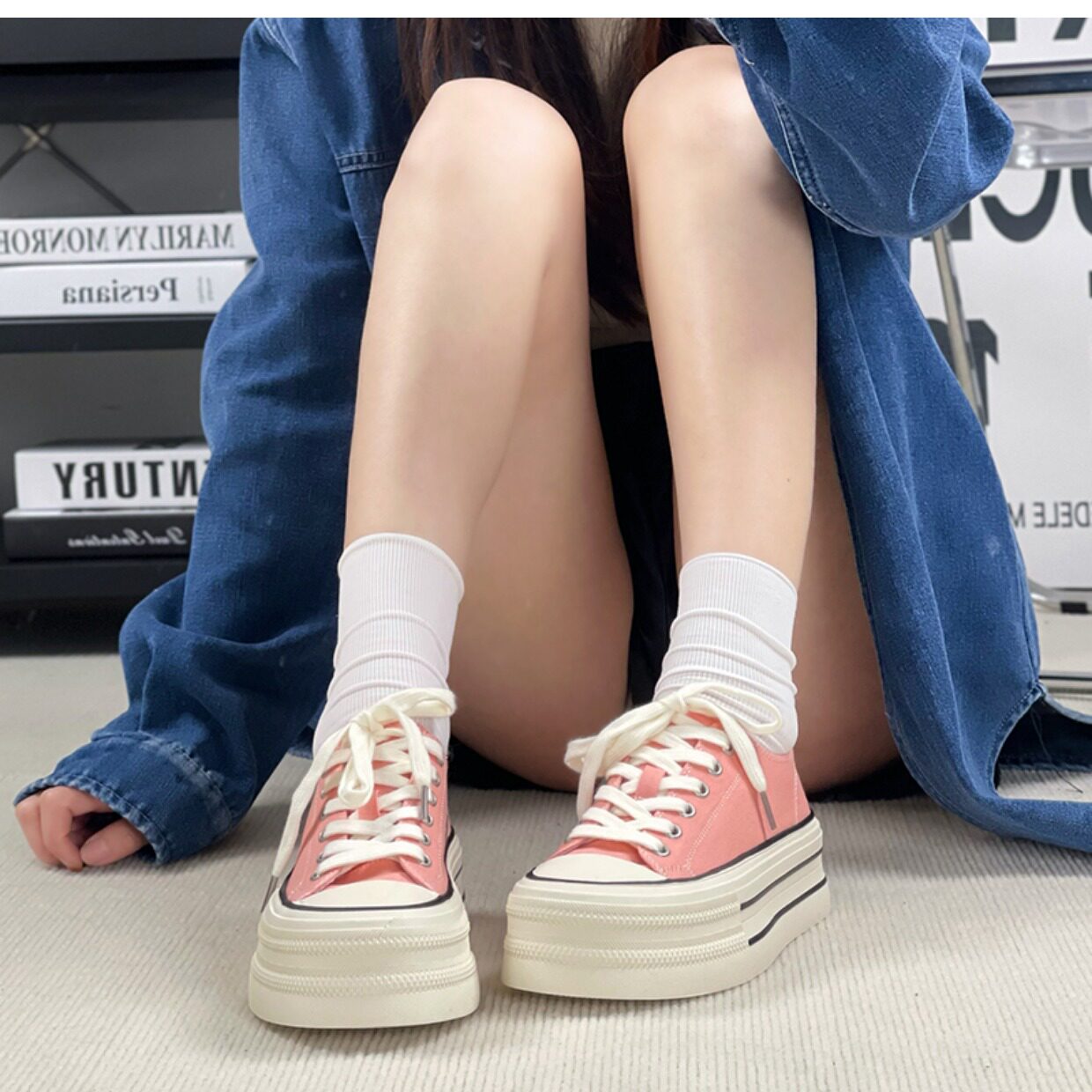 Hong Kong Low-Top Thick-Soled Height-Increasing Canvas Shoes for Women 2026 Spring New Lace-Up Platform Casual Versatile White Shoes