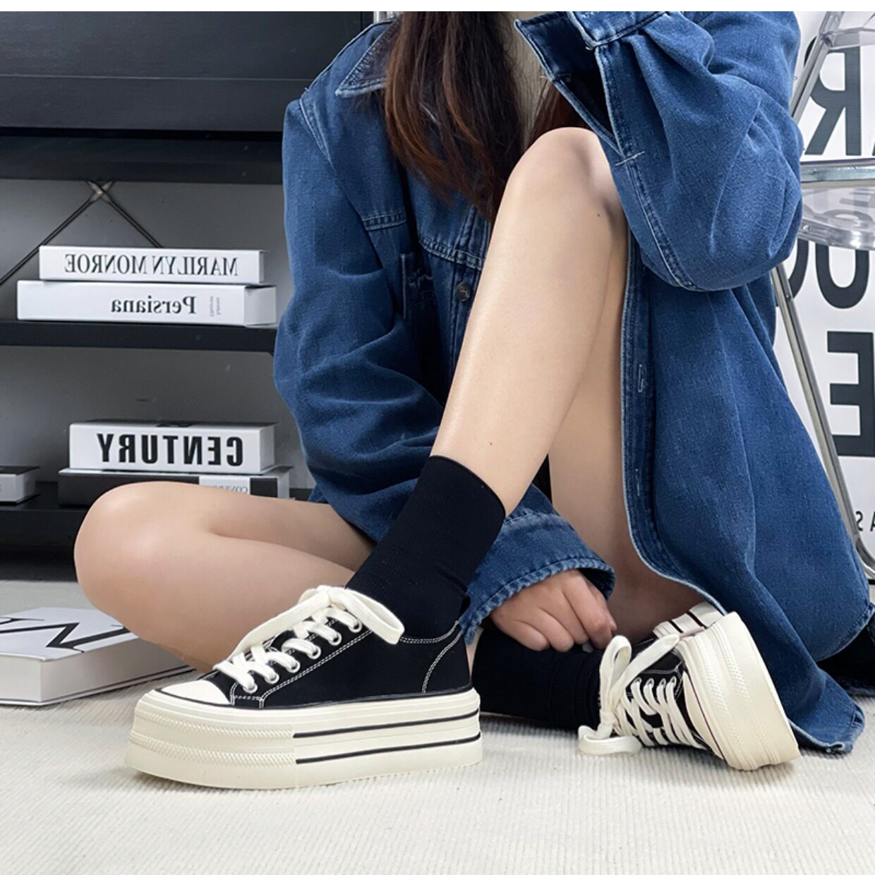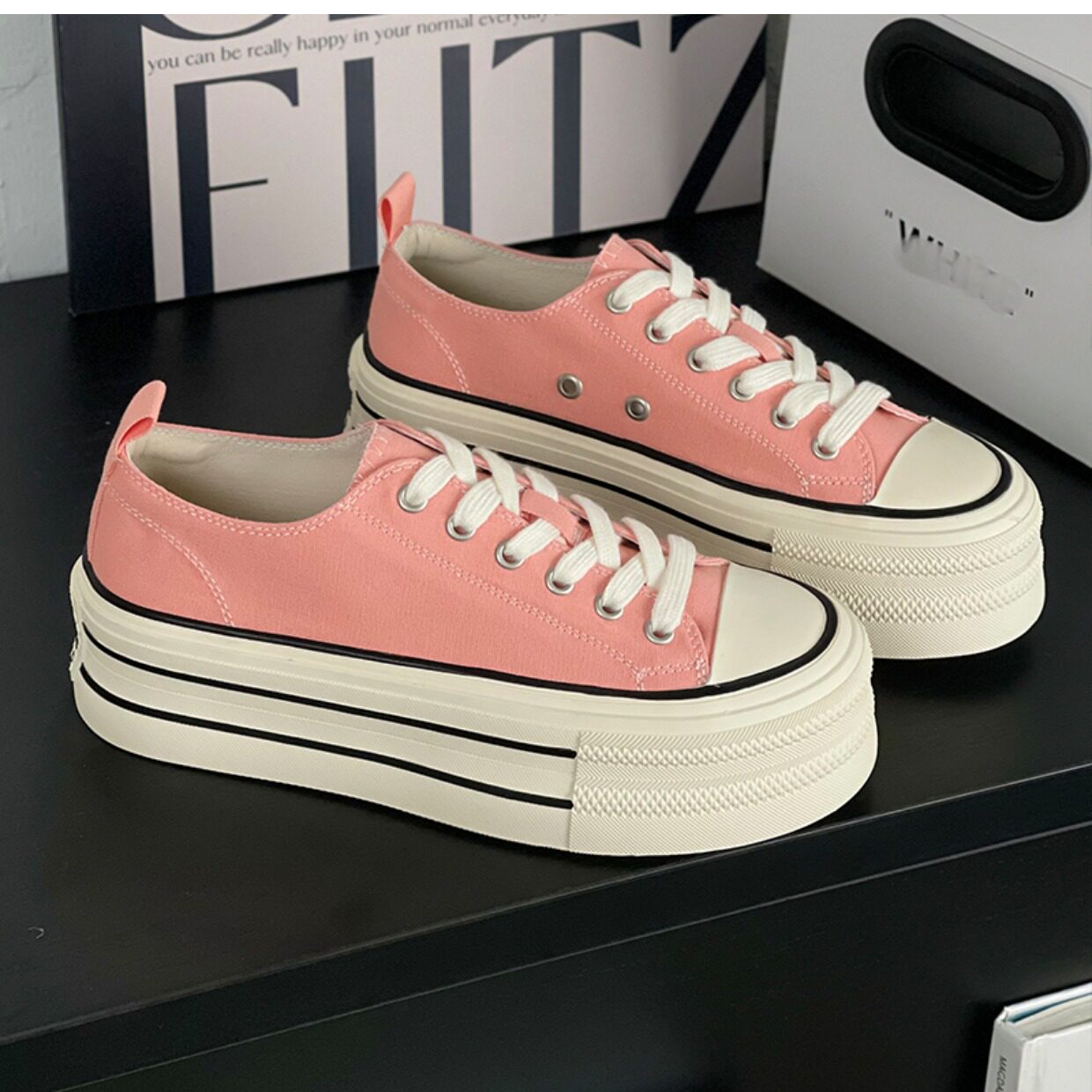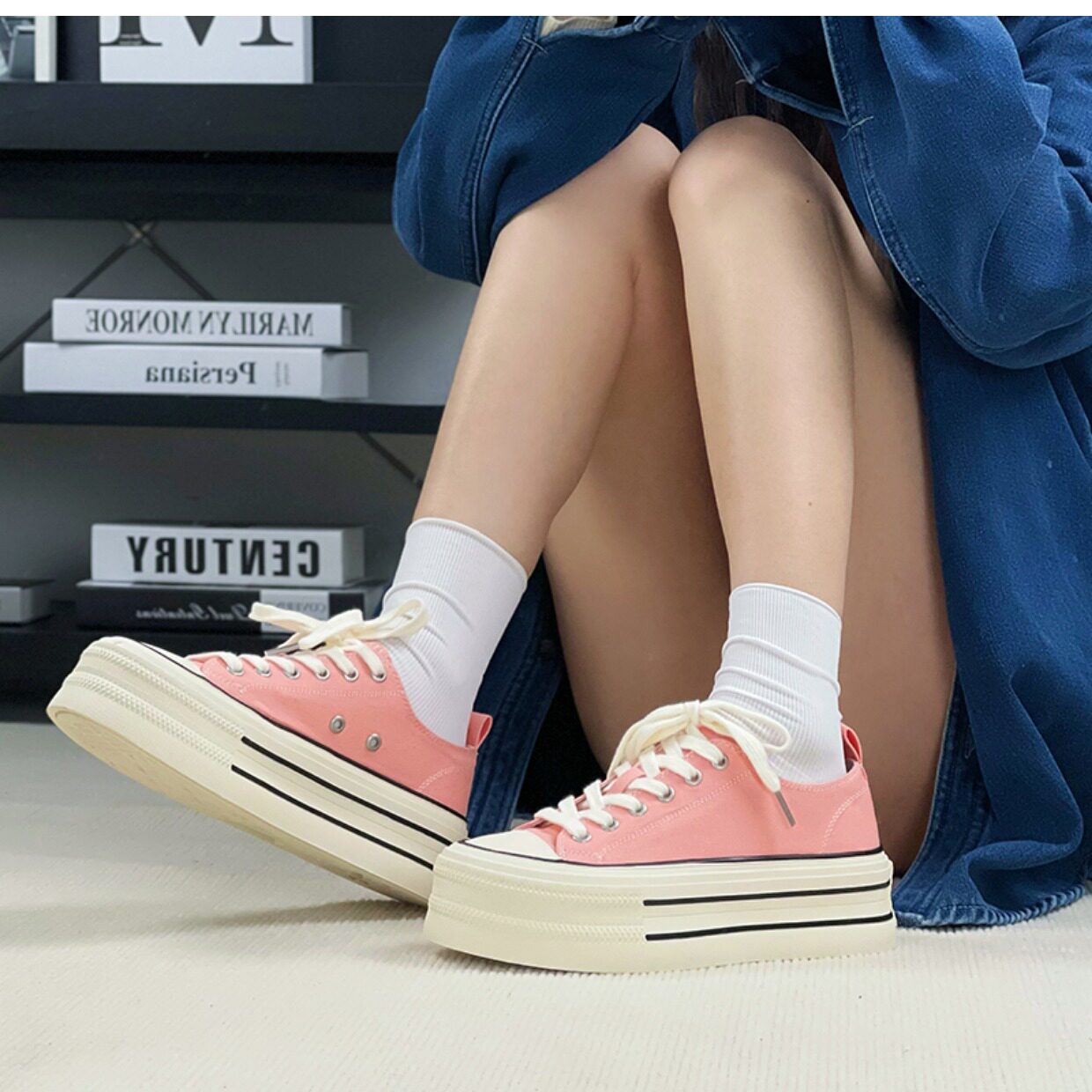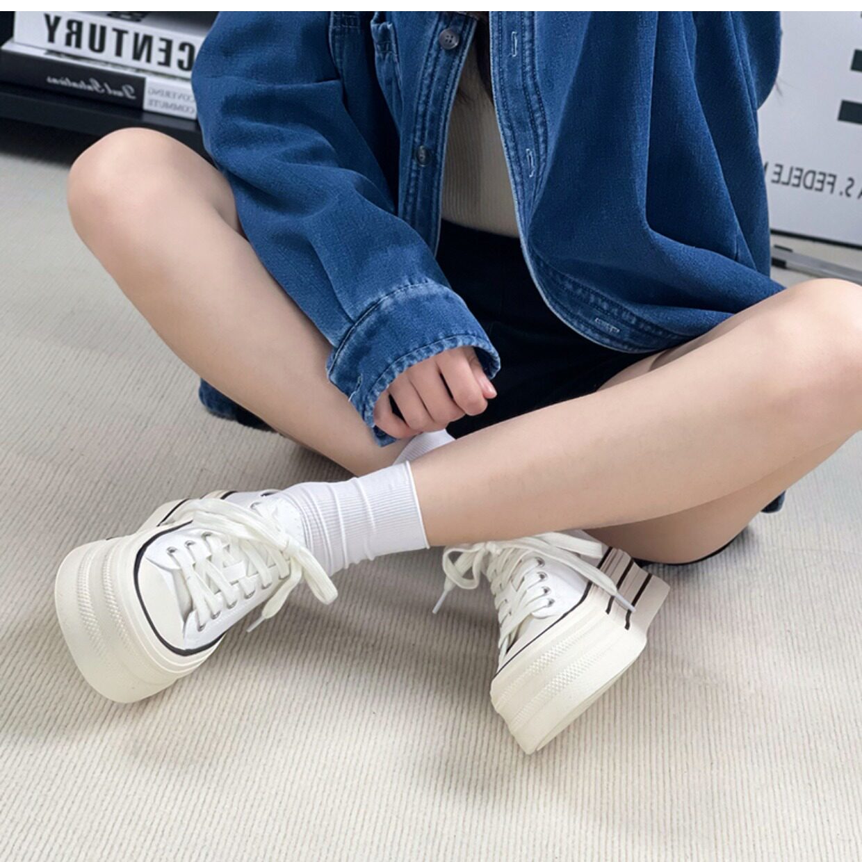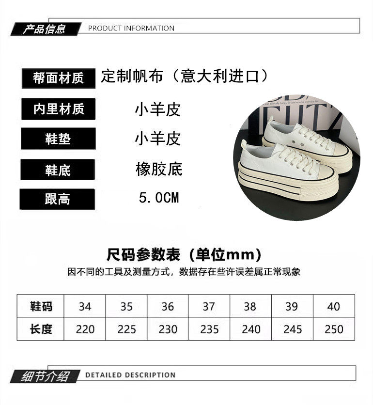 Hong Kong Low-Top Thick-Soled Height-Increasing Canvas Shoes for Women 2026 Spring New Lace-Up Platform Casual Versatile White Shoes