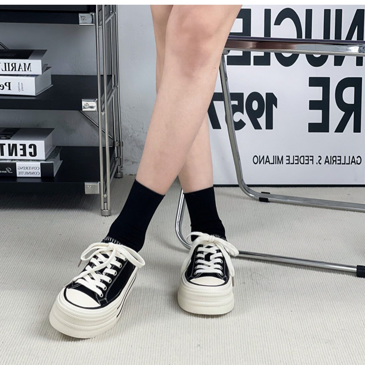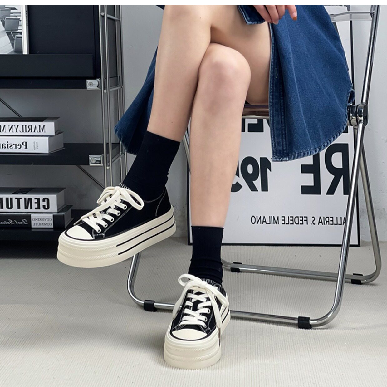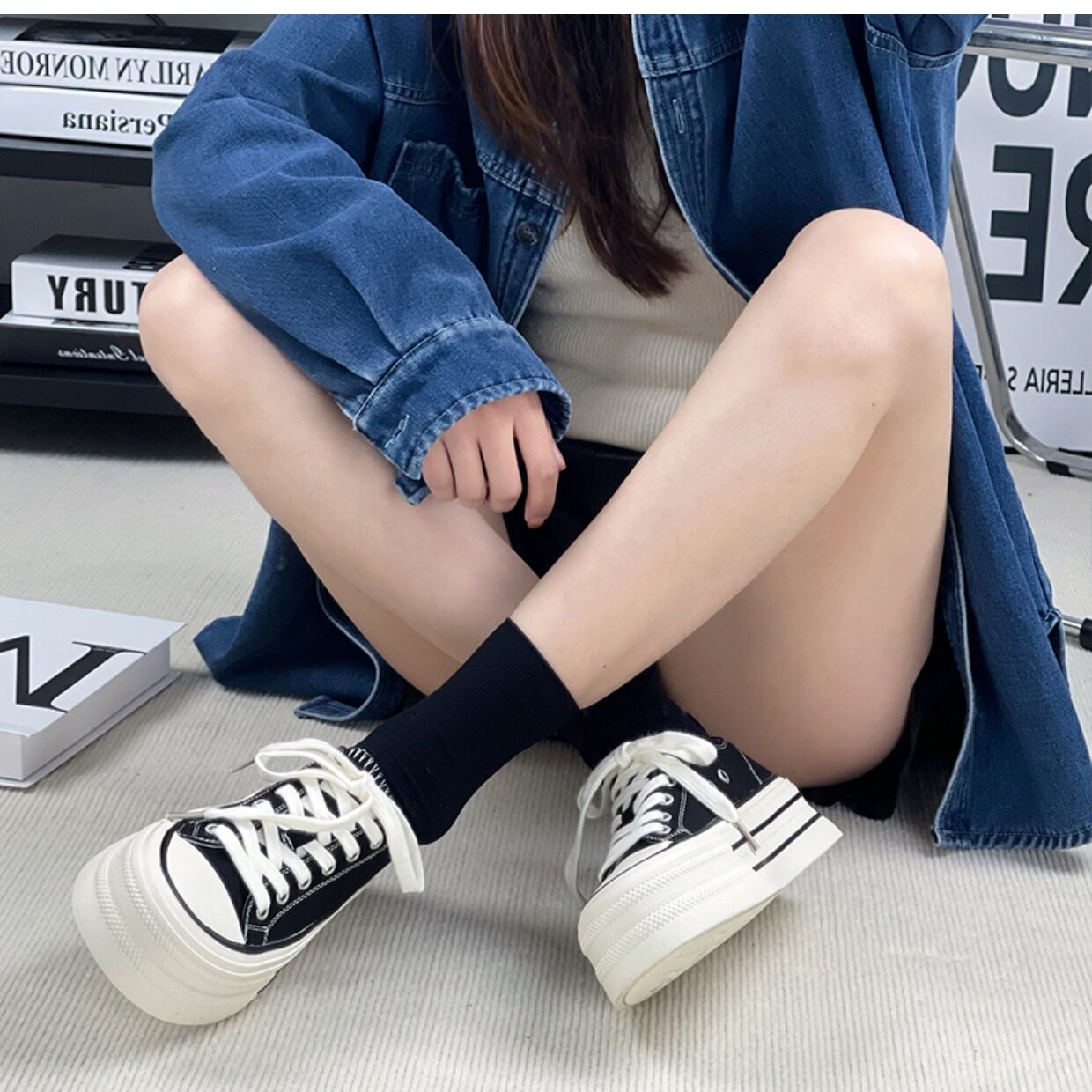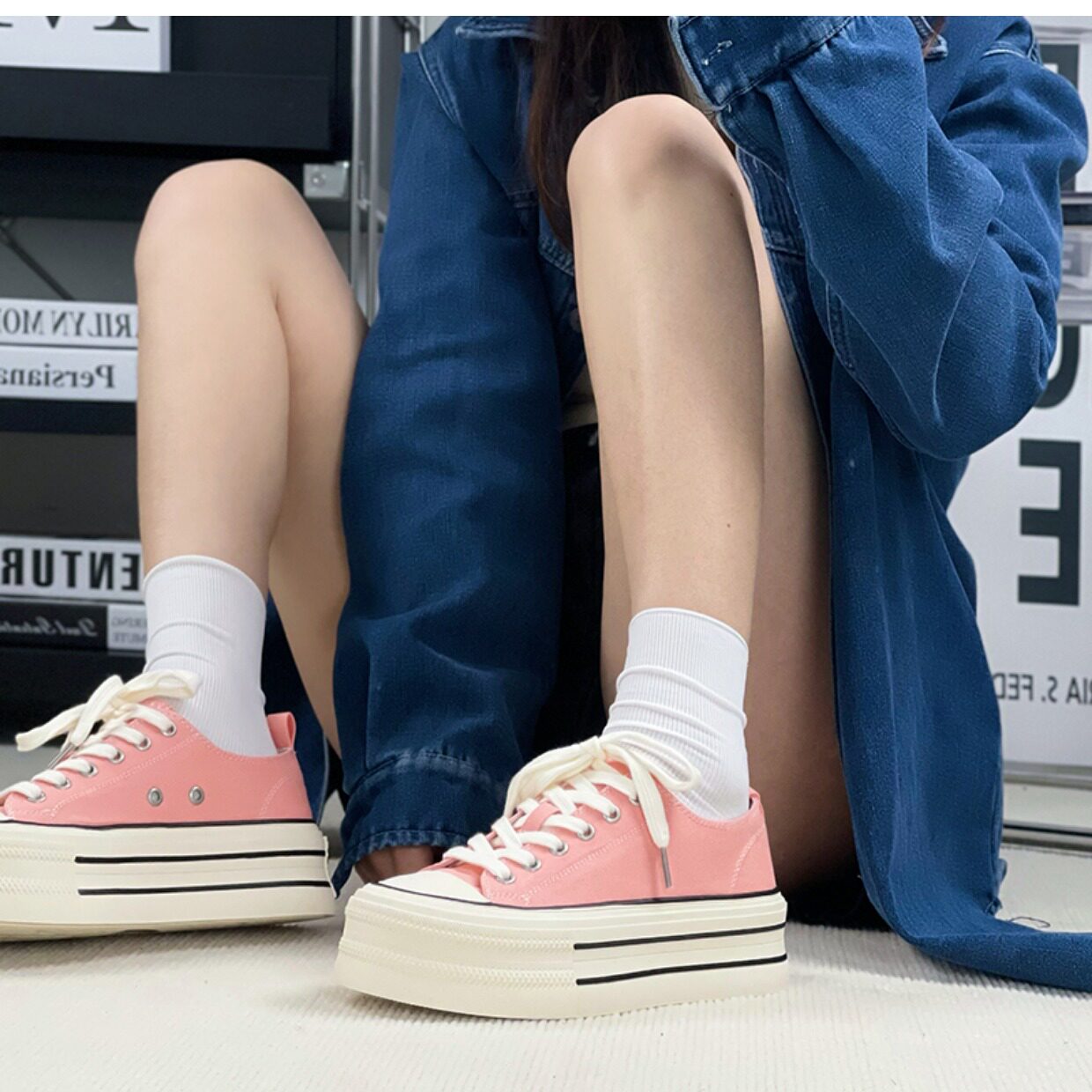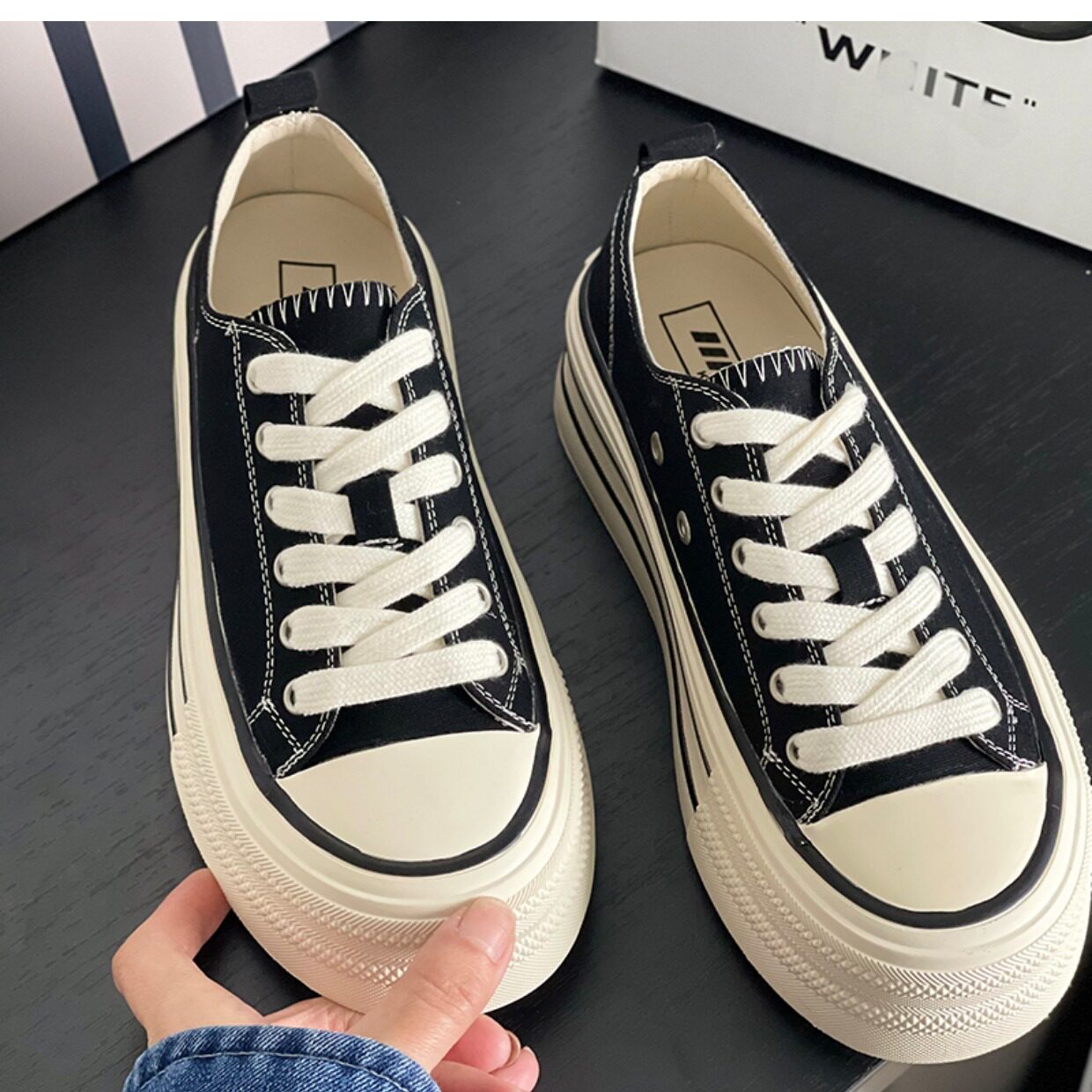 Hong Kong Low-Top Thick-Soled Height-Increasing Canvas Shoes for Women 2026 Spring New Lace-Up Platform Casual Versatile White Shoes