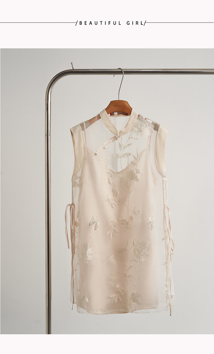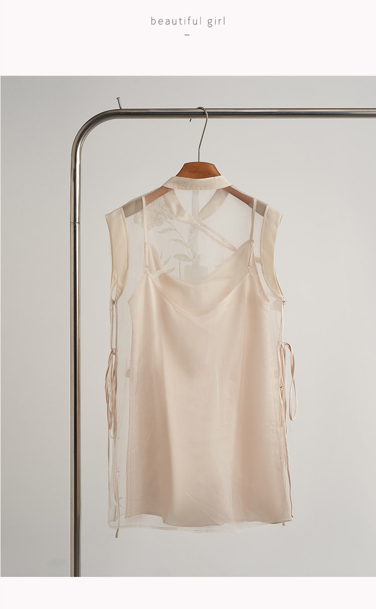 New Chinese-Style Zen Organza Vest and Suspender Dress Two-Piece Set 2025 Summer New Women's Clothing