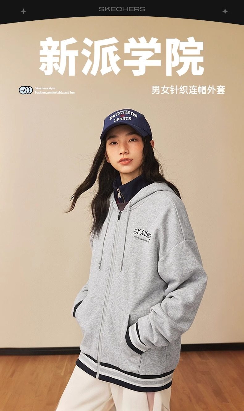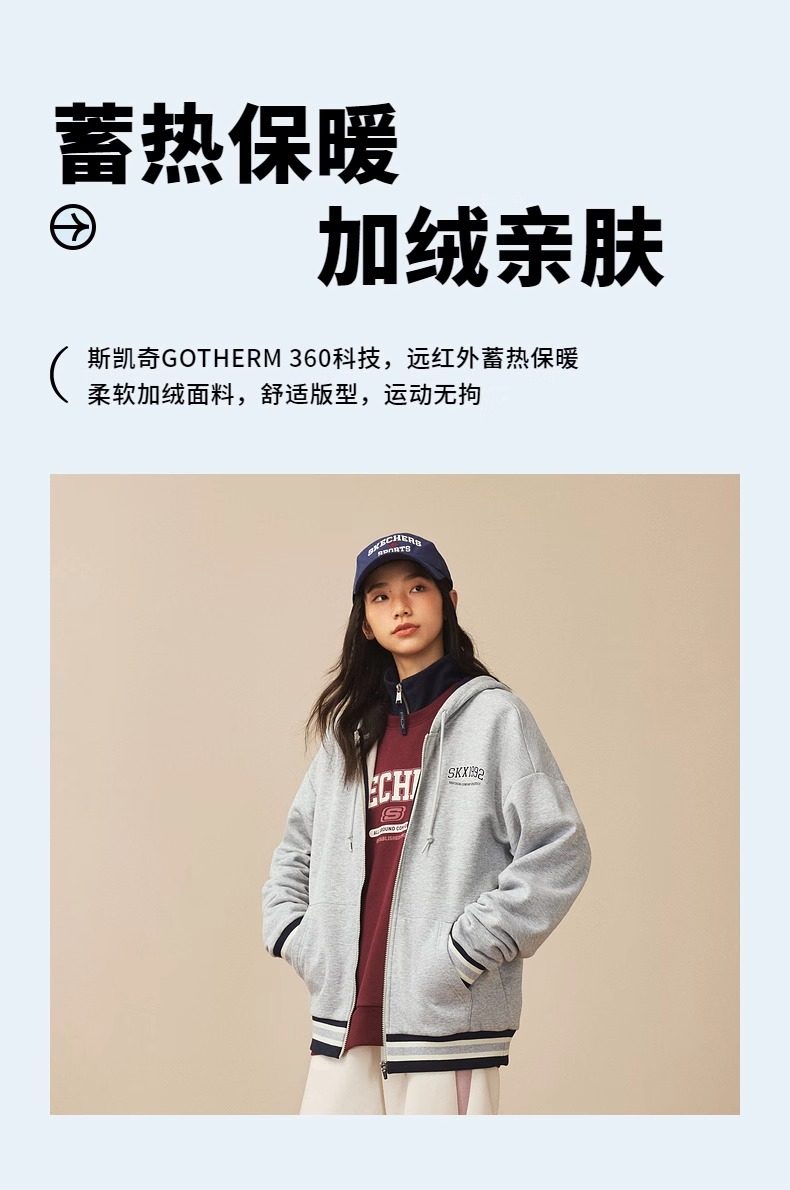 Skechers Men's and Women's Sports Jackets with Hooded Zipper, Thermal Insulation, Fleece-Lined, Skin-Friendly and Comfortable P424U029