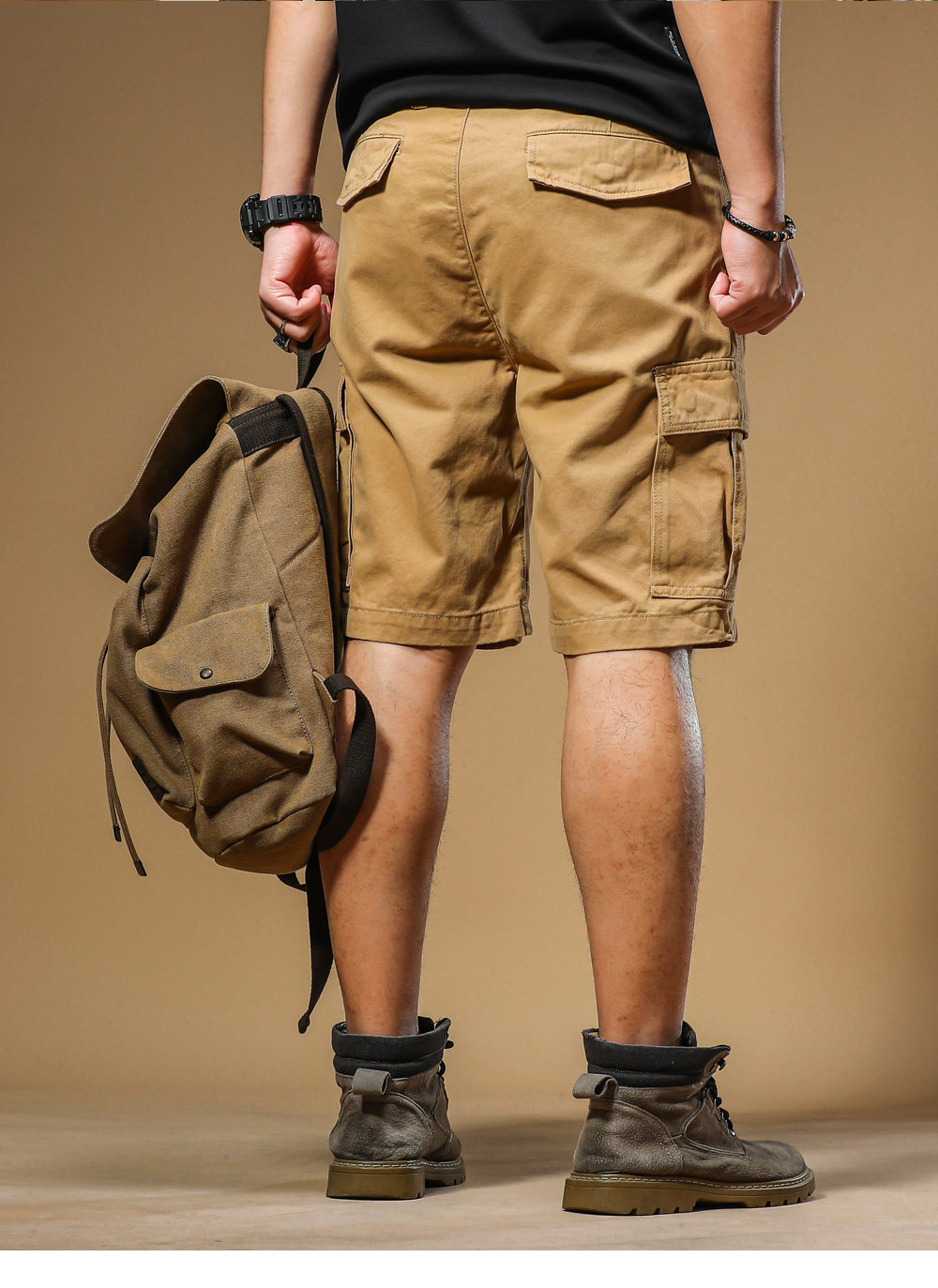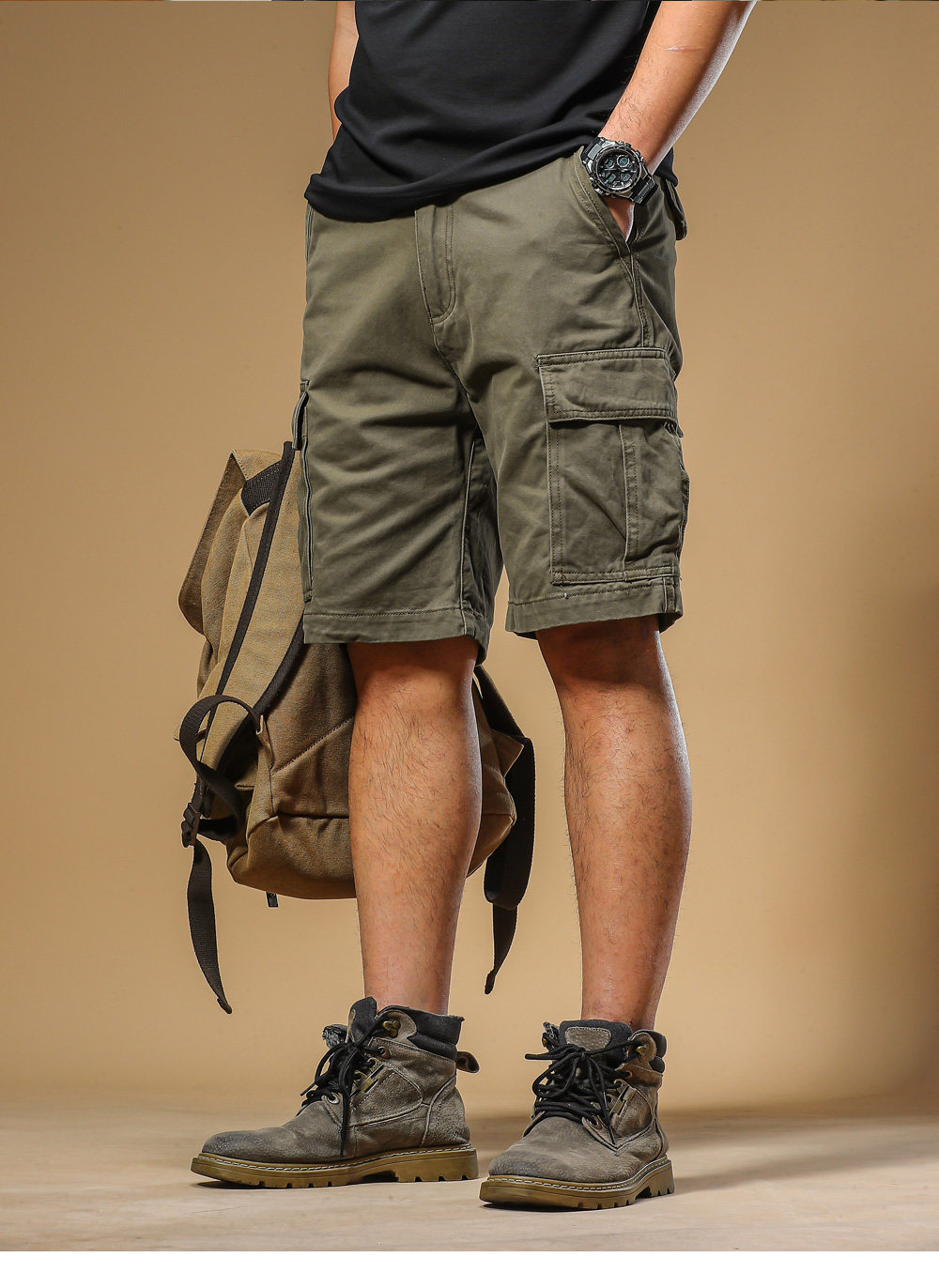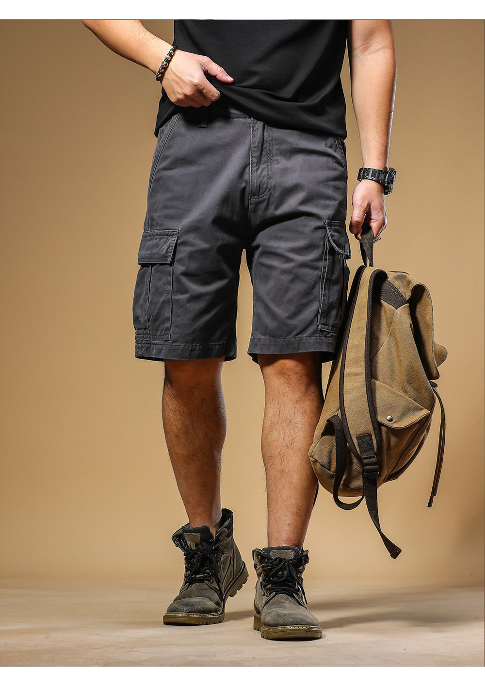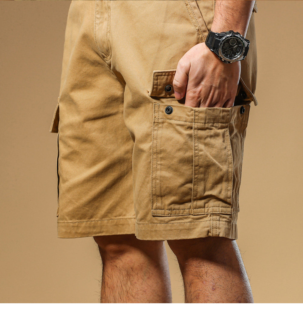 Jiyan American-Style Heavy-Duty Vintage Work Shorts for Men, High-End, Cool and Stylish, Summer Pure Cotton Multi-Pocket Five-Point Shorts, Casual and Trendy