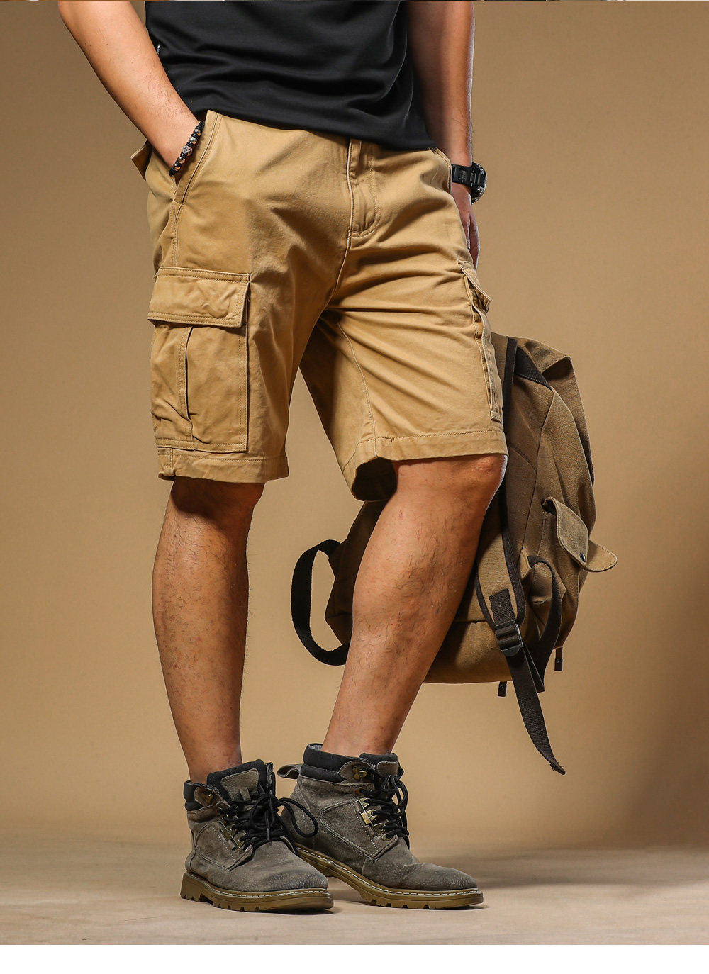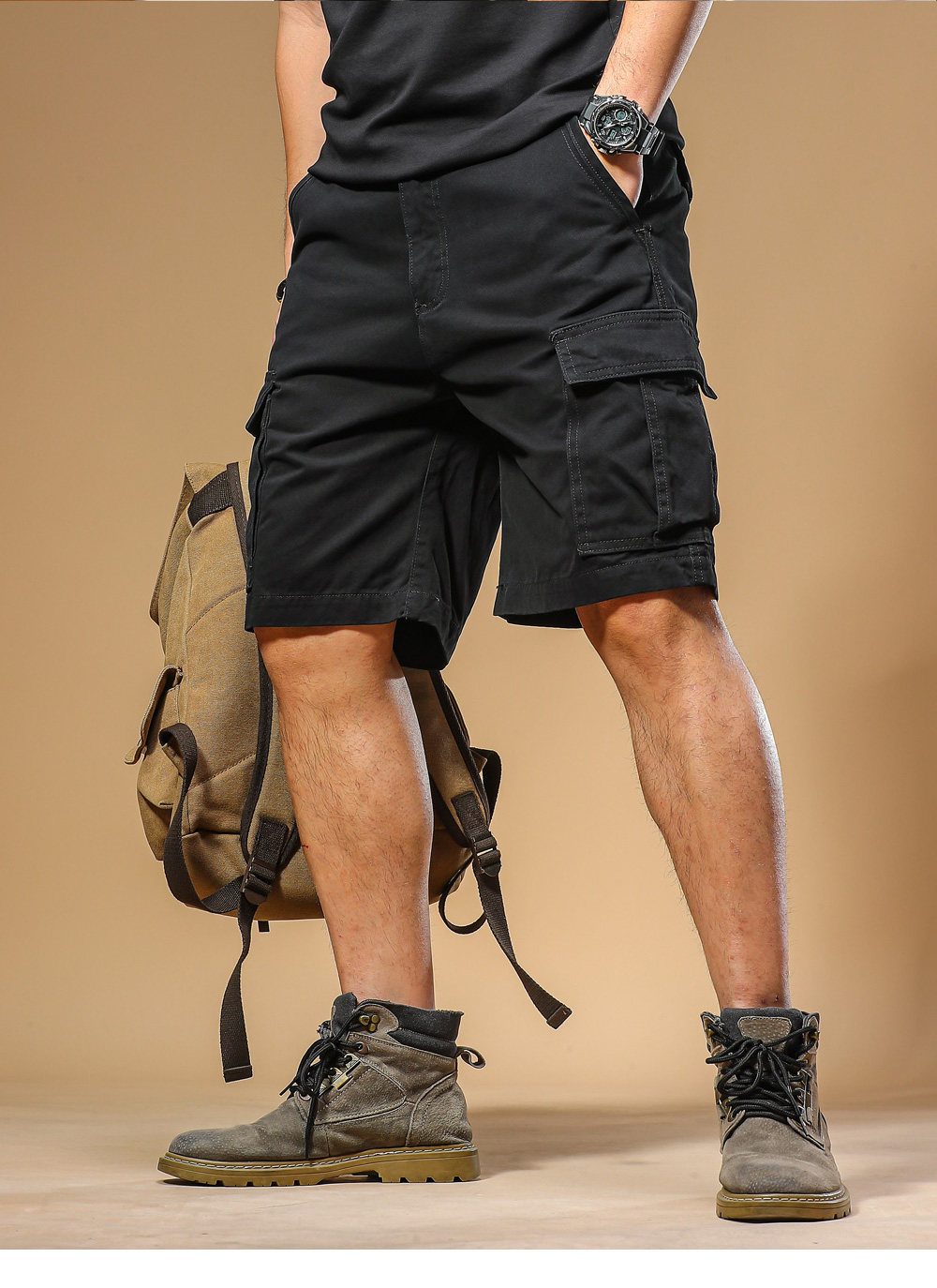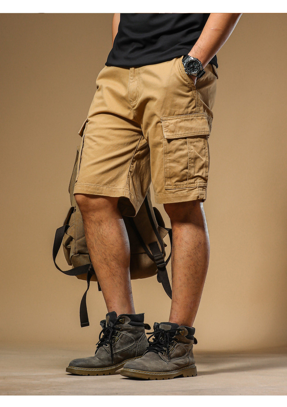 Jiyan American-Style Heavy-Duty Vintage Work Shorts for Men, High-End, Cool and Stylish, Summer Pure Cotton Multi-Pocket Five-Point Shorts, Casual and Trendy