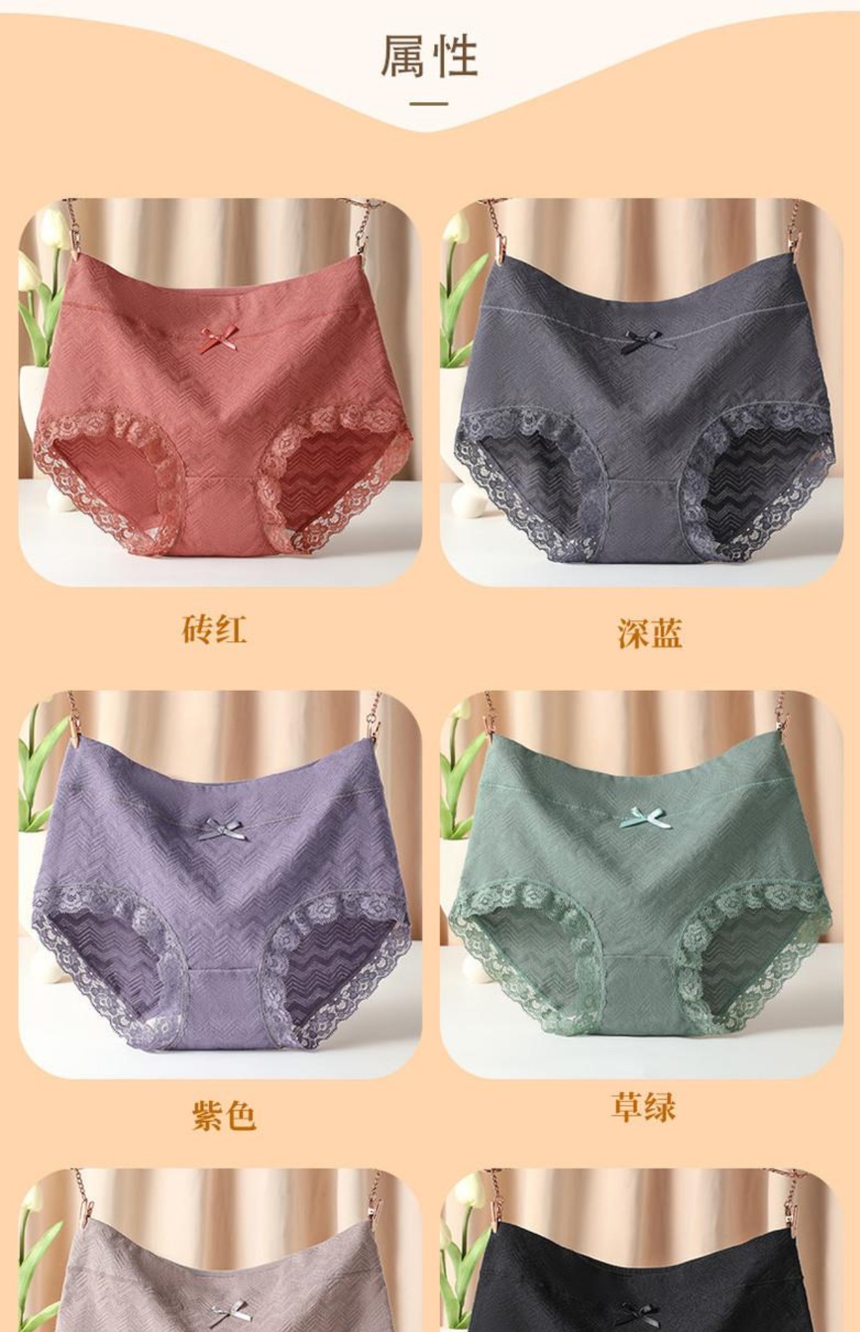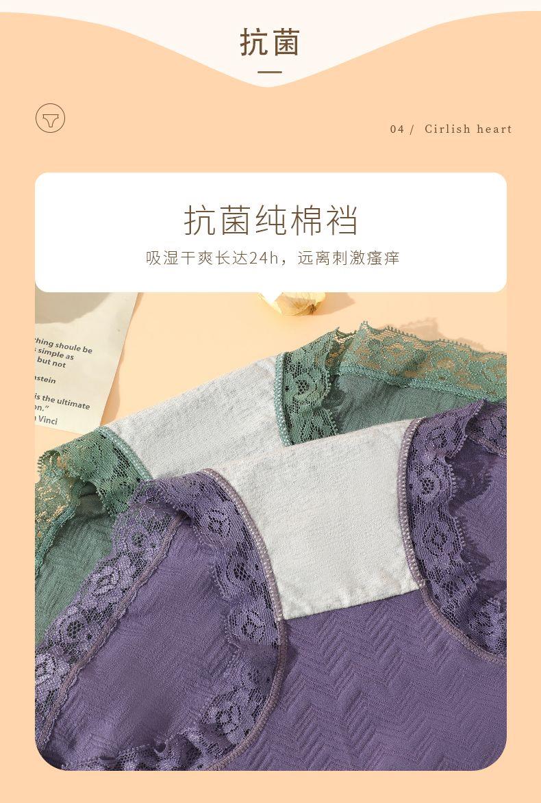6 Pairs of Pure Cotton Tummy Control Underwear for Women, 100% Cotton, Antibacterial Crotch, Seamless, Butt-Lifting, Sexy Lace Women's Briefs