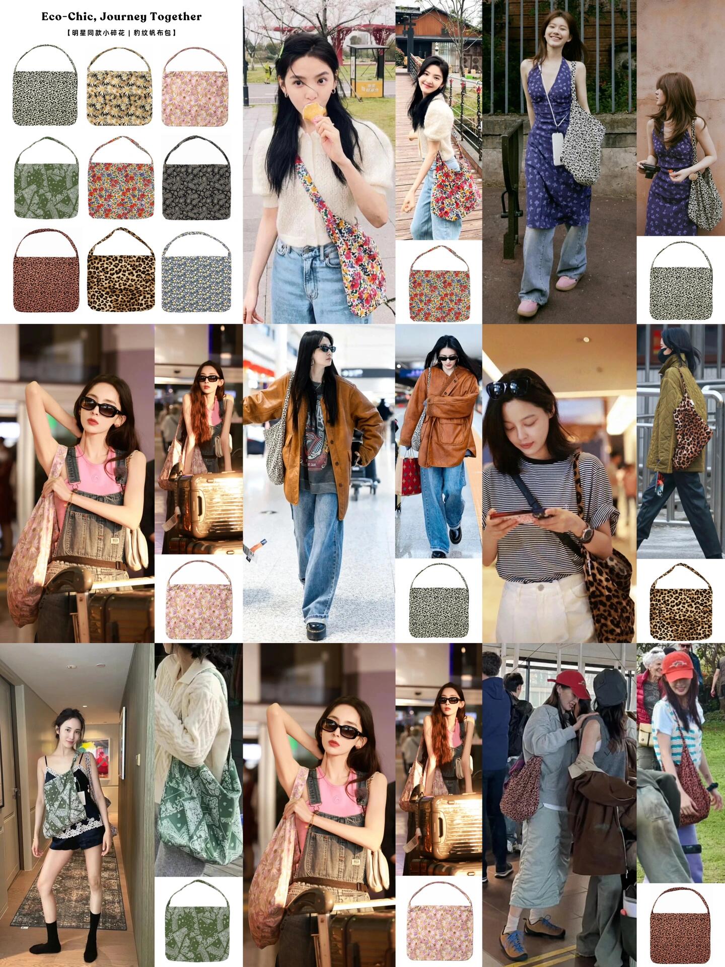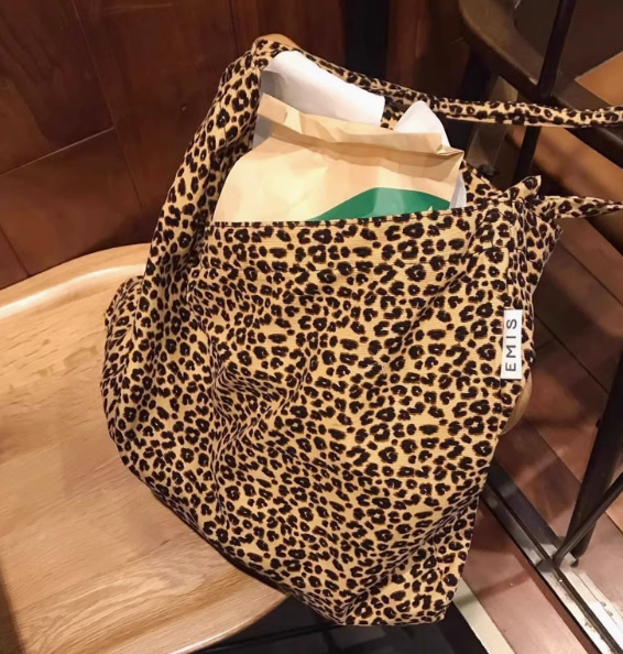 Korean Emis Zhao Lusi Celebrity Style Large Leopard Print Single Shoulder Canvas Bag for Women, Crossbody Shopping Bag for Moms