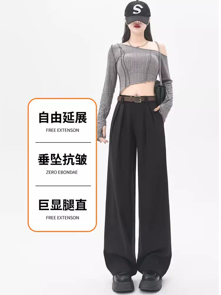 High-End Gray Suit Pants for Women, New Straight-Leg Pants, Plus Size, Slimming, Loose, Drapey, Narrow Wide-Leg Pants