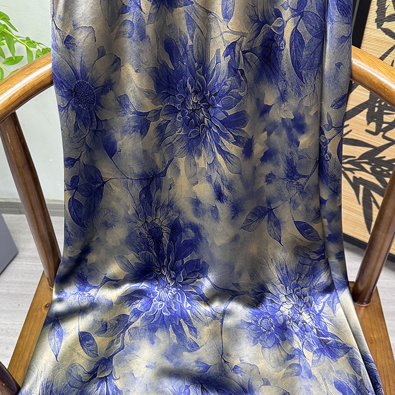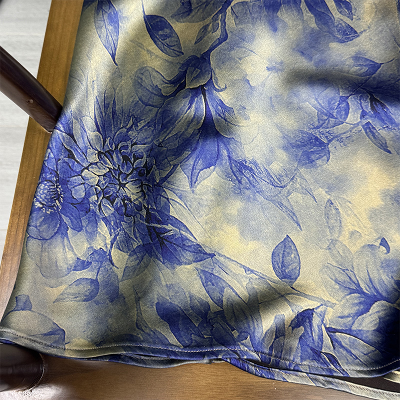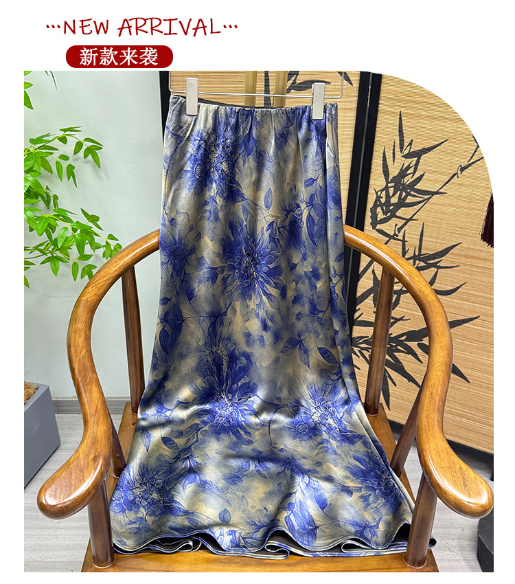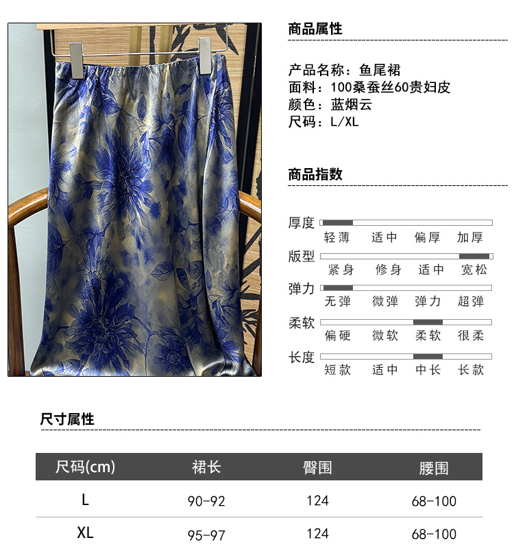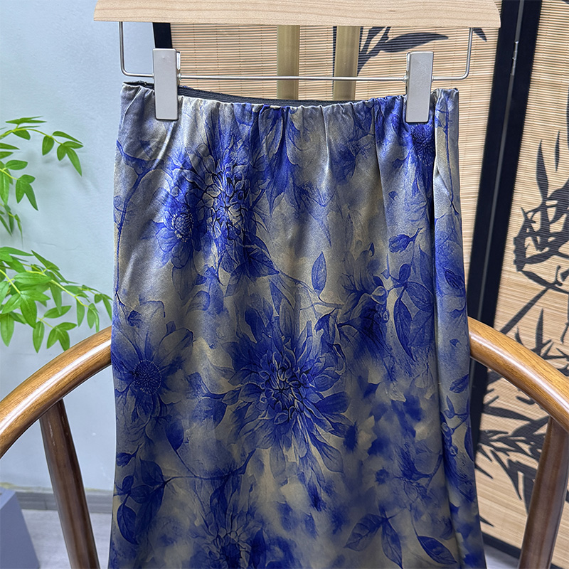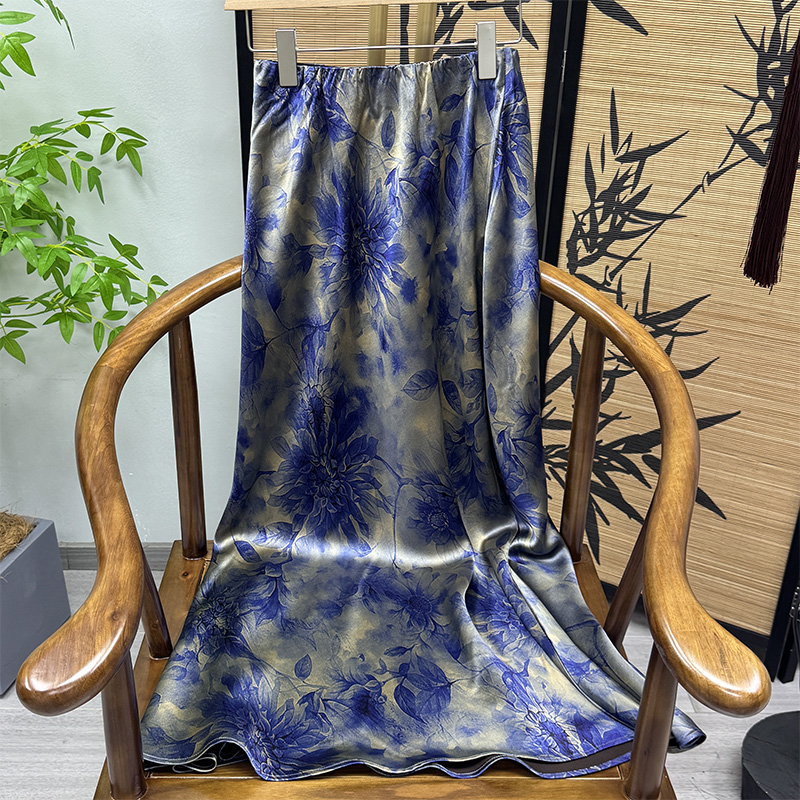 Pre-New Model 100 Mulberry Silk 60 Lady Leather Fragrant Cloud Yarn Blue Smoke Cloud Bias Cut Skirt Fishtail Skirt