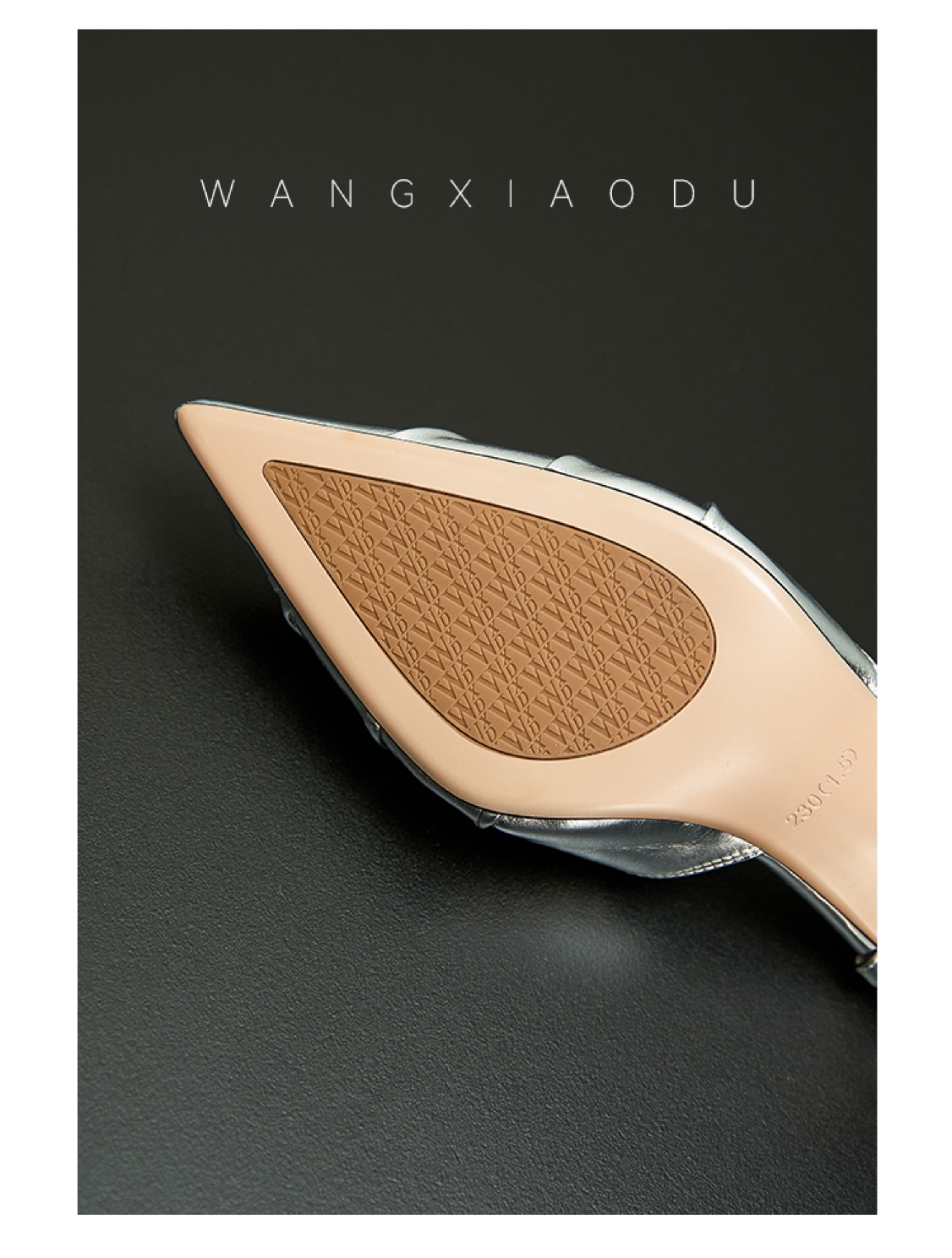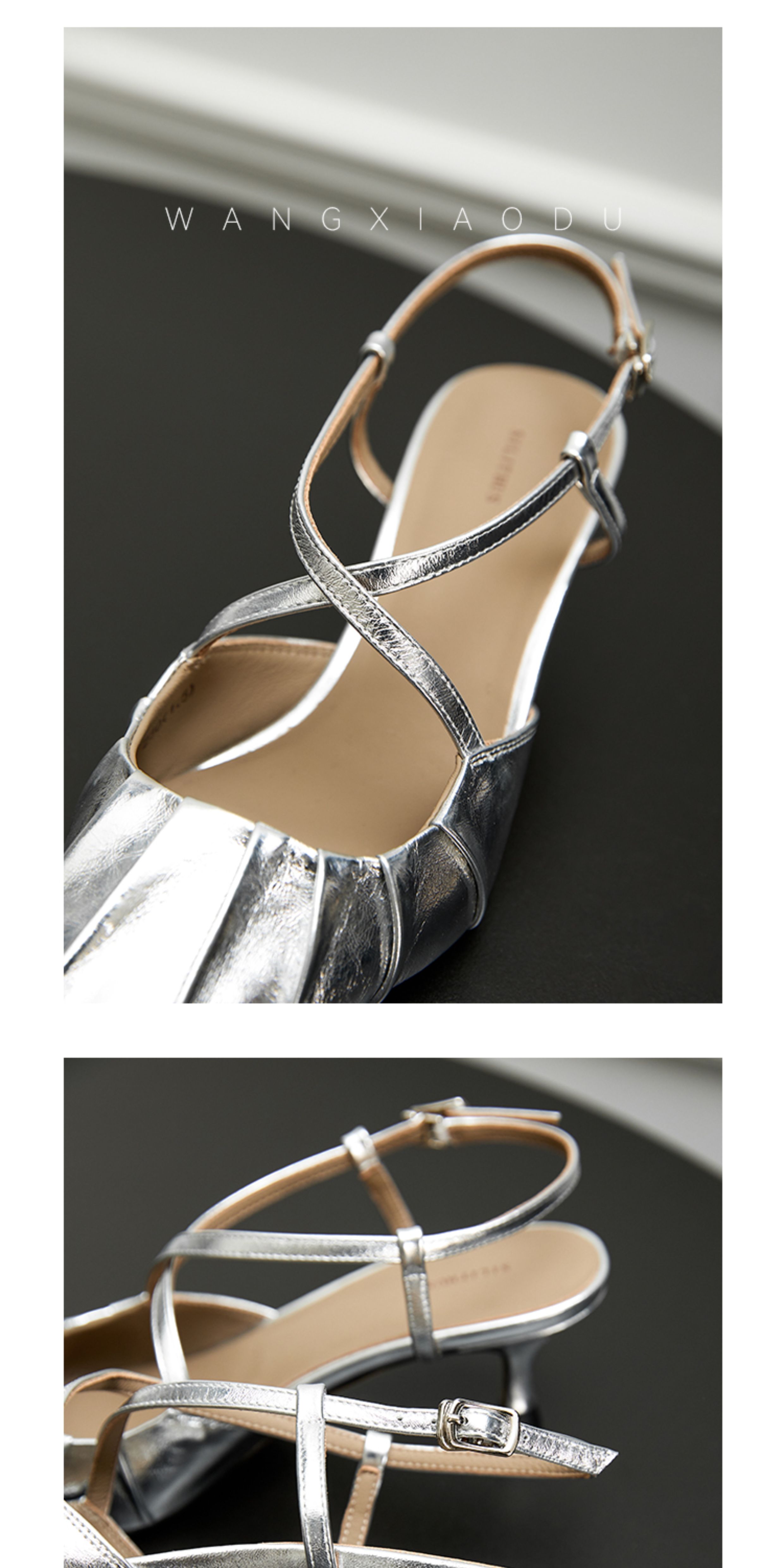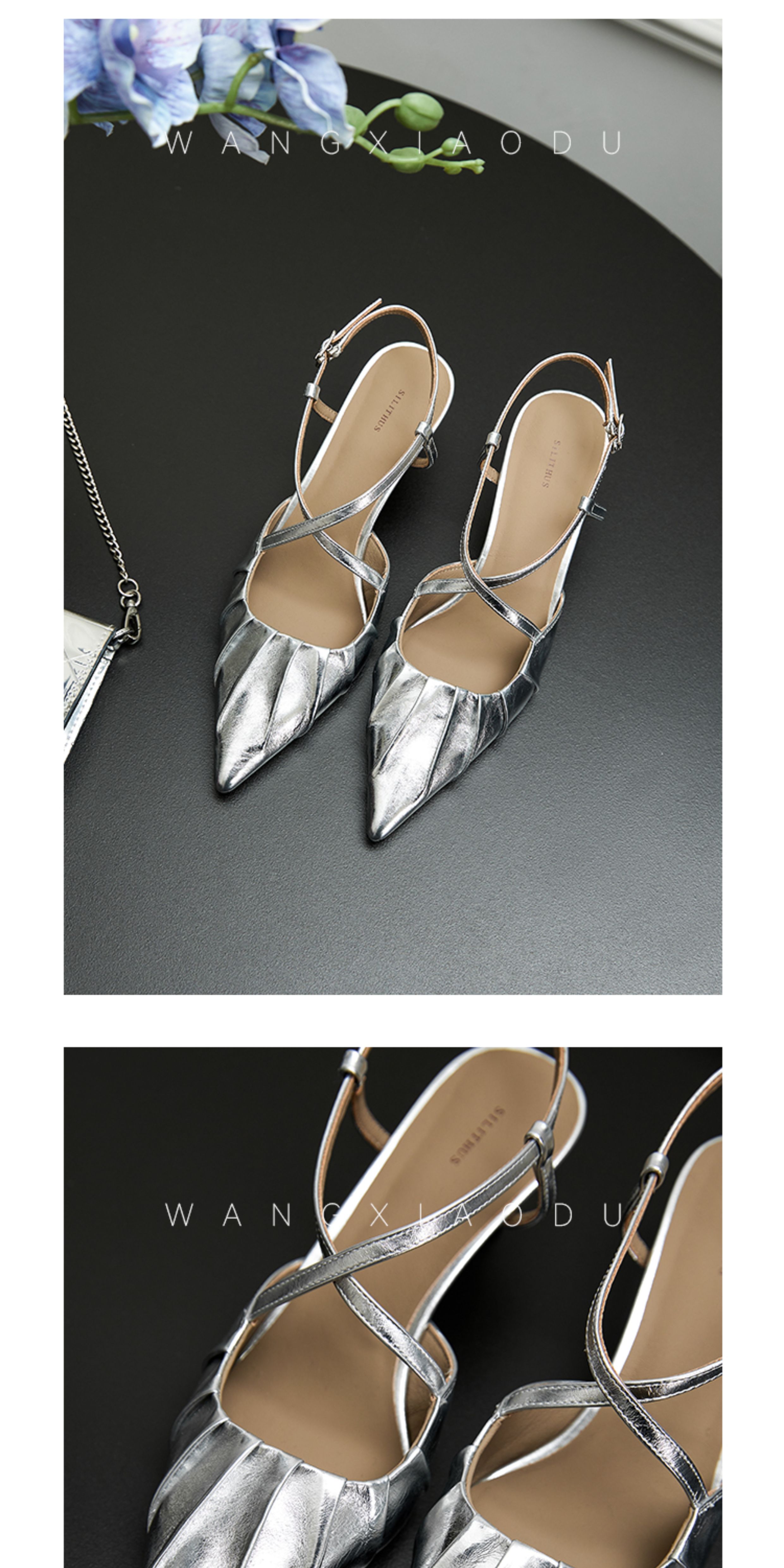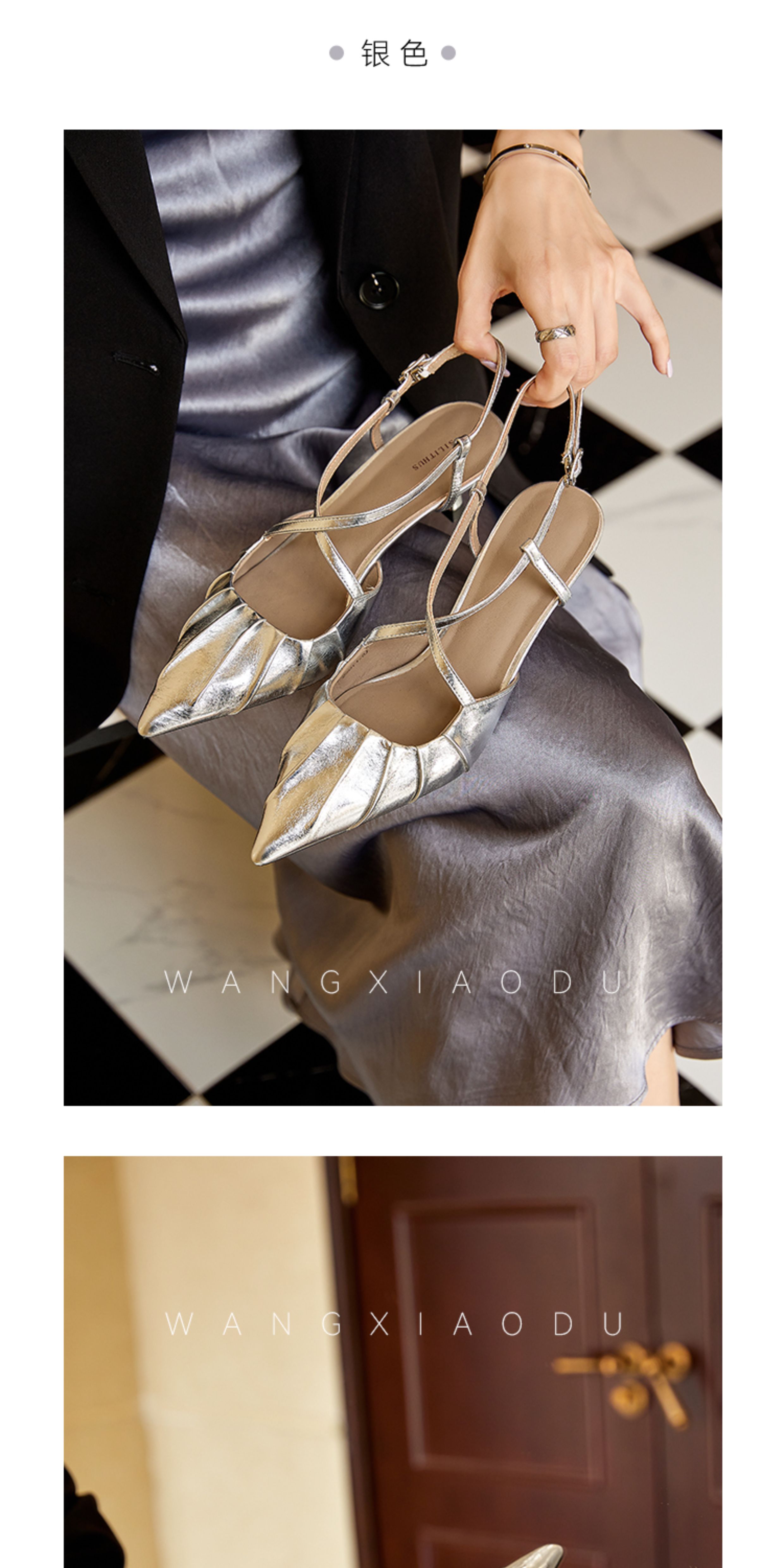 【Wang Xiaodu】Fenghua (Or: Elegance) ○ High-Quality ~ Cross-Strap Pointed Toe Backless Sandals for Women, Summer Genuine Leather Pleated High Heels