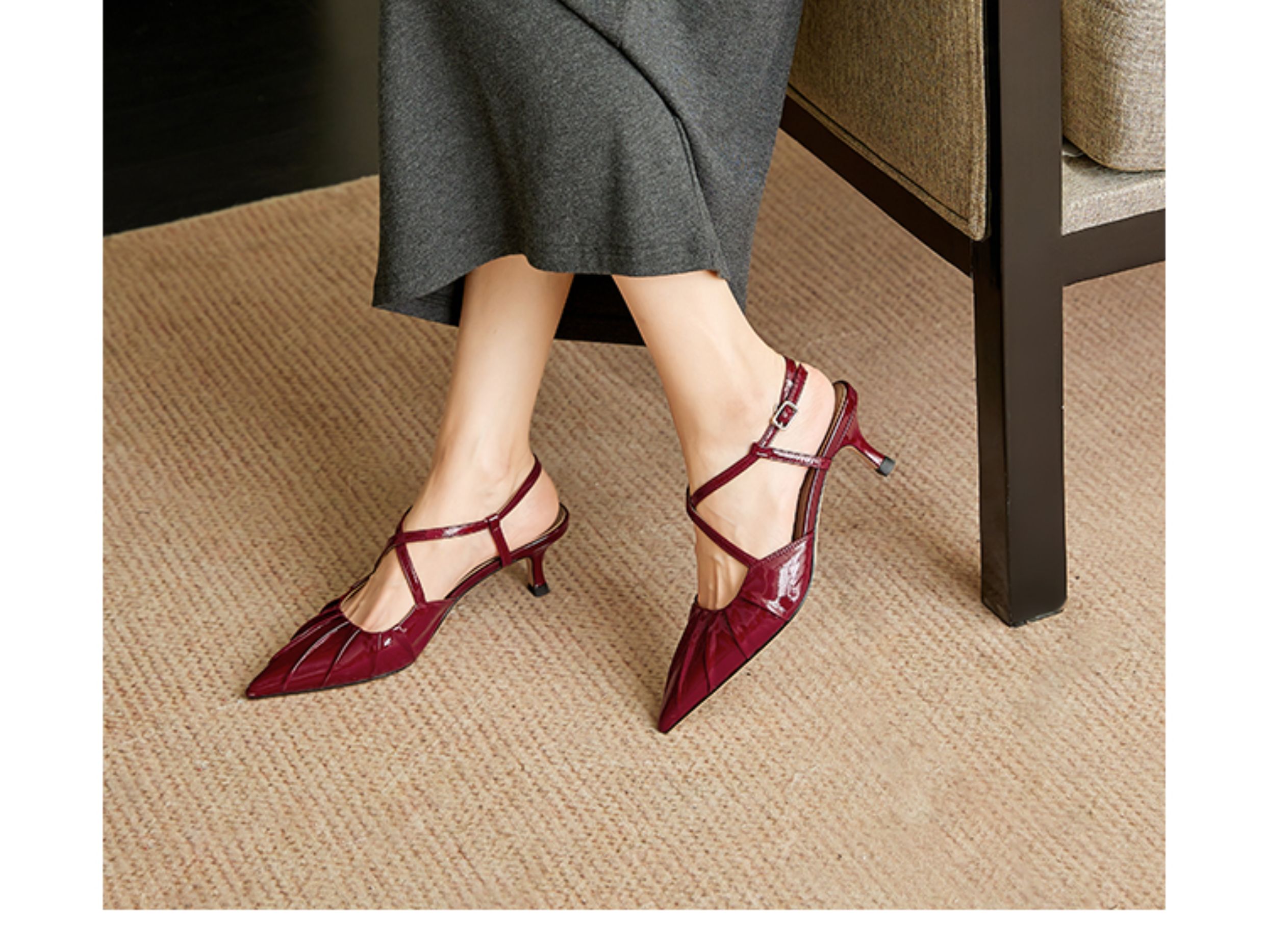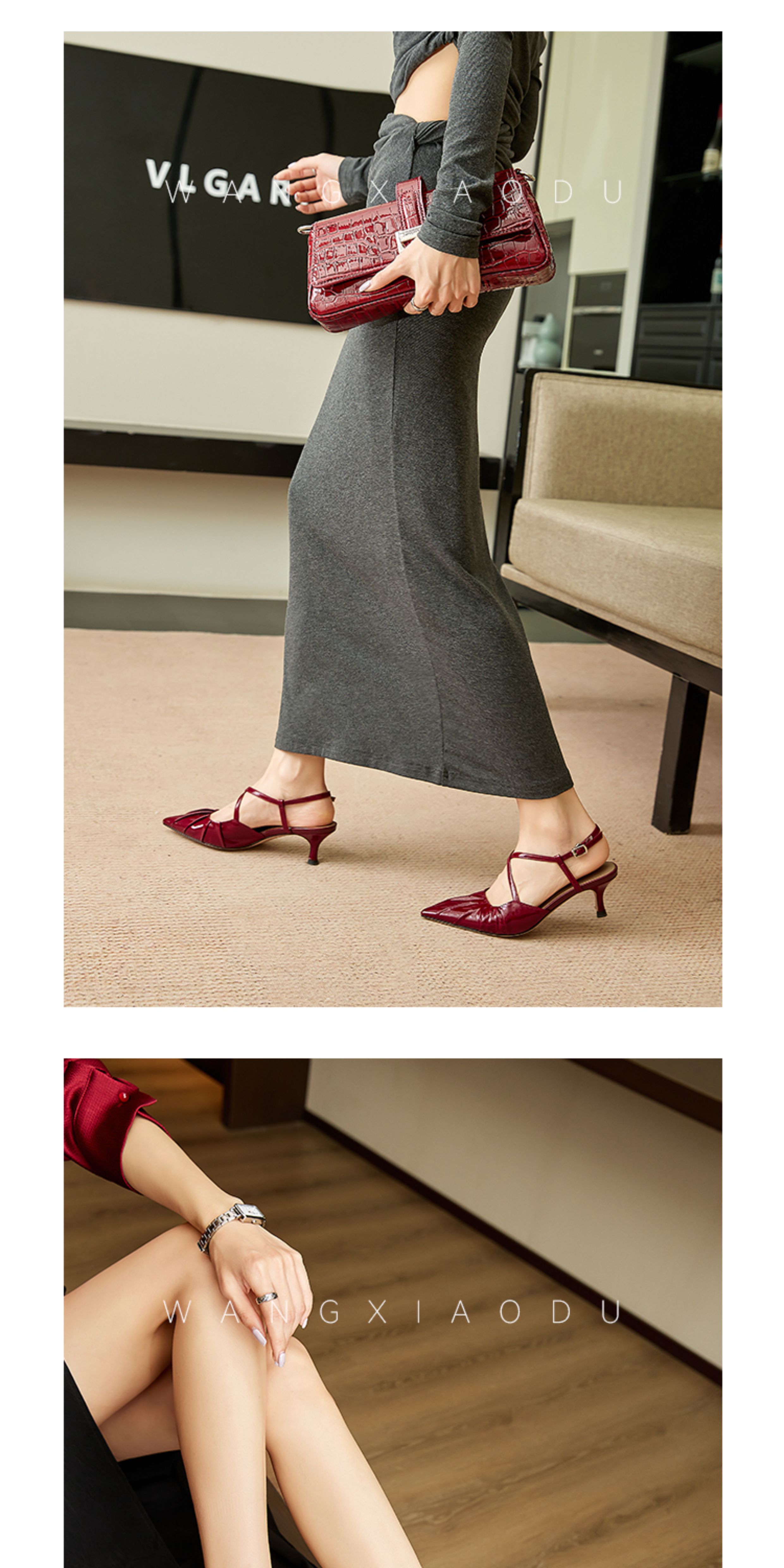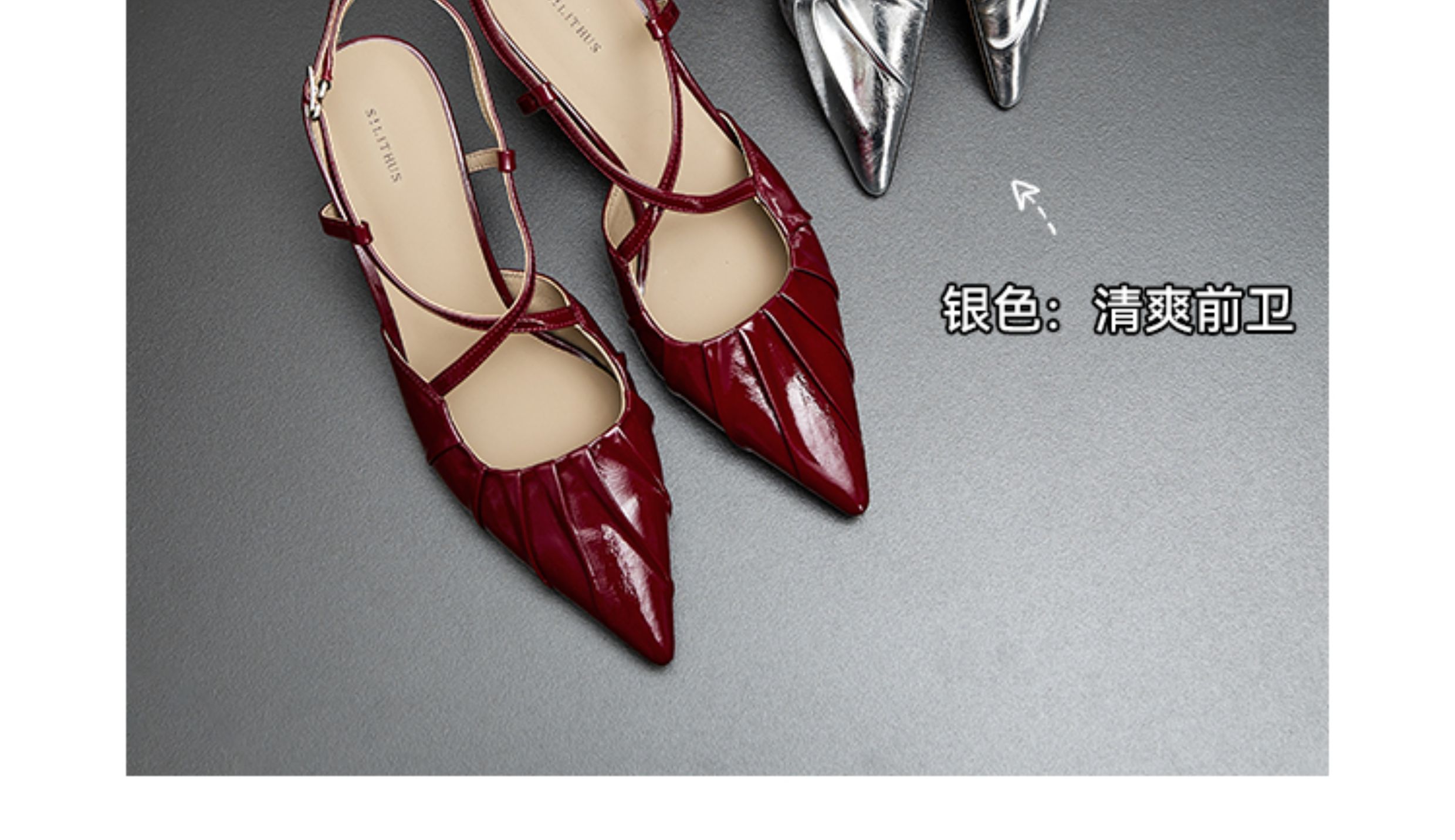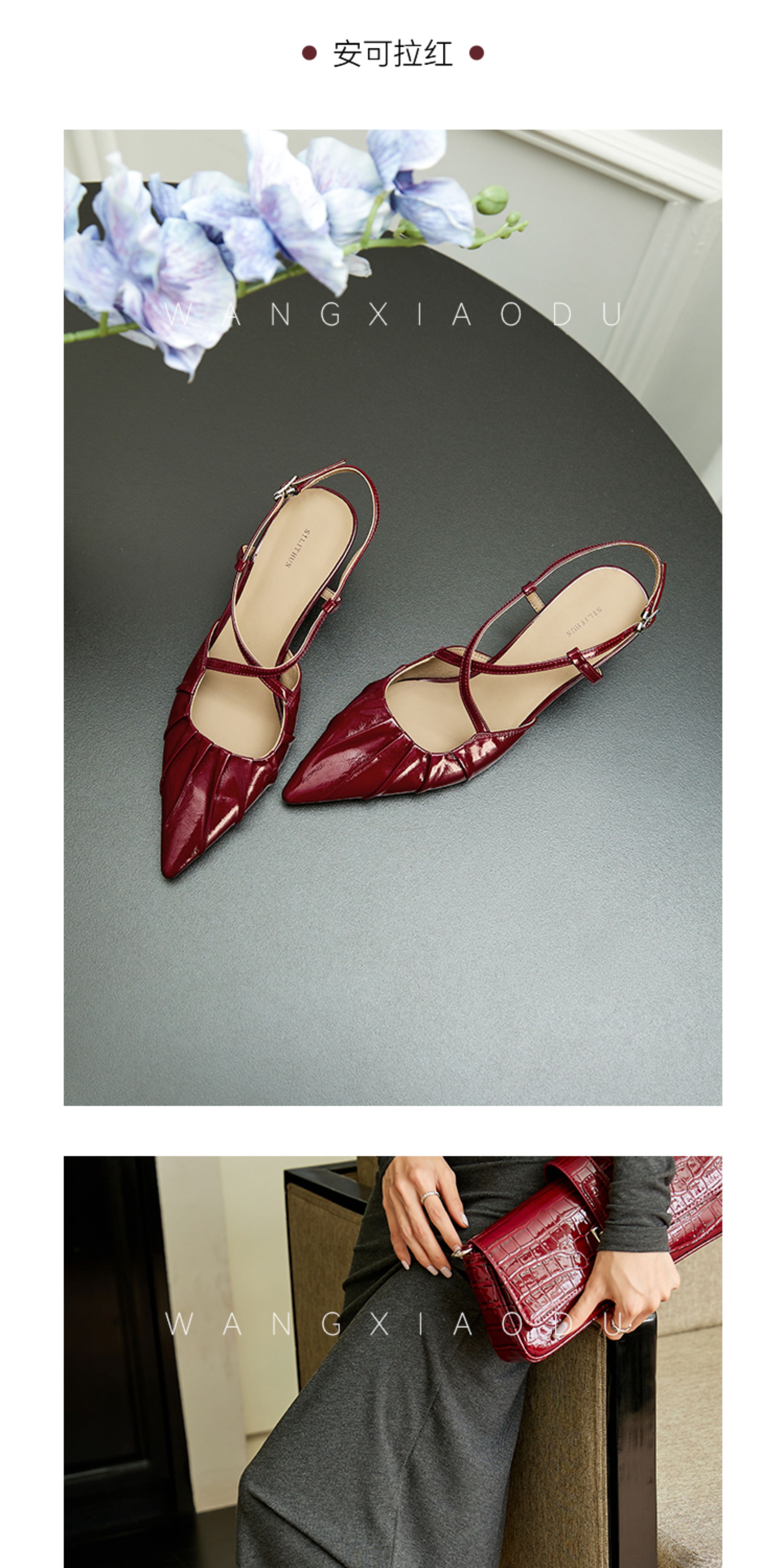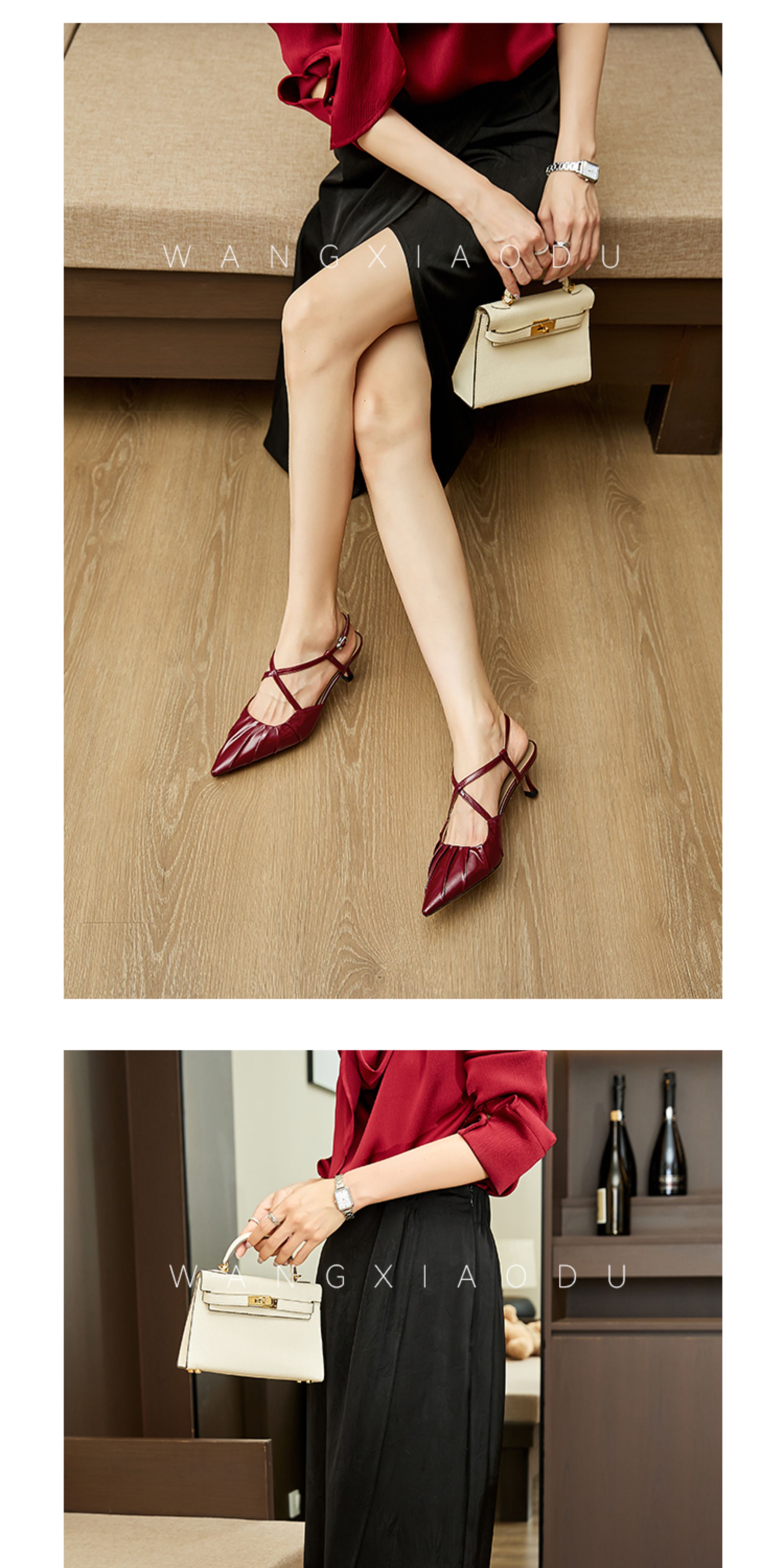 【Wang Xiaodu】Fenghua (Or: Elegance) ○ High-Quality ~ Cross-Strap Pointed Toe Backless Sandals for Women, Summer Genuine Leather Pleated High Heels