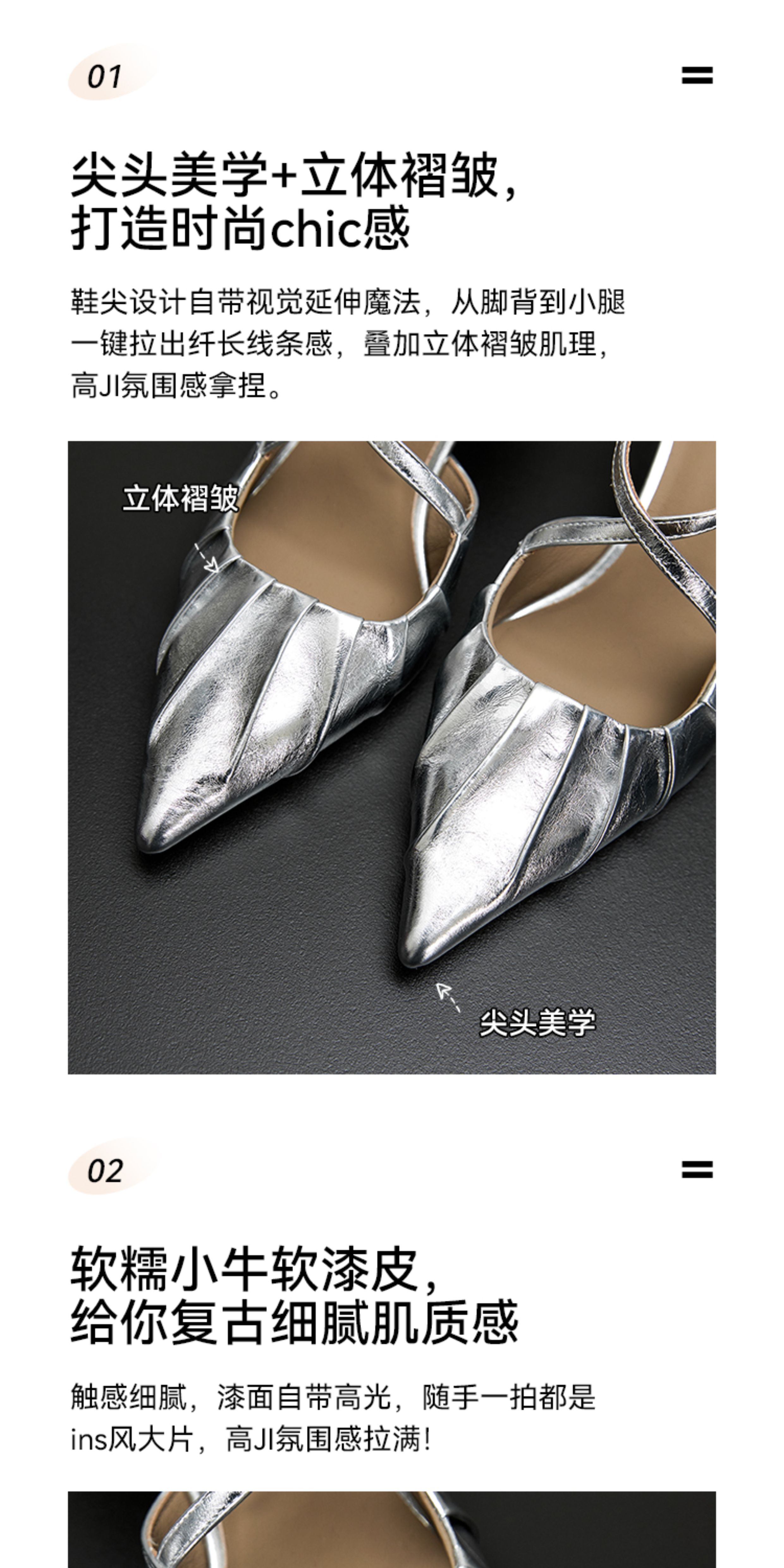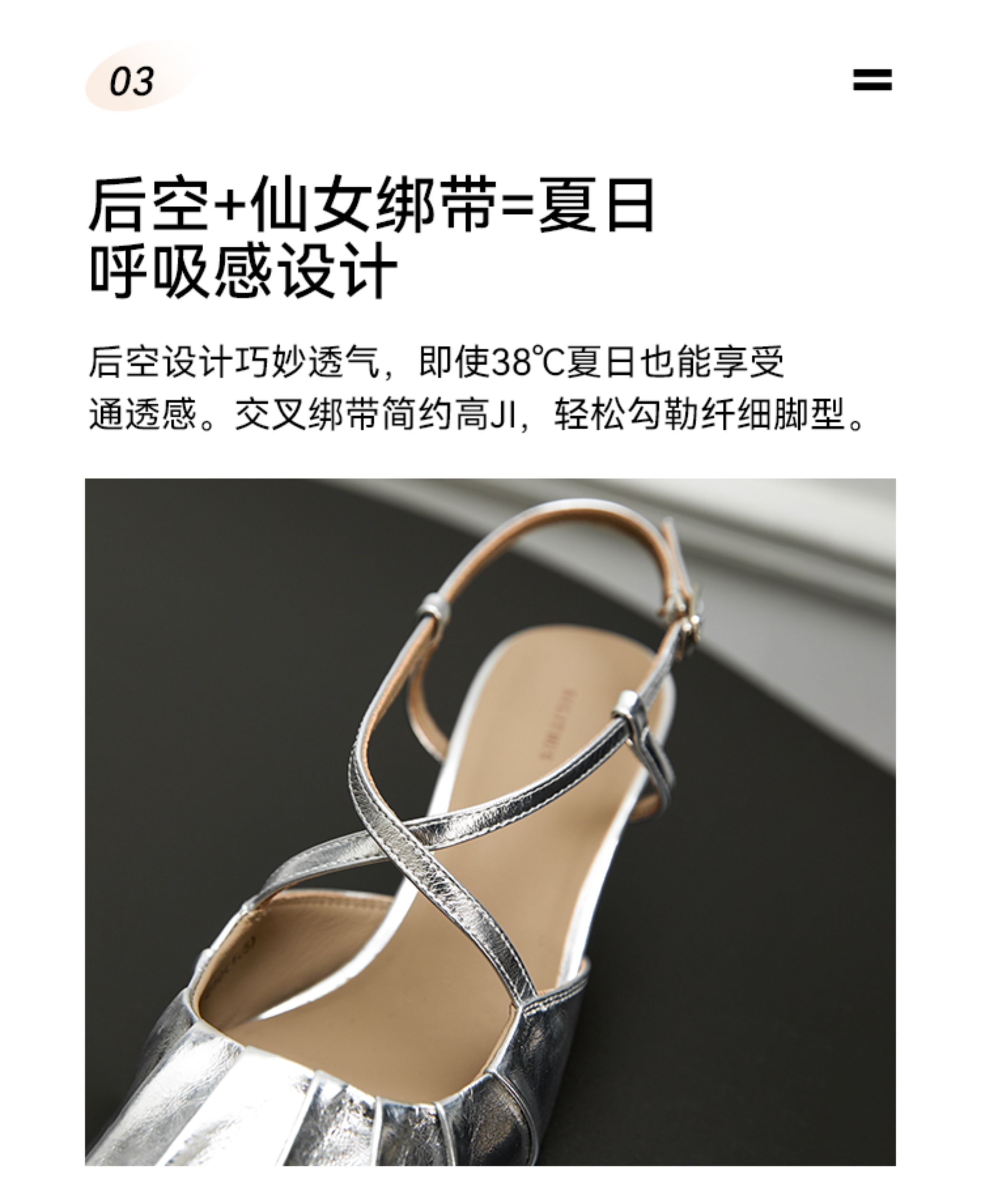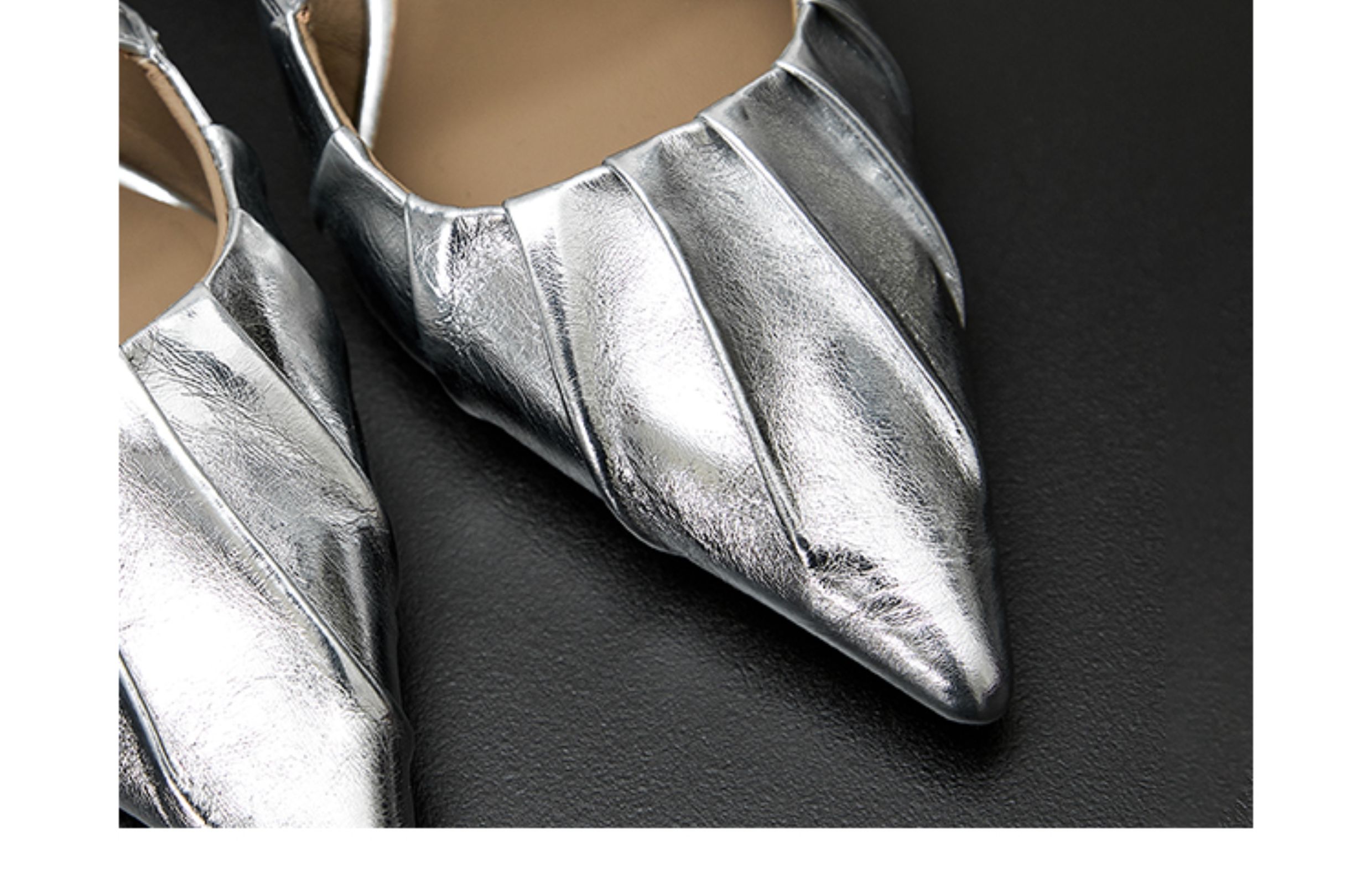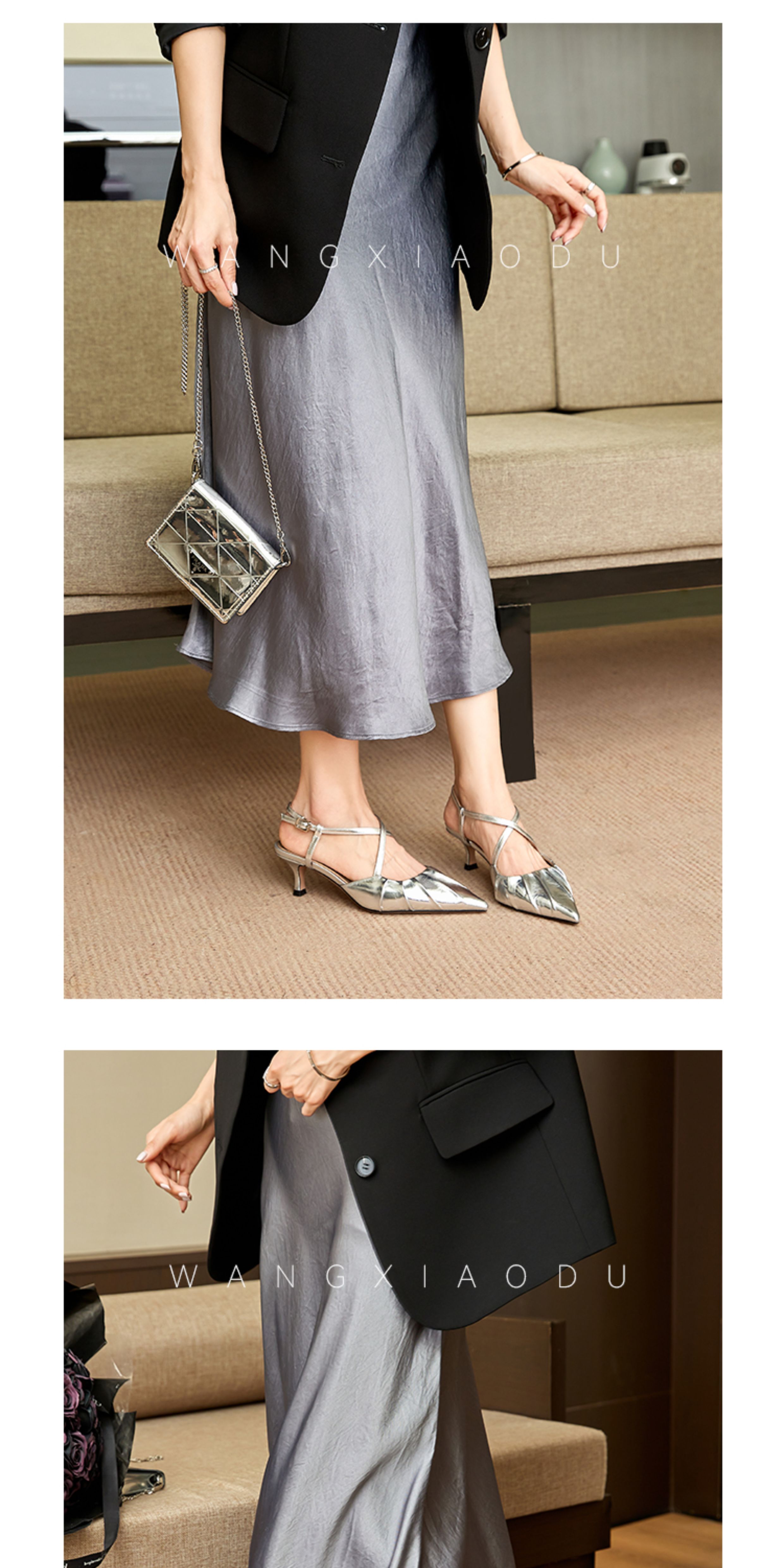 【Wang Xiaodu】Fenghua (Or: Elegance) ○ High-Quality ~ Cross-Strap Pointed Toe Backless Sandals for Women, Summer Genuine Leather Pleated High Heels