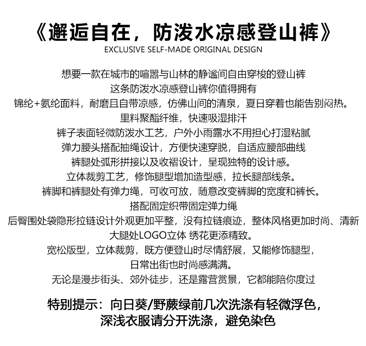 Beijing Forest Outdoor [Shazhou] Original Mountain Series Water-Repellent Paratrooper Pants, Wear-Resistant Straight-Leg Cool Hiking Pants for Women