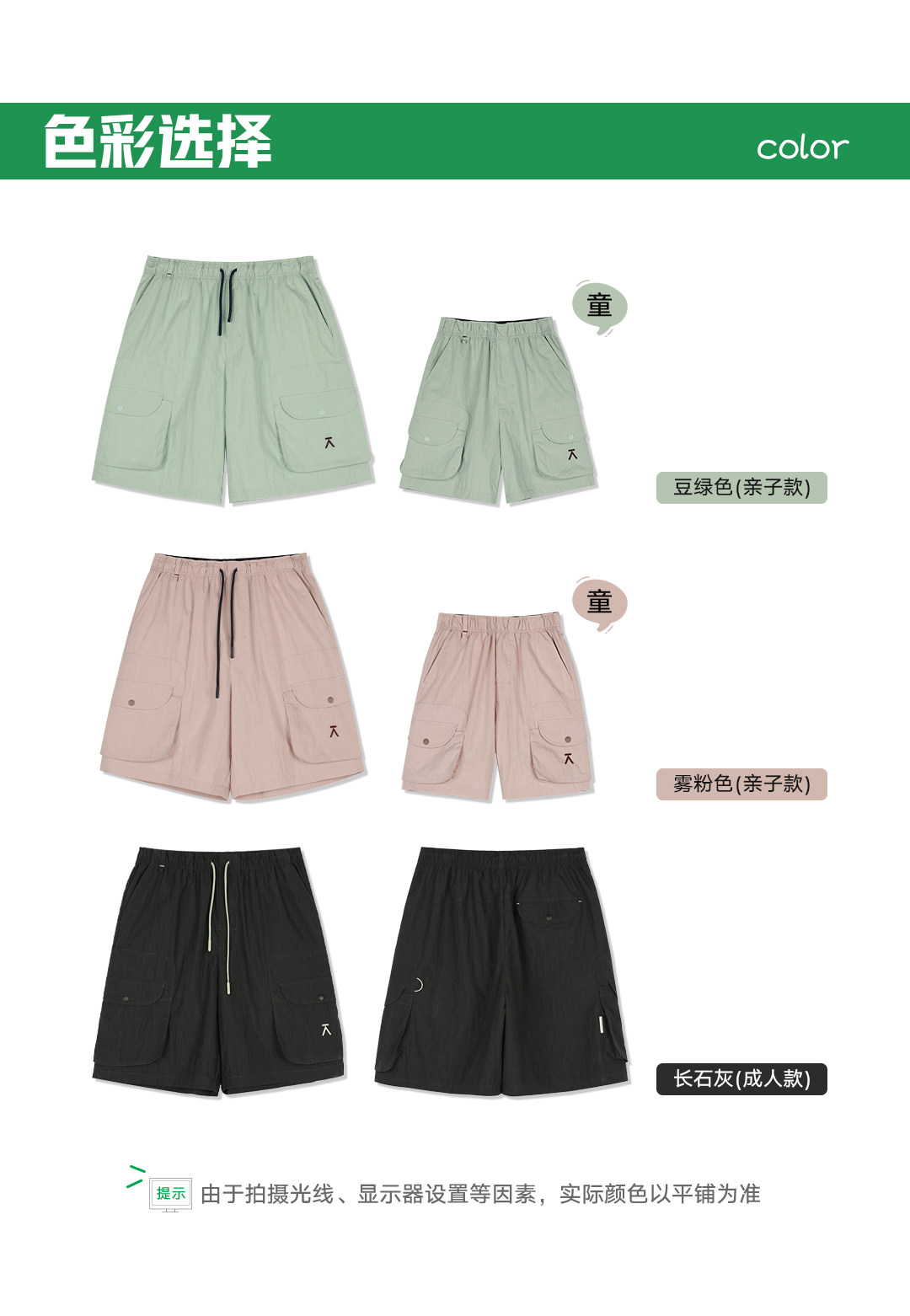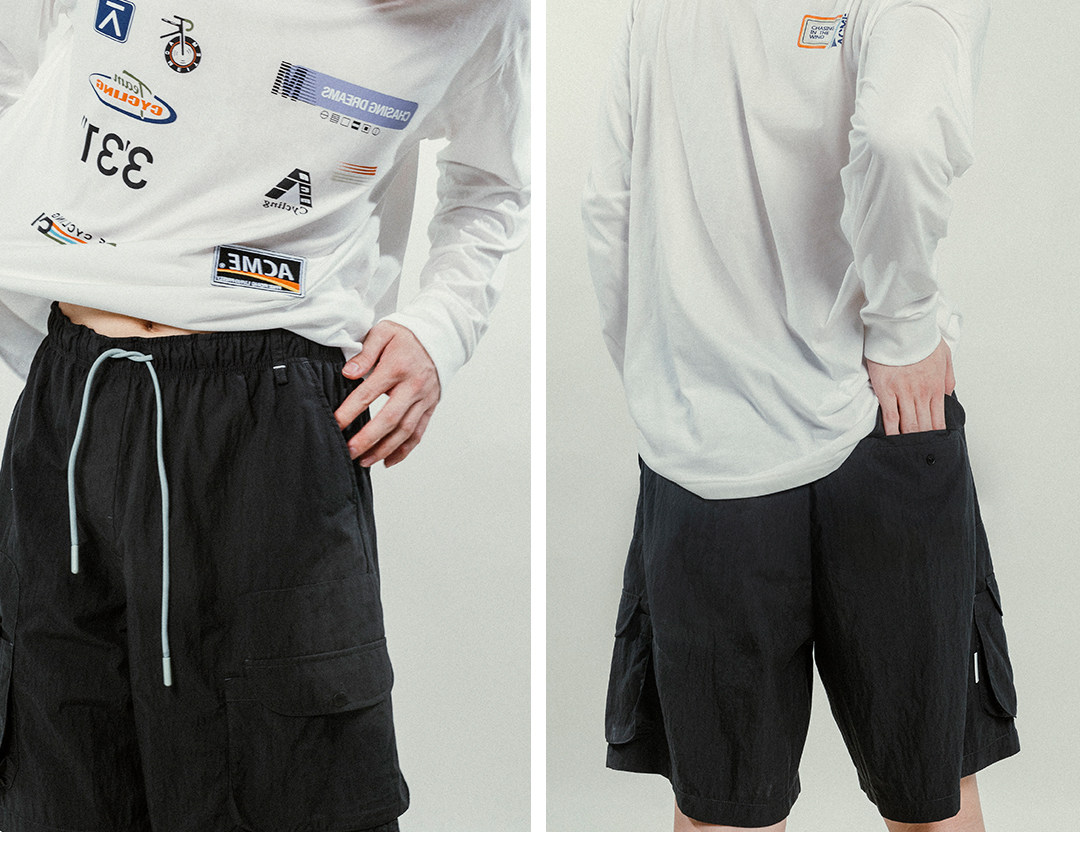 Acmeitem Outdoor Family Large-Capacity Pocket Shorts Loose Embroidered Casual Pants for Men and Women