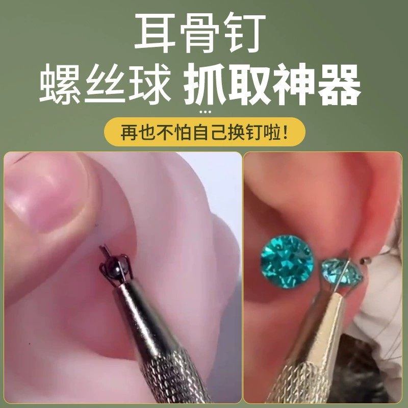 Titanium Research Institute|Grabber Round Ball Diamond Earrings Ear Plugs Lip Studs Tongue Studs Clip Screw Twist Buckle Nail Art Auxiliary Tool