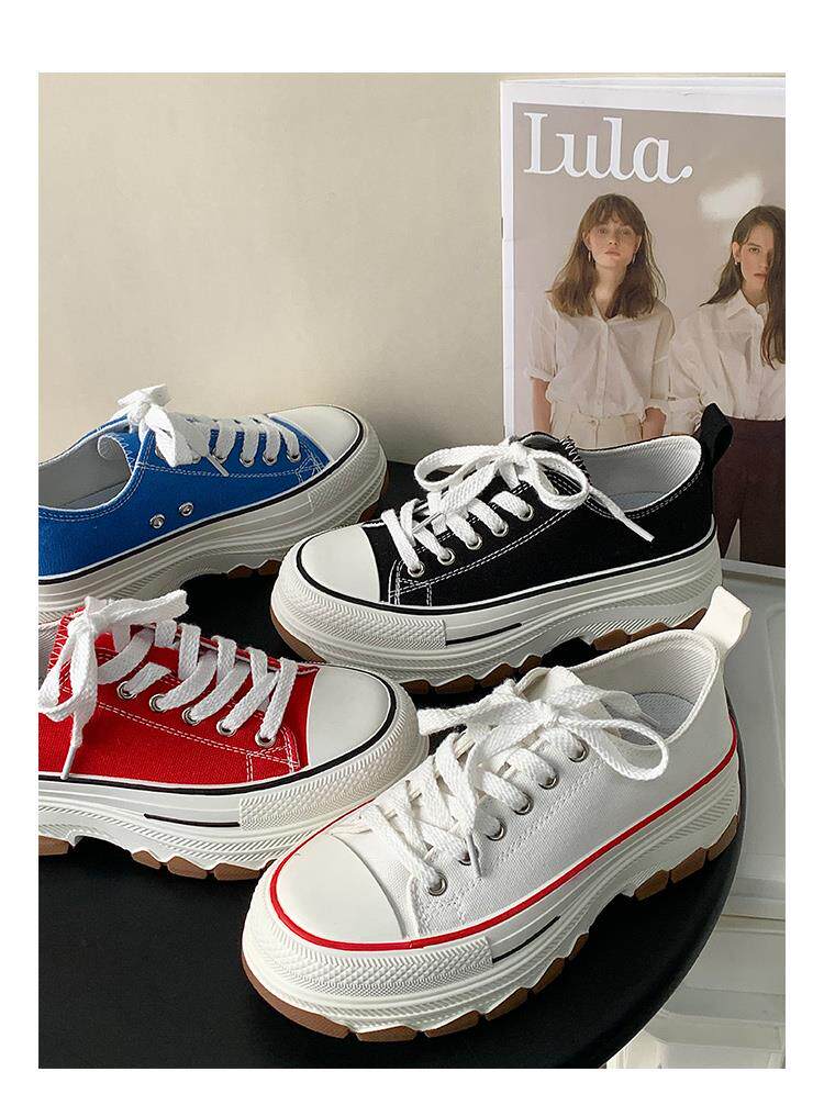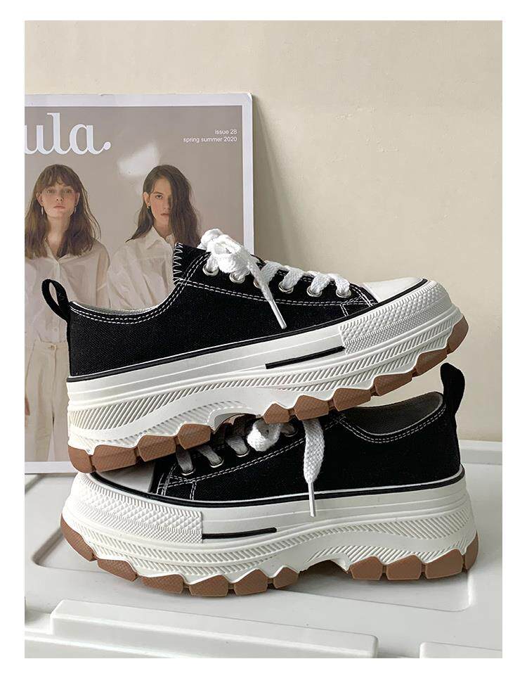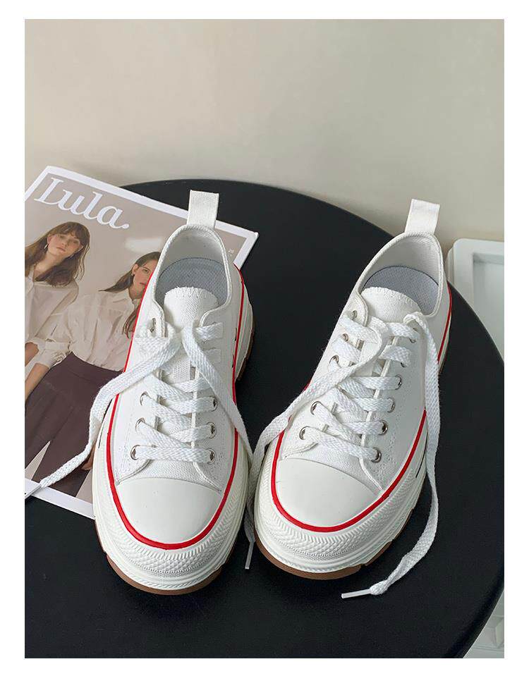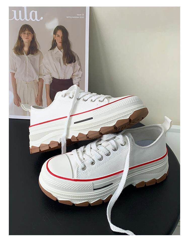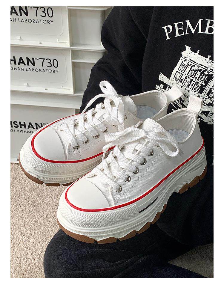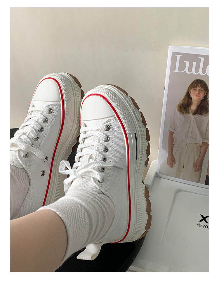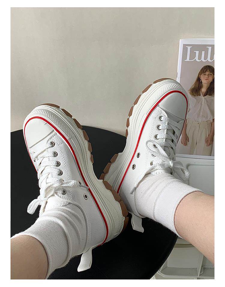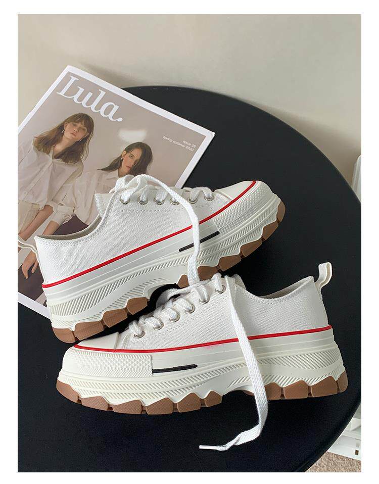 Platform Thick-Soled Canvas Shoes for Women 2026 Spring New Style Height-Increasing Casual Sports Sneakers White Shoes