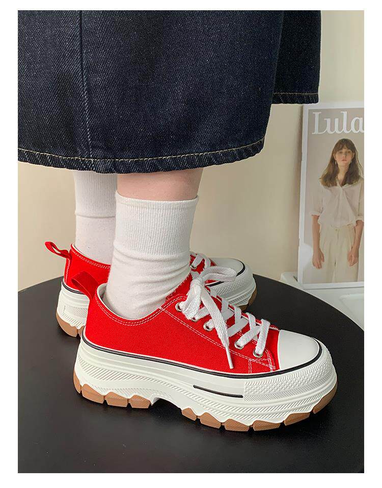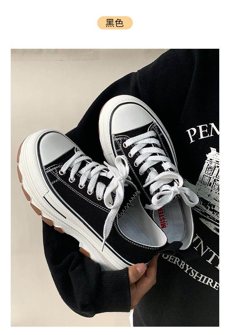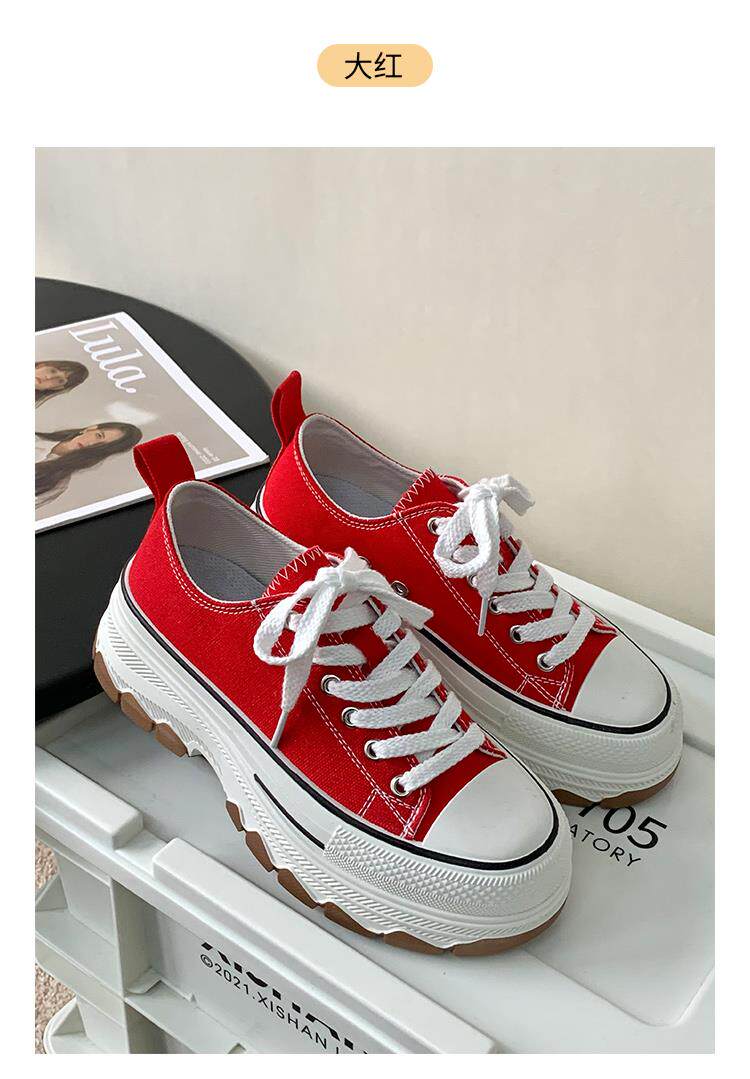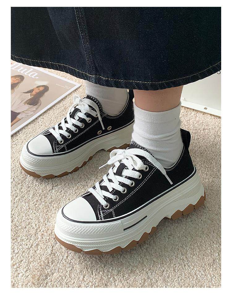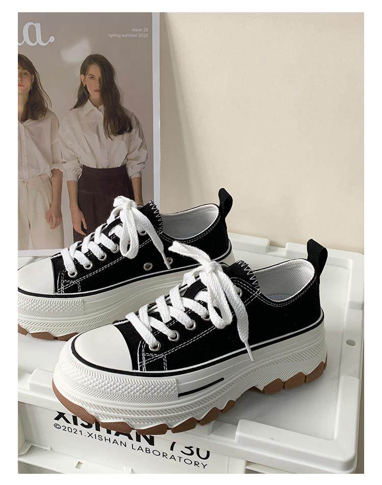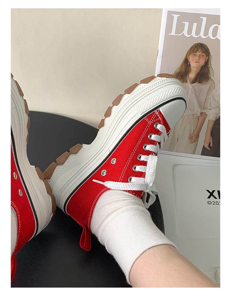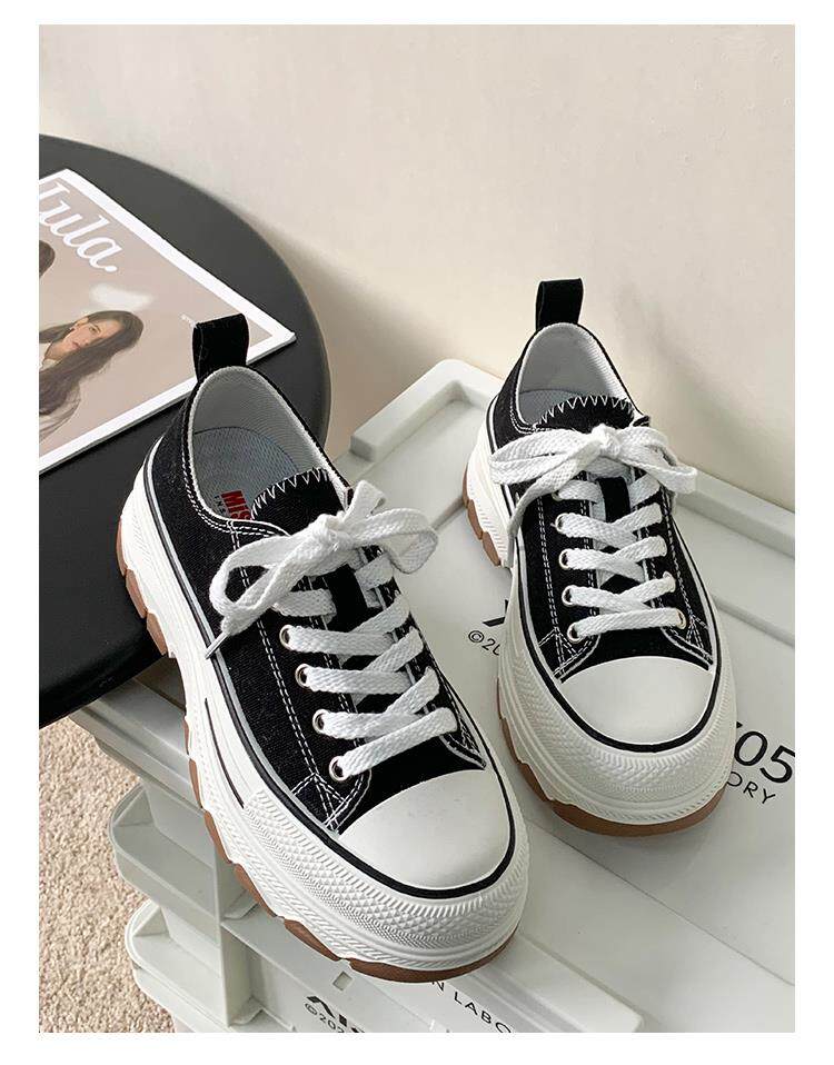 Platform Thick-Soled Canvas Shoes for Women 2026 Spring New Style Height-Increasing Casual Sports Sneakers White Shoes