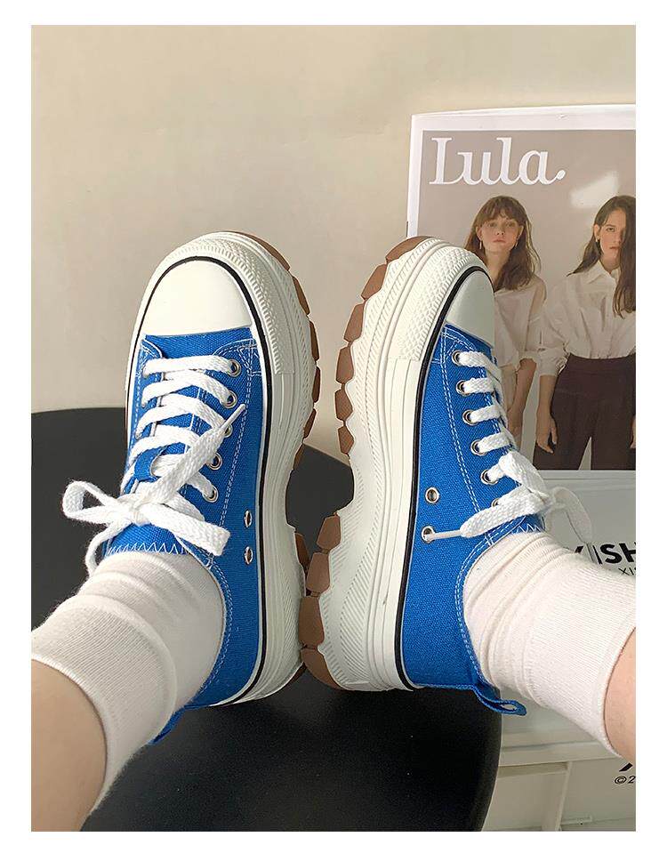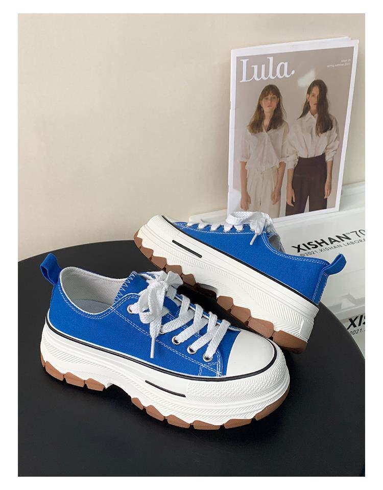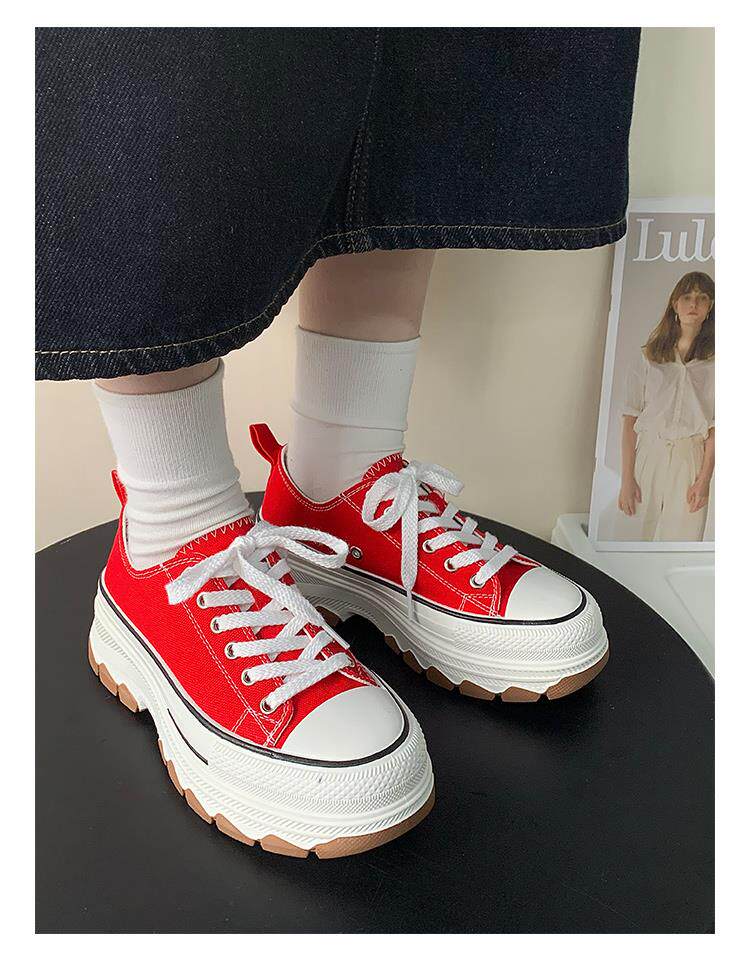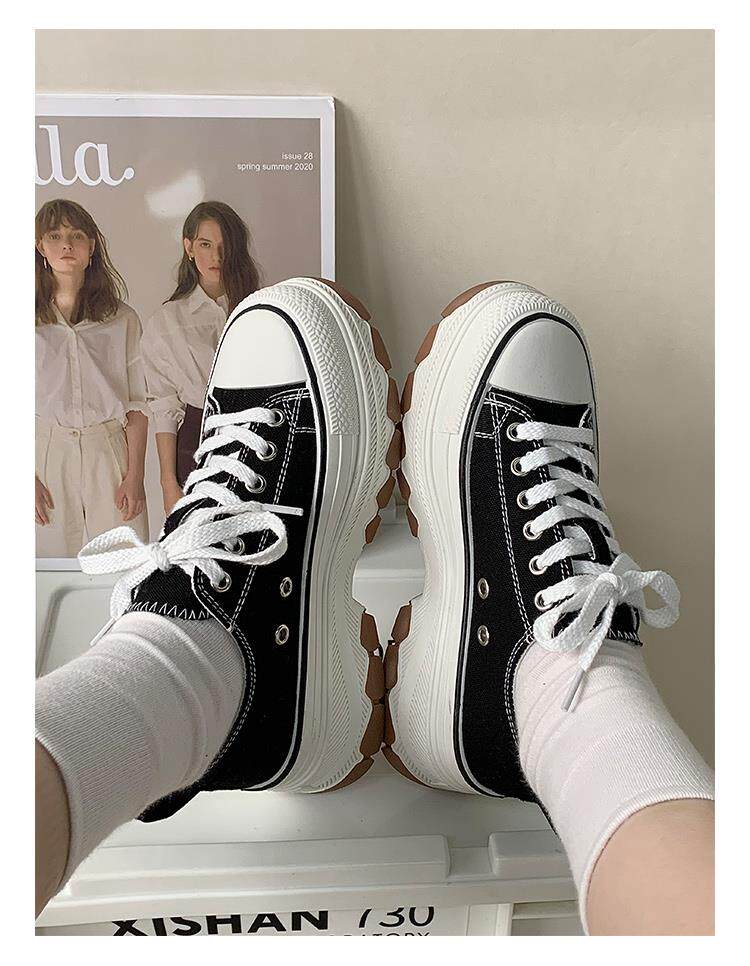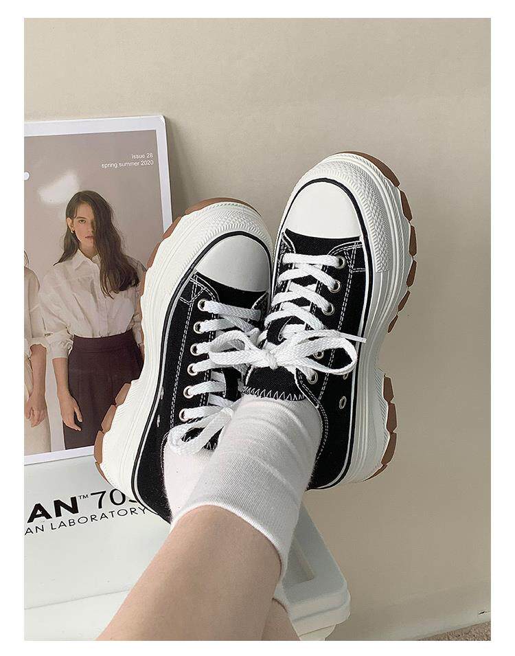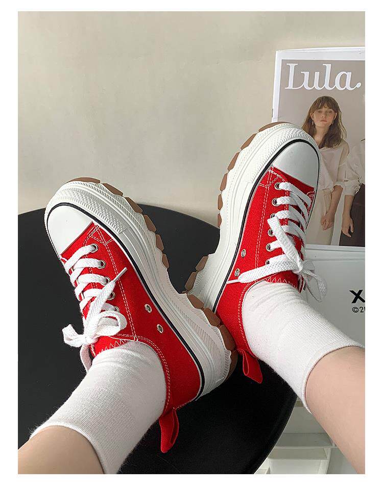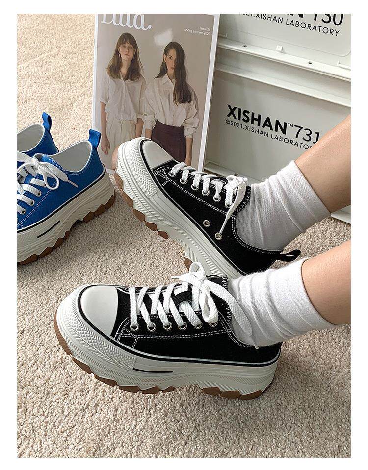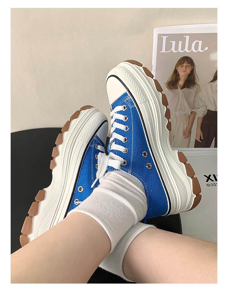 Platform Thick-Soled Canvas Shoes for Women 2026 Spring New Style Height-Increasing Casual Sports Sneakers White Shoes