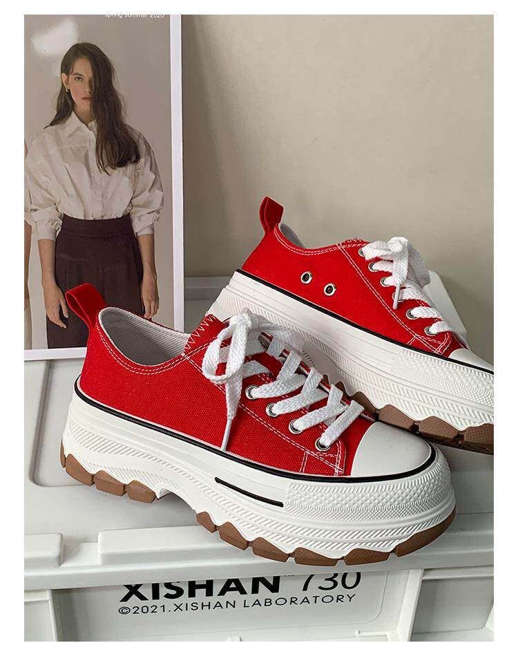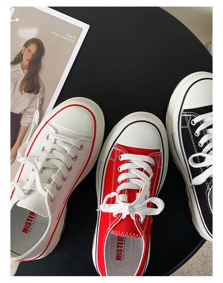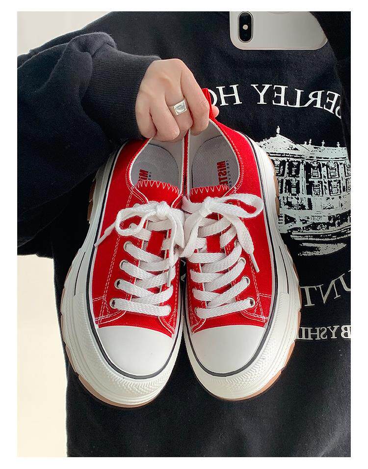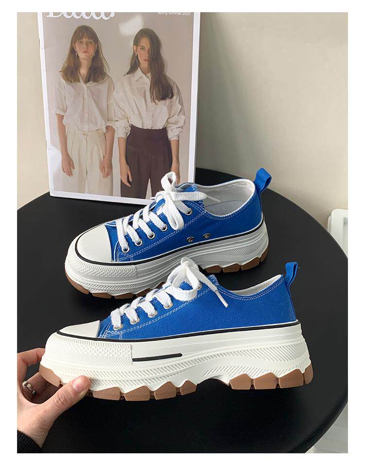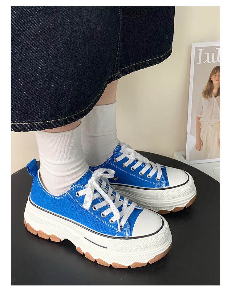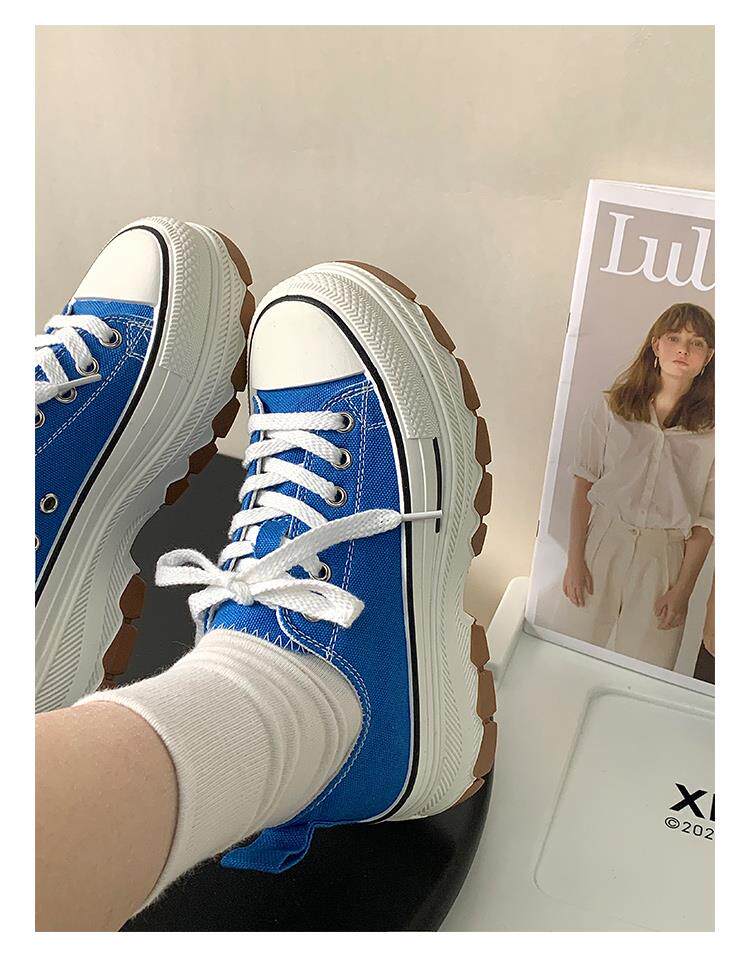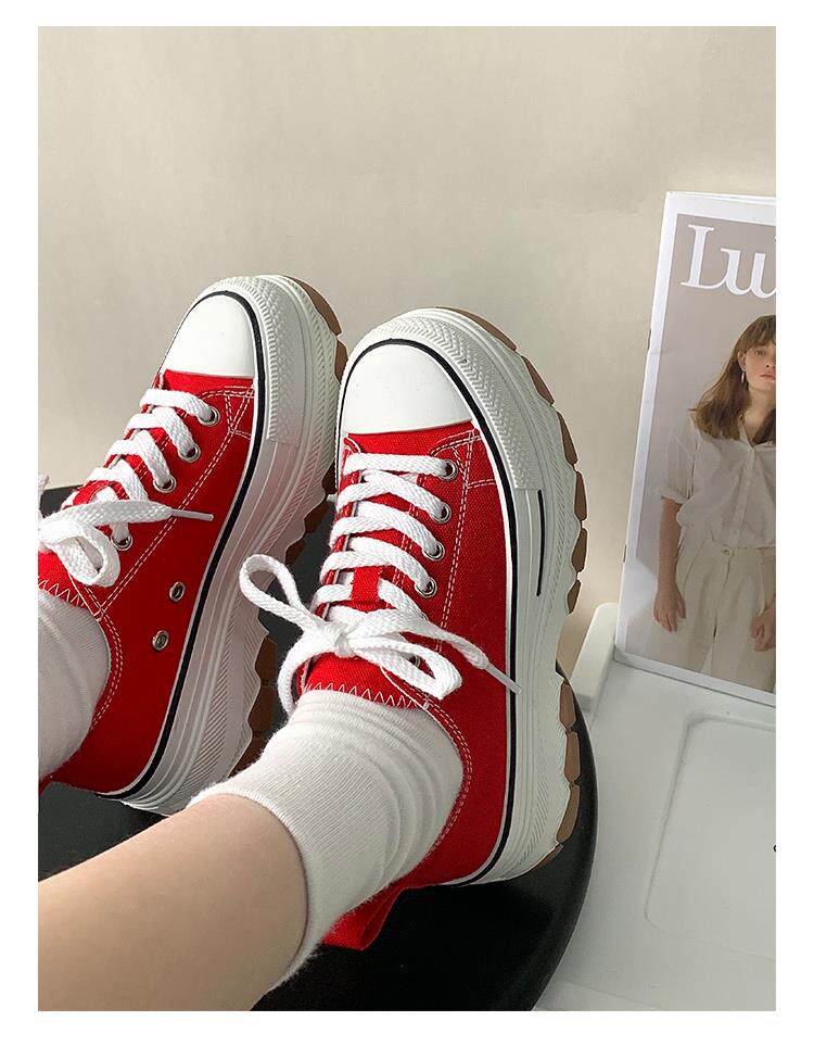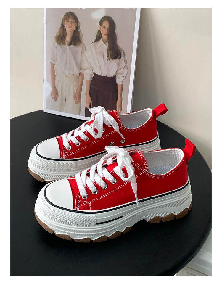 Platform Thick-Soled Canvas Shoes for Women 2026 Spring New Style Height-Increasing Casual Sports Sneakers White Shoes