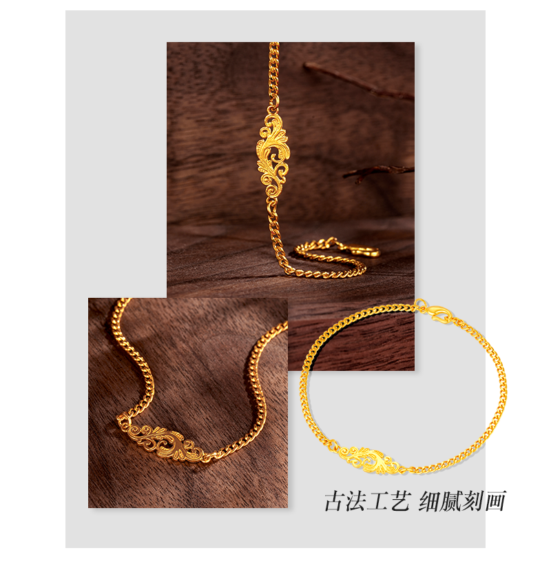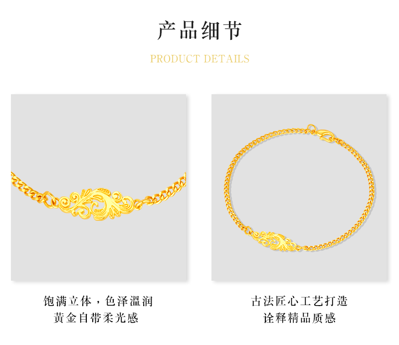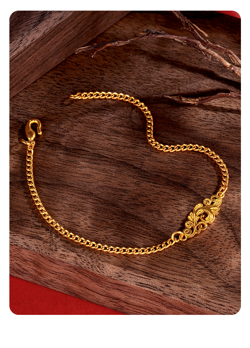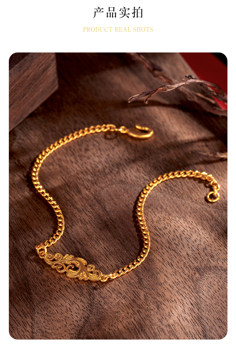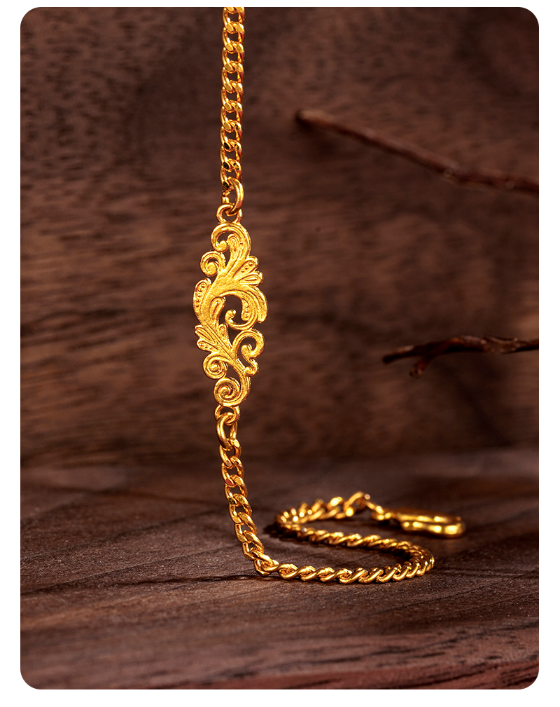 Heirloom Jewelry Phoenix Feather Bracelet Gold Cuban Chain Handmade Pure Gold Side Chain Layered Plain Gold Bracelet for Women