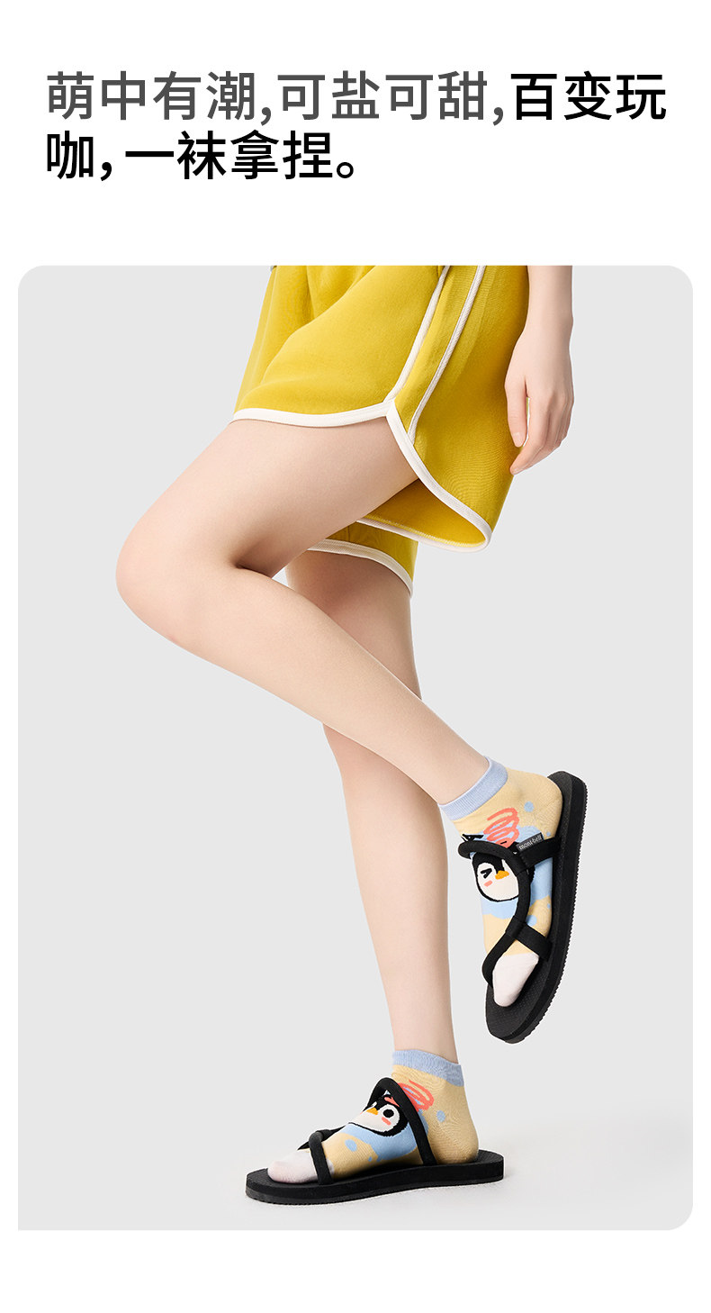 Paimi Women's Short Socks for Spring and Summer, Penguin Design, Shallow Cut, Thin Style, Summer ins Trendy Non-Slip, No-Show Cute Invisible Boat Socks, Cotton
