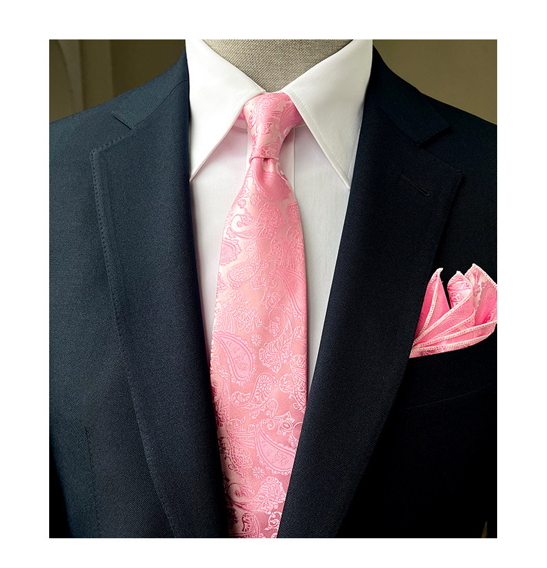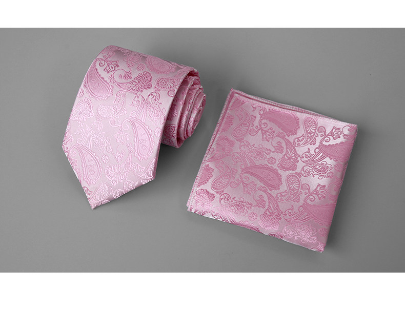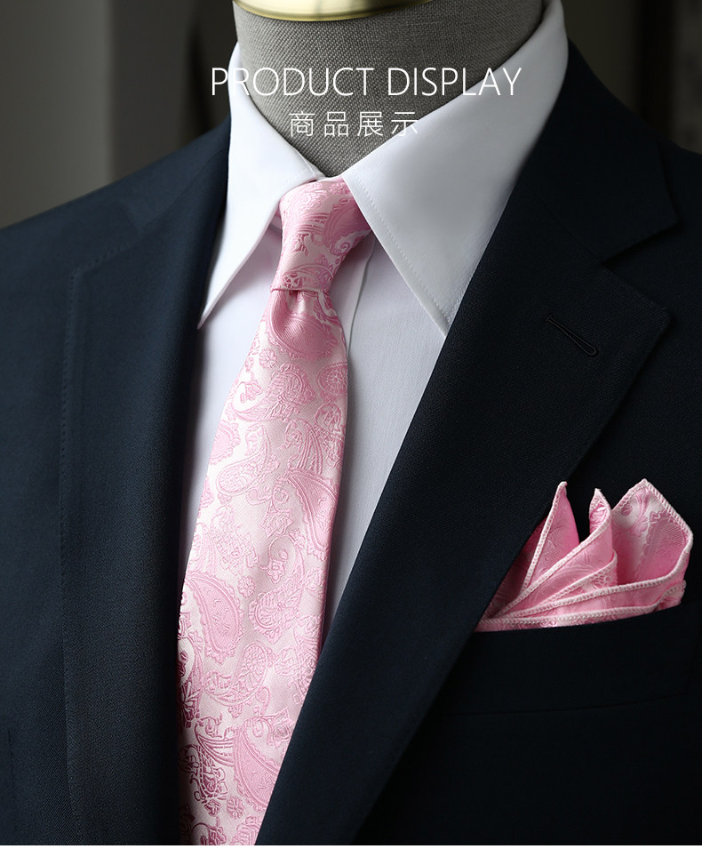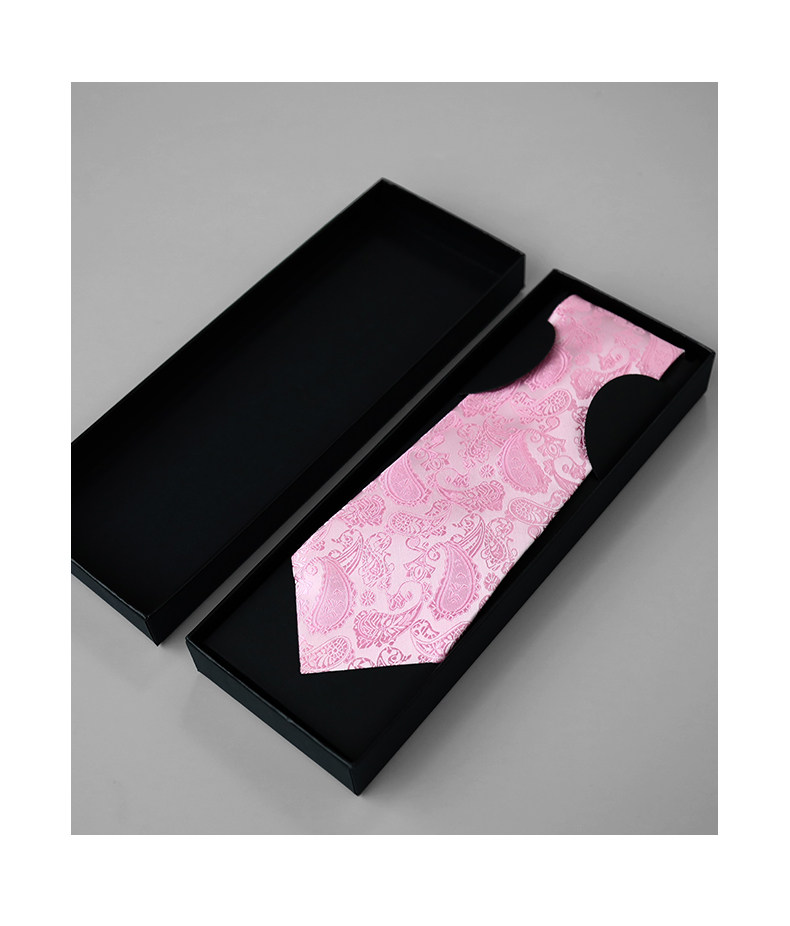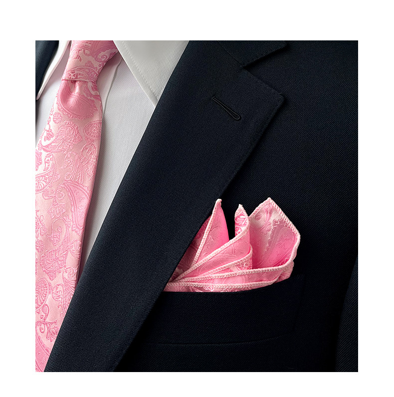 Groom's Wedding Men's Pink Hand-Tied 9cm Tie and Pocket Square High-End Gift Box Set