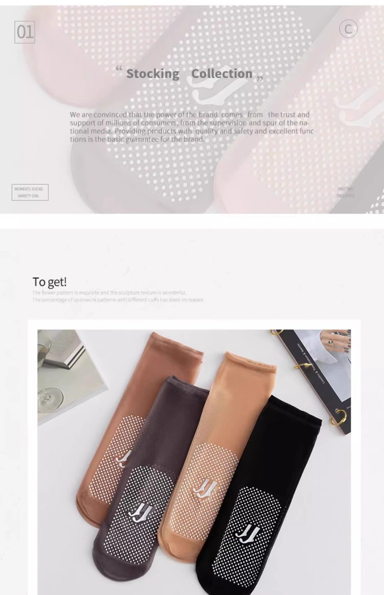 New Bottom Massage Stockings, Comfortable, Seamless, Thin, Breathable, Non-Slip, Anti-Snagging, Mid-Calf Socks, Spring and Summer Crystal