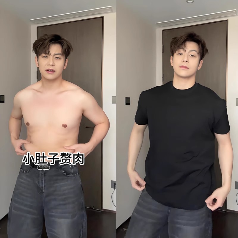 American-Style Heavyweight Regular Shoulder Short-Sleeve T-Shirt for Men, Summer Small Neckline, Stylish and Sporty Slim-Fit, Suitable for Layering with a Half-Sleeve