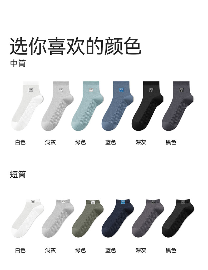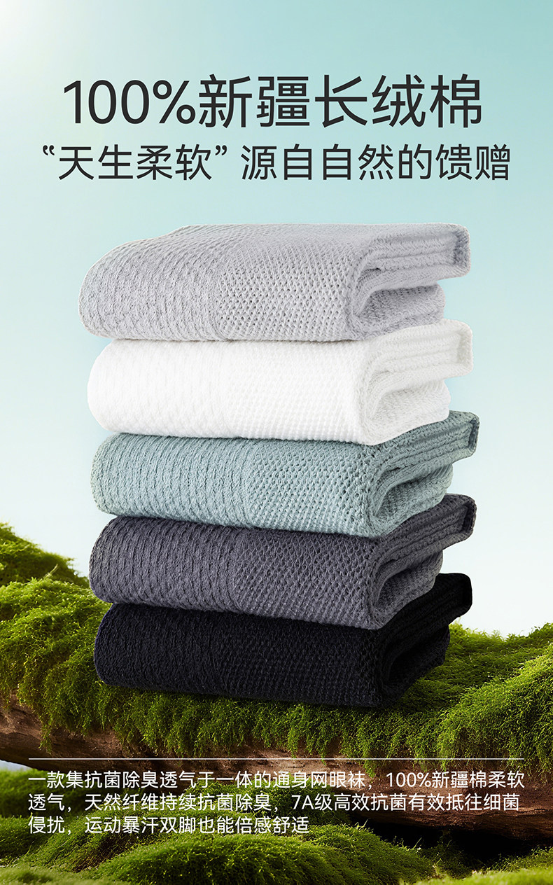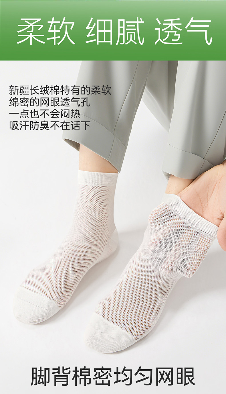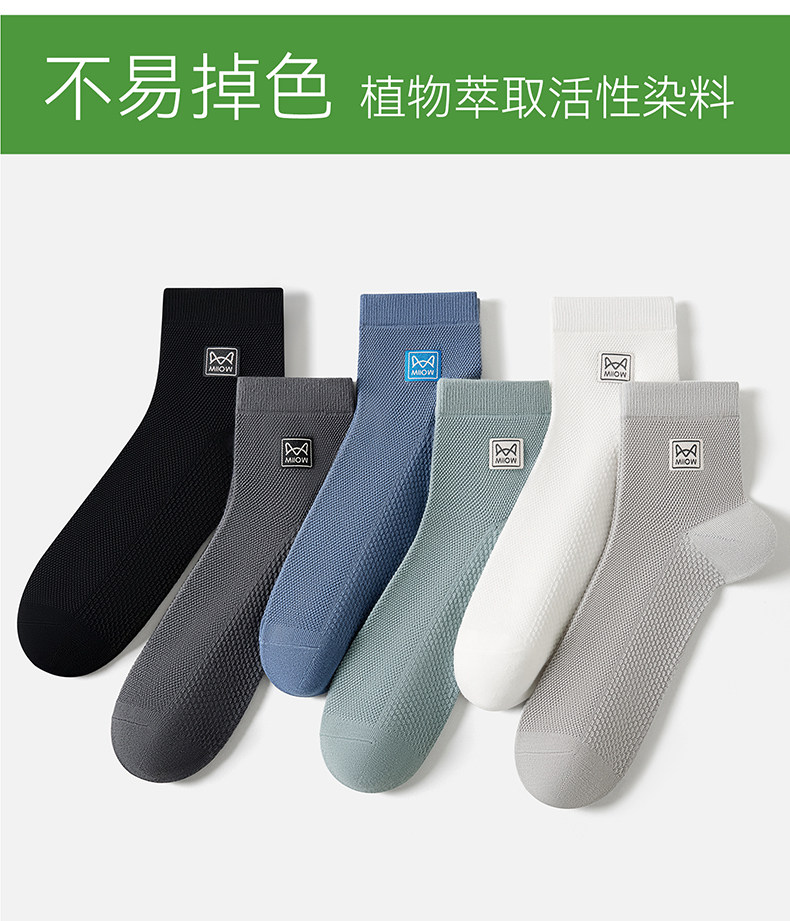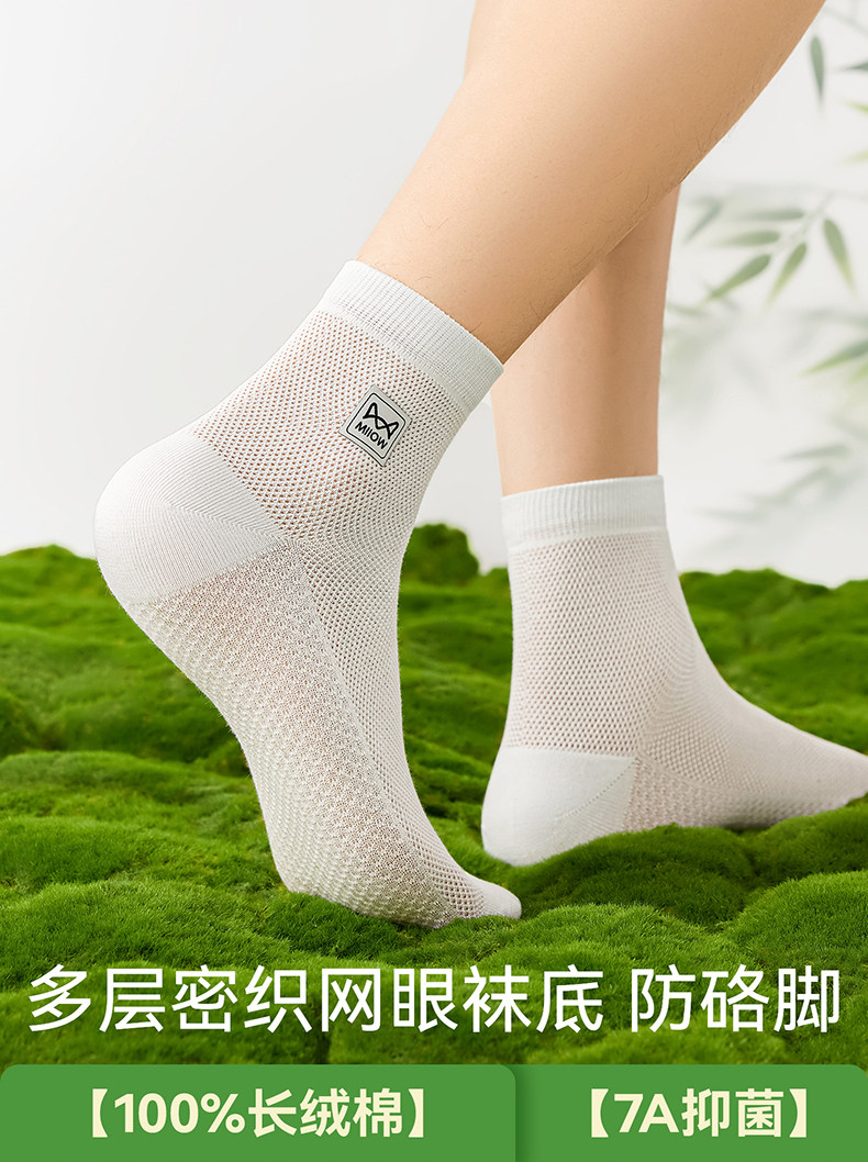 【7A Antibacterial】Catman Socks Men's Summer 100% Pure Cotton Breathable Mesh Anti-Odor Sports Men's Mid-Calf Socks