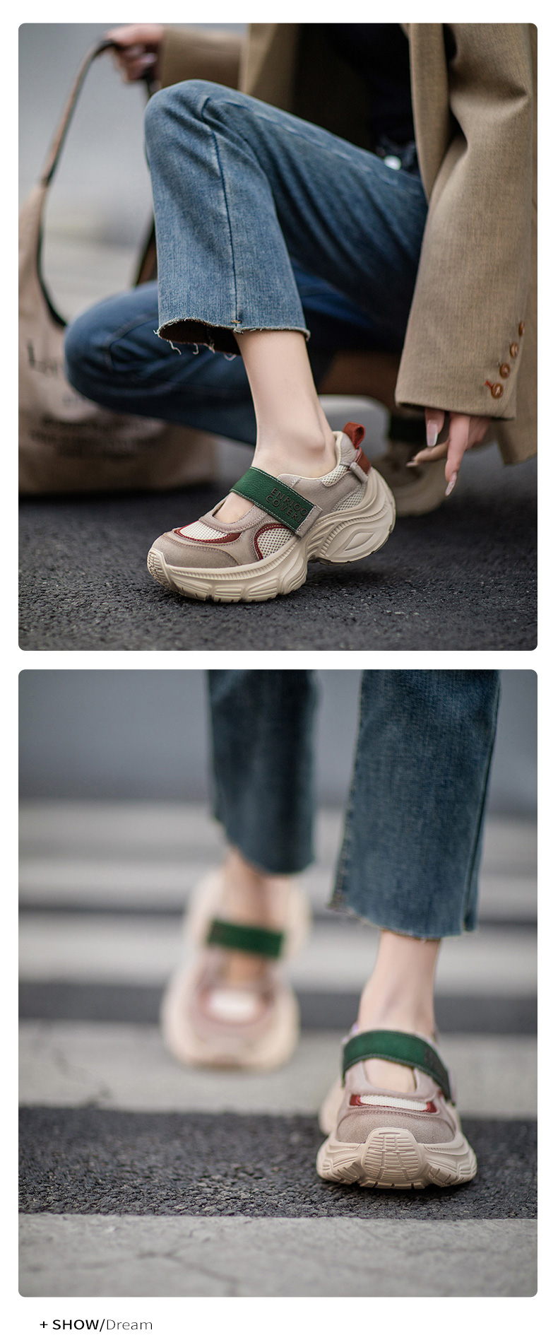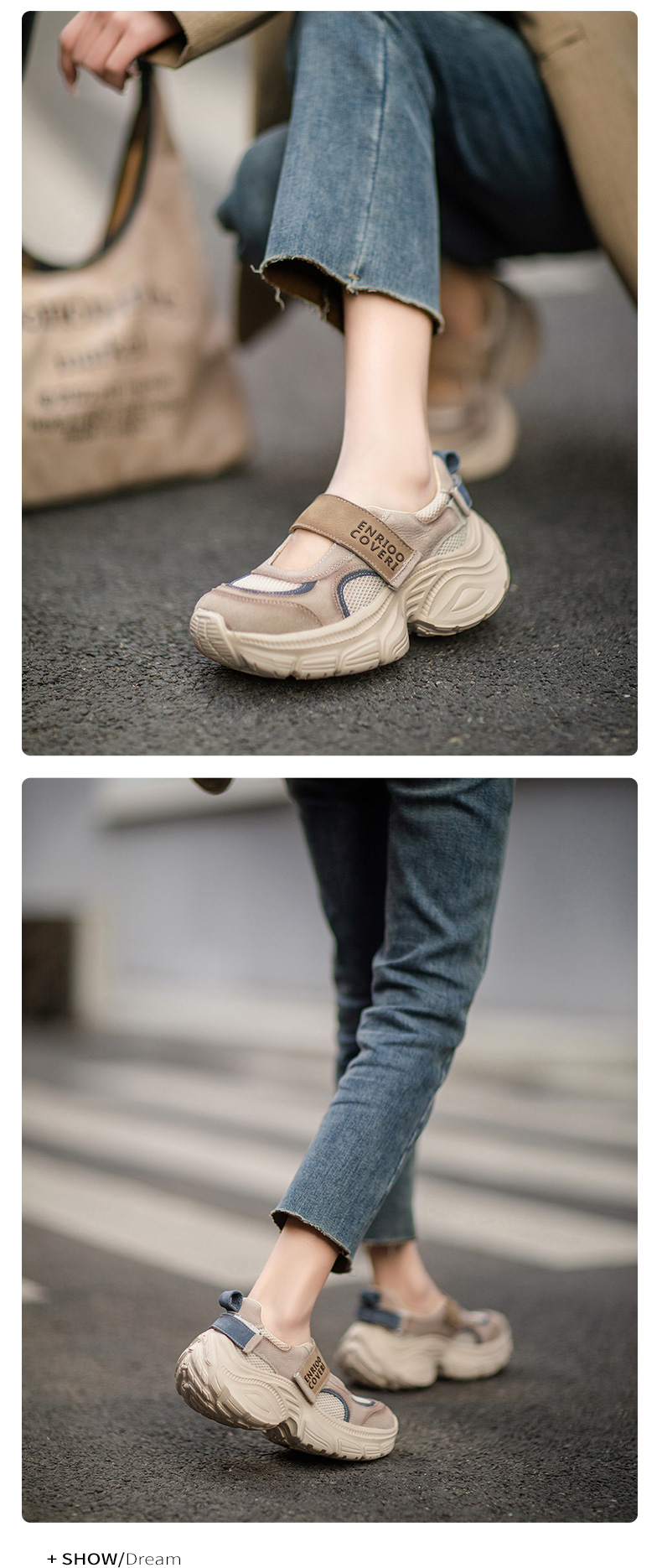 Jiezhou Summer Mesh Breathable Casual Women's Sandals Thick-Soled Genuine Leather Dad Shoes Retro Hollow Mary Jane Women's Shoes