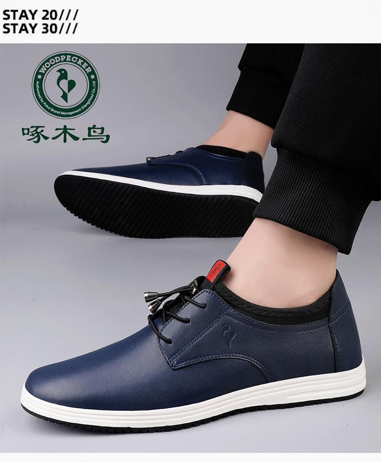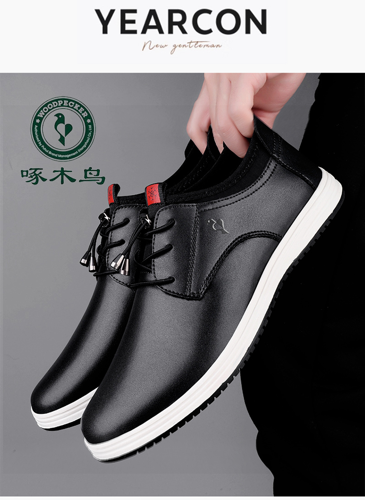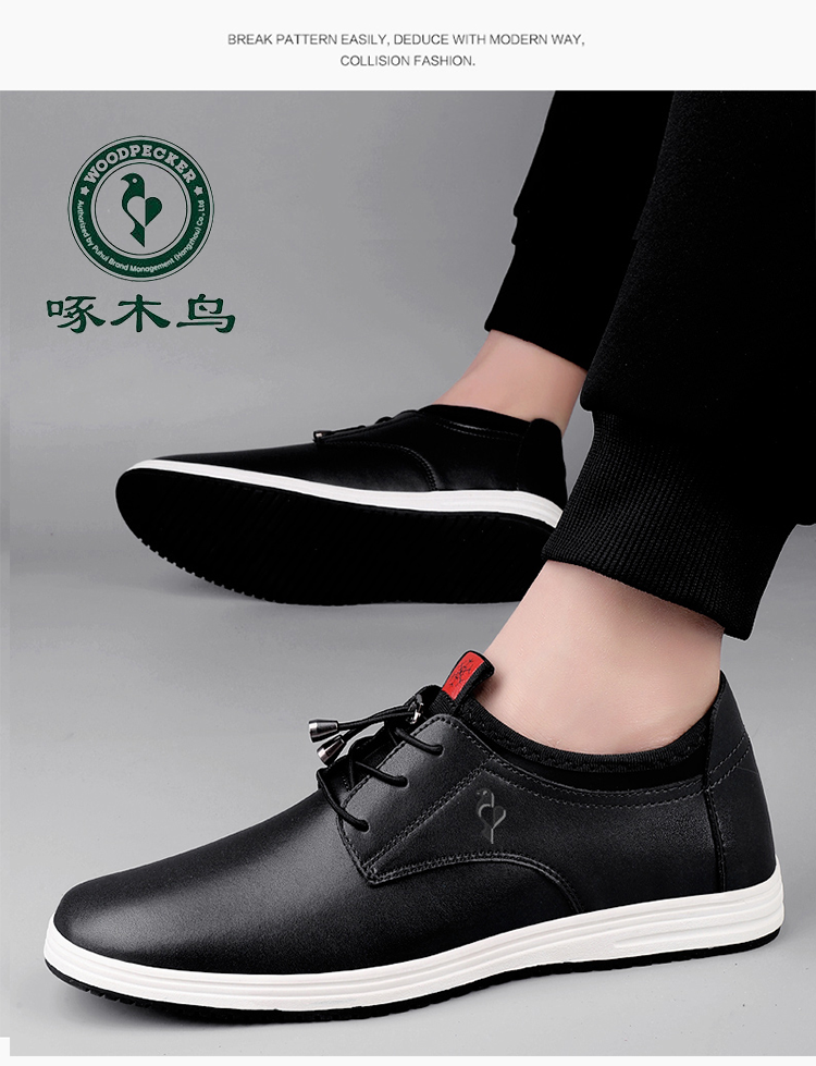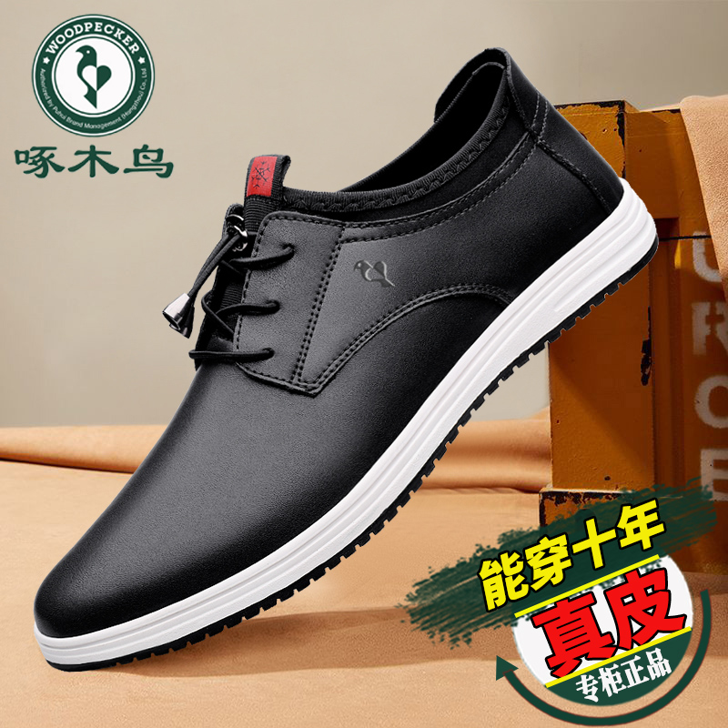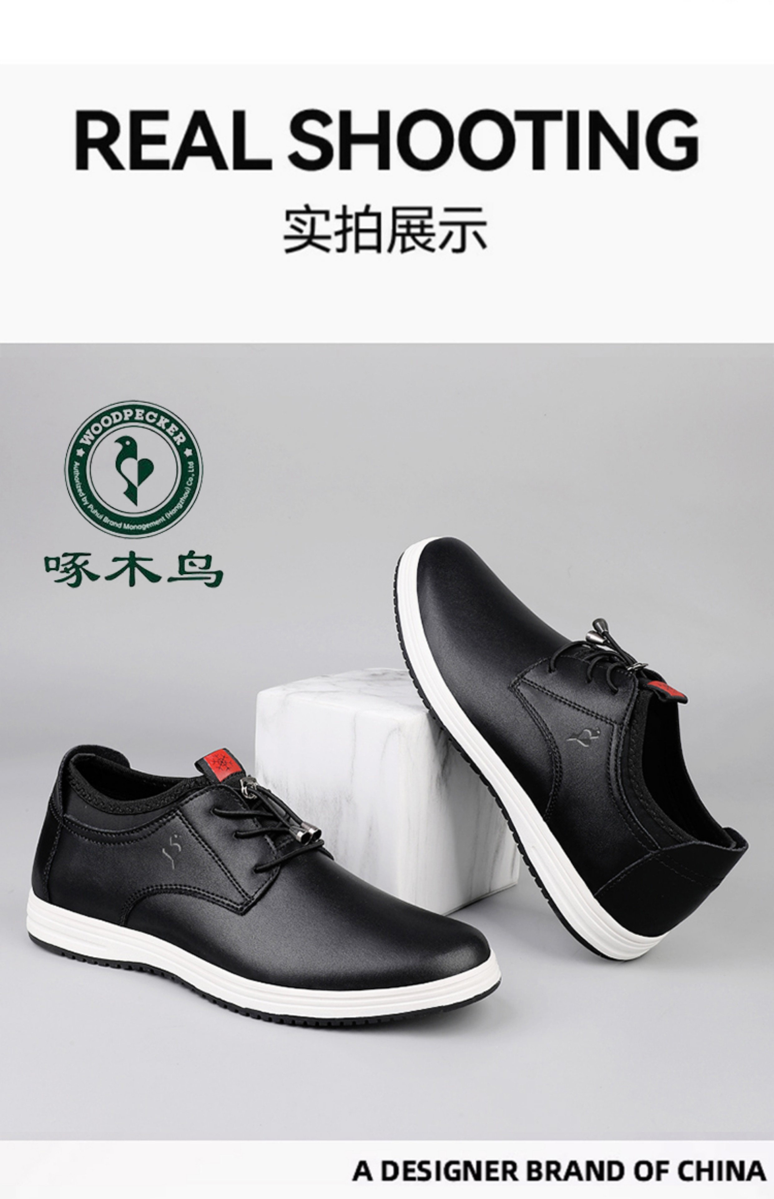 Woodpecker Genuine Men's Shoes 2025 New Youth Trendy Shoes Men's Genuine Leather Breathable Casual Leather Shoes Men's Lazy Shoes